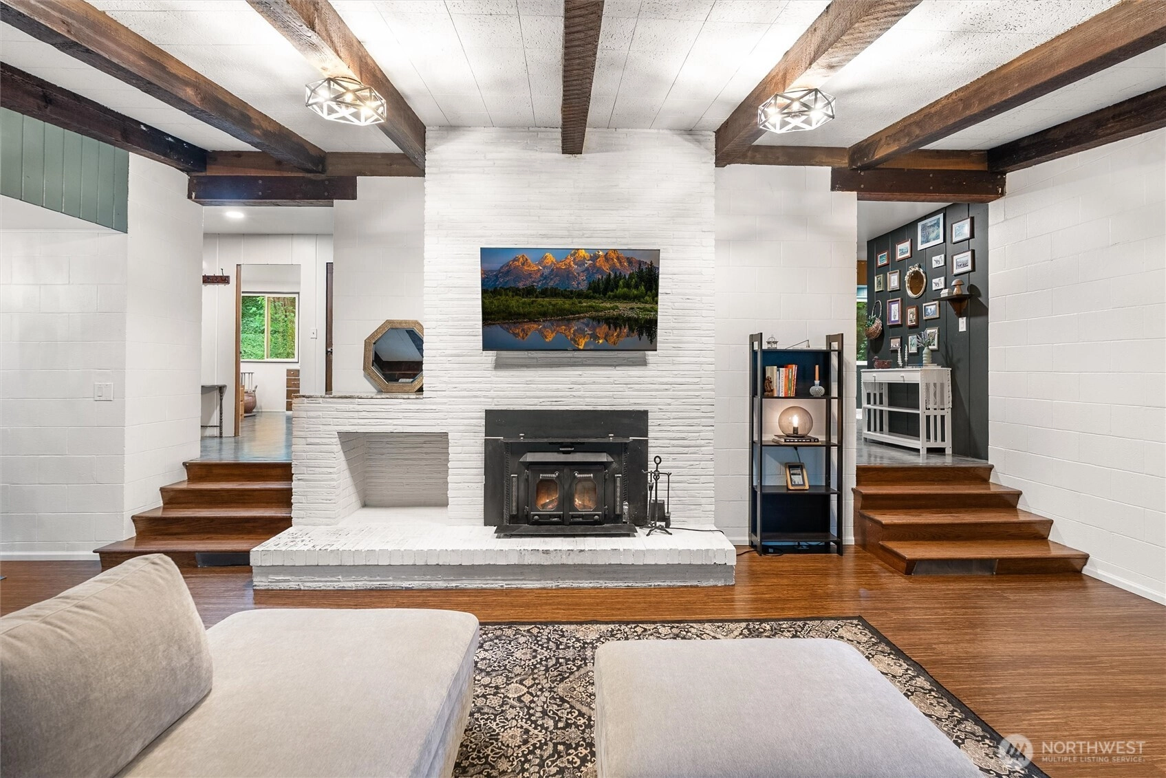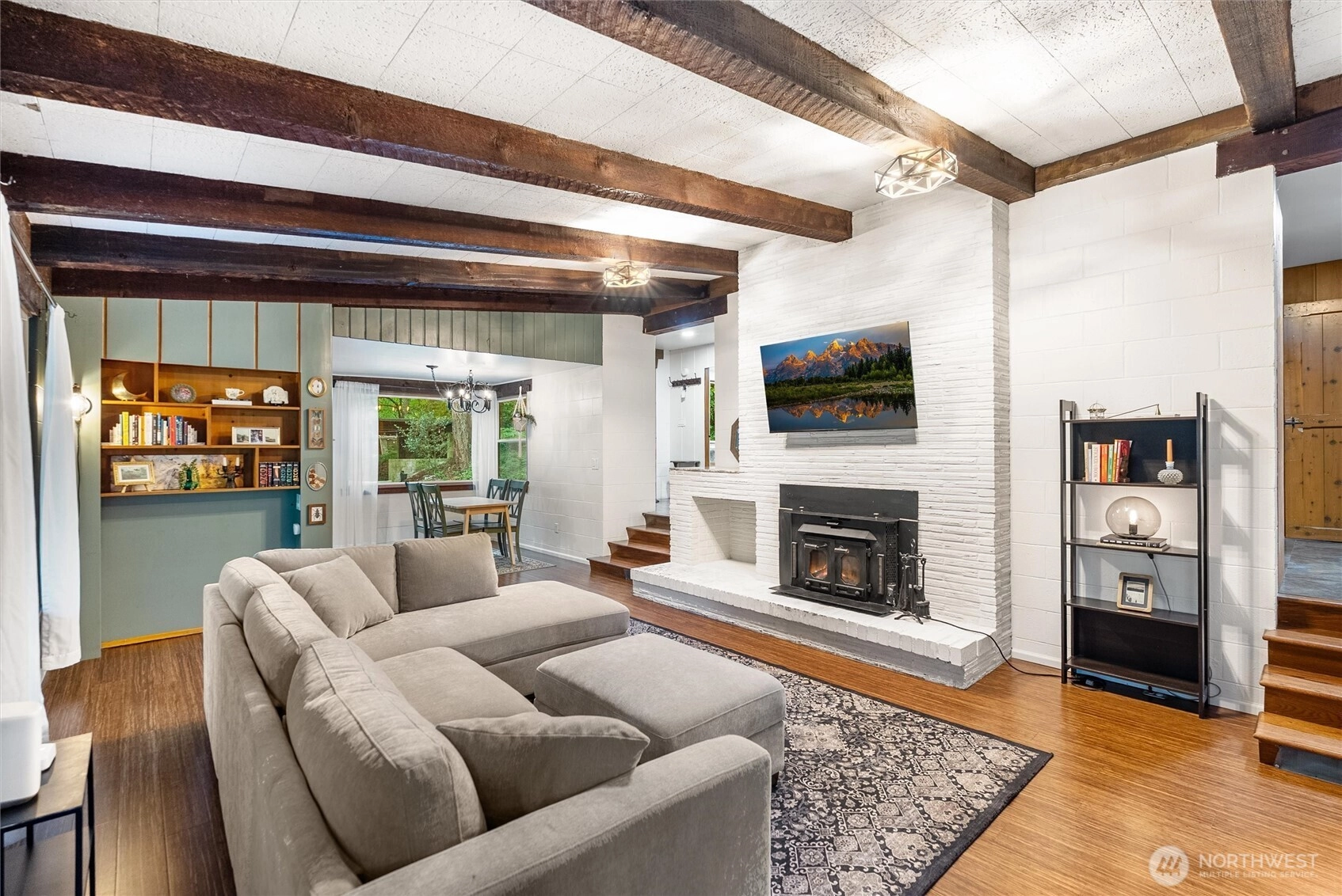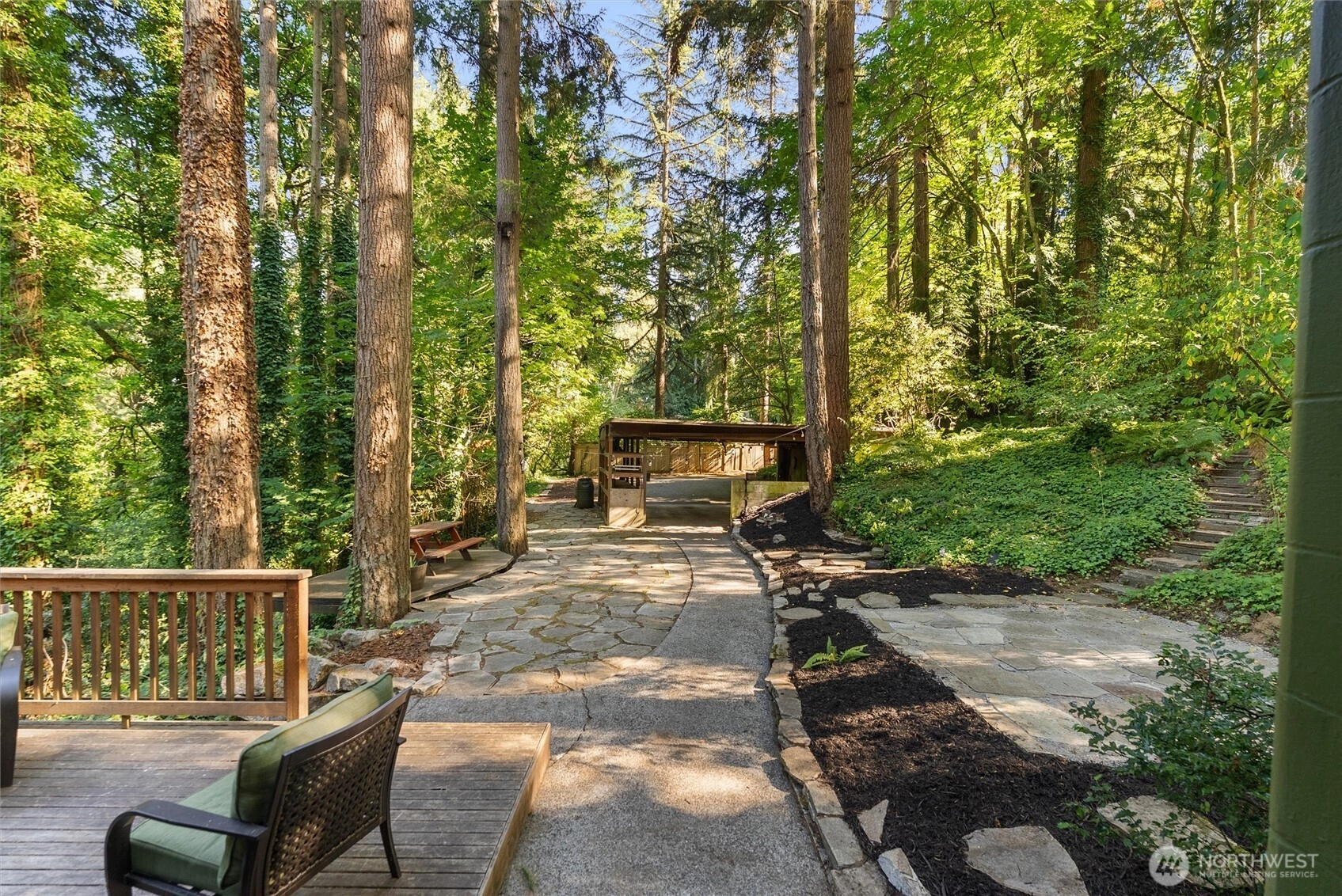 Picture this: Your home nestled on over 1.5 acres of verdant forest, with moss-dappled paths winding to a gentle creek—the sunlight filtering through towering cedars and firs, the soft rustle of leaves as wildlife visits, and the peaceful sound of flowing water. Inside, vaulted ceilings and wooden beams echo the exterior's rustic grace, with decks that blur the boundary between sheltered indoors and wild outside. This isn't just a home—it's a sanctuary rooted deeply in nature, community, and timeless Seattle-area charm.