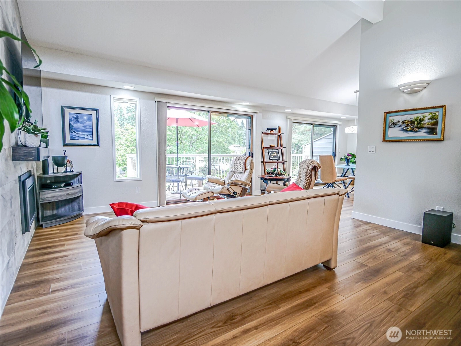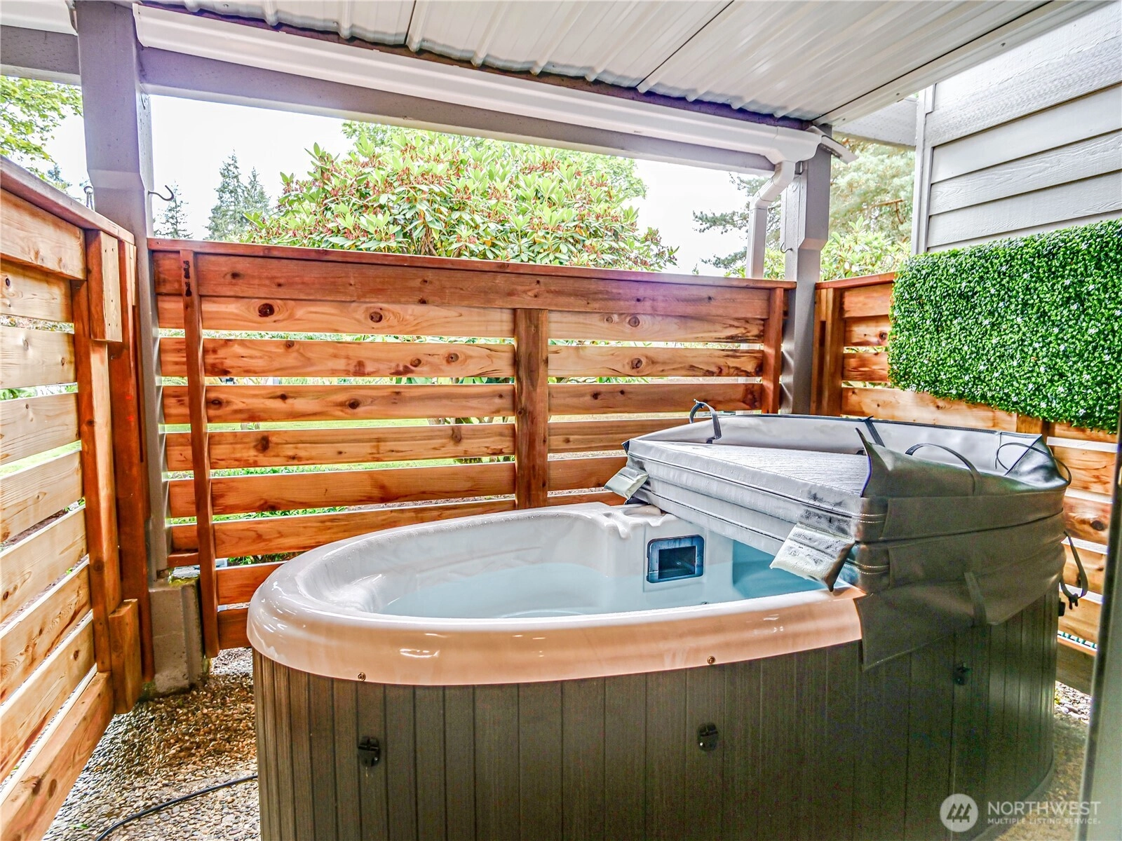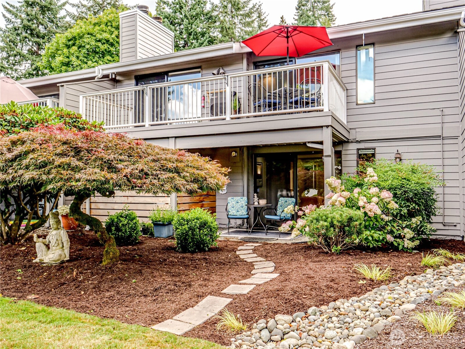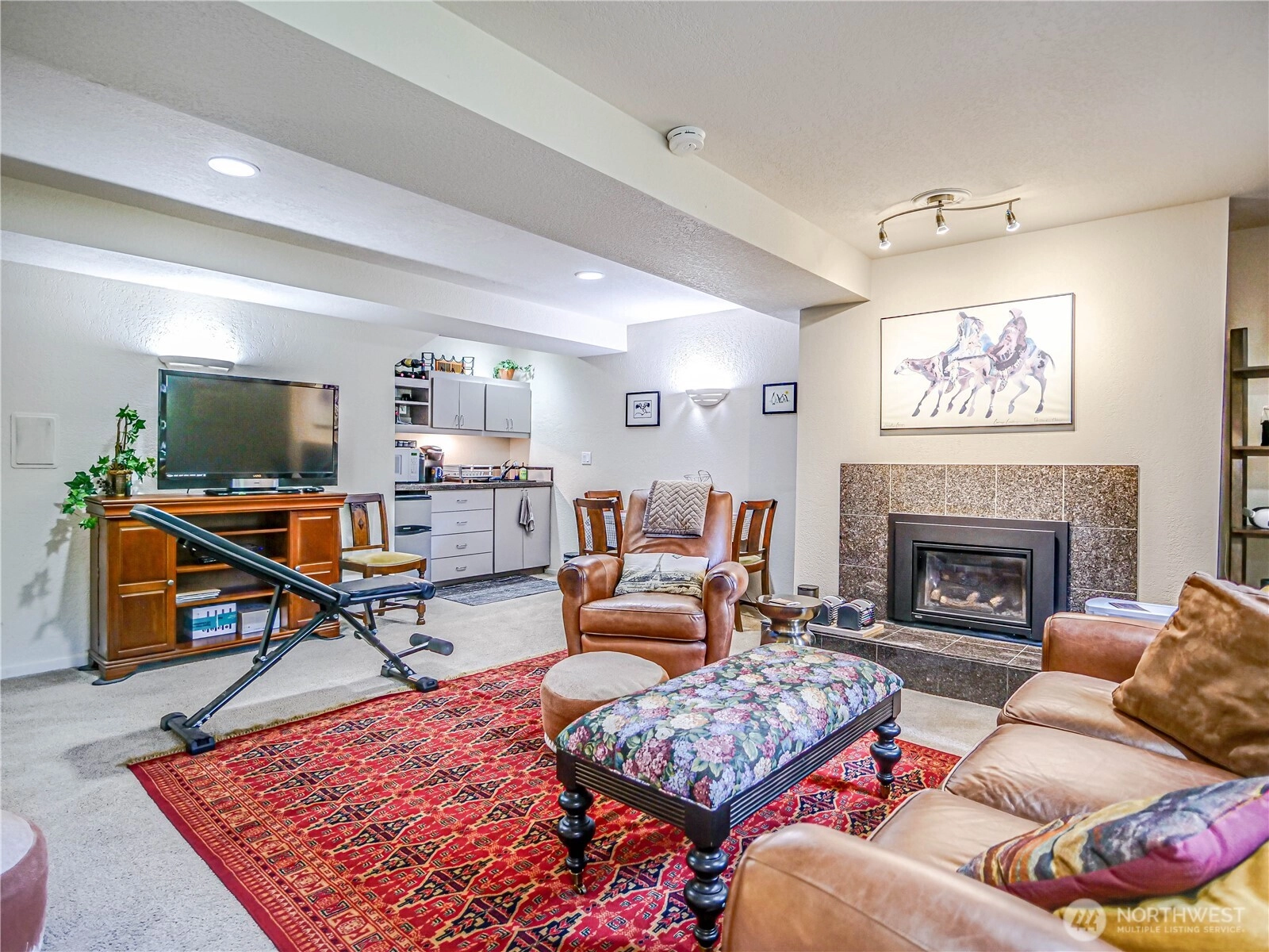 Welcome to Fairway Village One! Luxury living in a mindfully updated home. Main floor features Primary Bedroom with walk in closet, lovely shower & dual sinks, heated towel rack. Open & bright living room w/vaulted ceilings & full wall gas FP. Cheerful kitchen w/high end appliances , open to Atrium, dining room w/patio doors to large deck, great for entertaining. Lower level offers a large family room w/kitchenette, 2nd gas FP, & the 3rd BR private guest suite w/two-person hot tub on patio. Oversized 2-car garage with workshop, extra Refrigerator & plenty of storage. This flexible floor plan ideal for entertaining or multi-generational living. Low interest assumable VA Loan available to all buyers. Mill Creek Twn Ctr, Golf club & Parks !!
