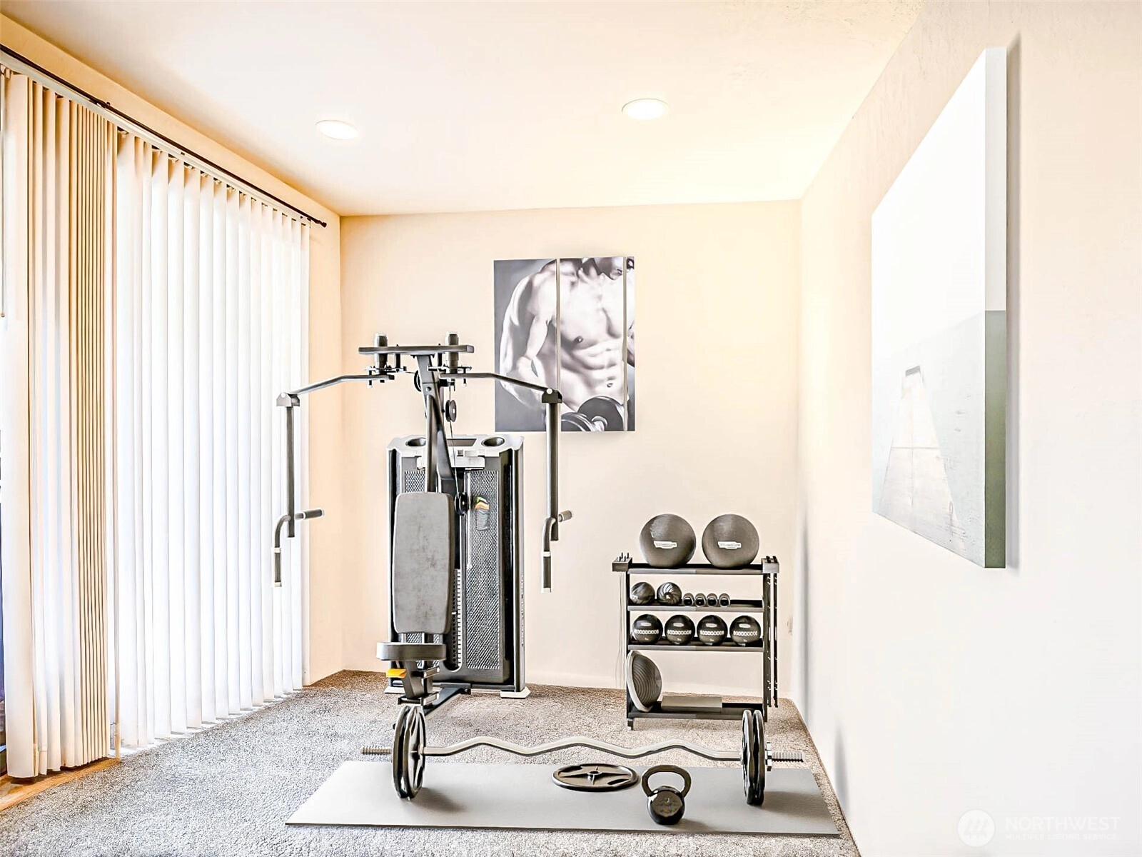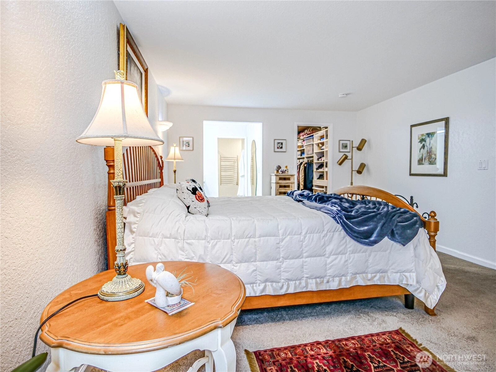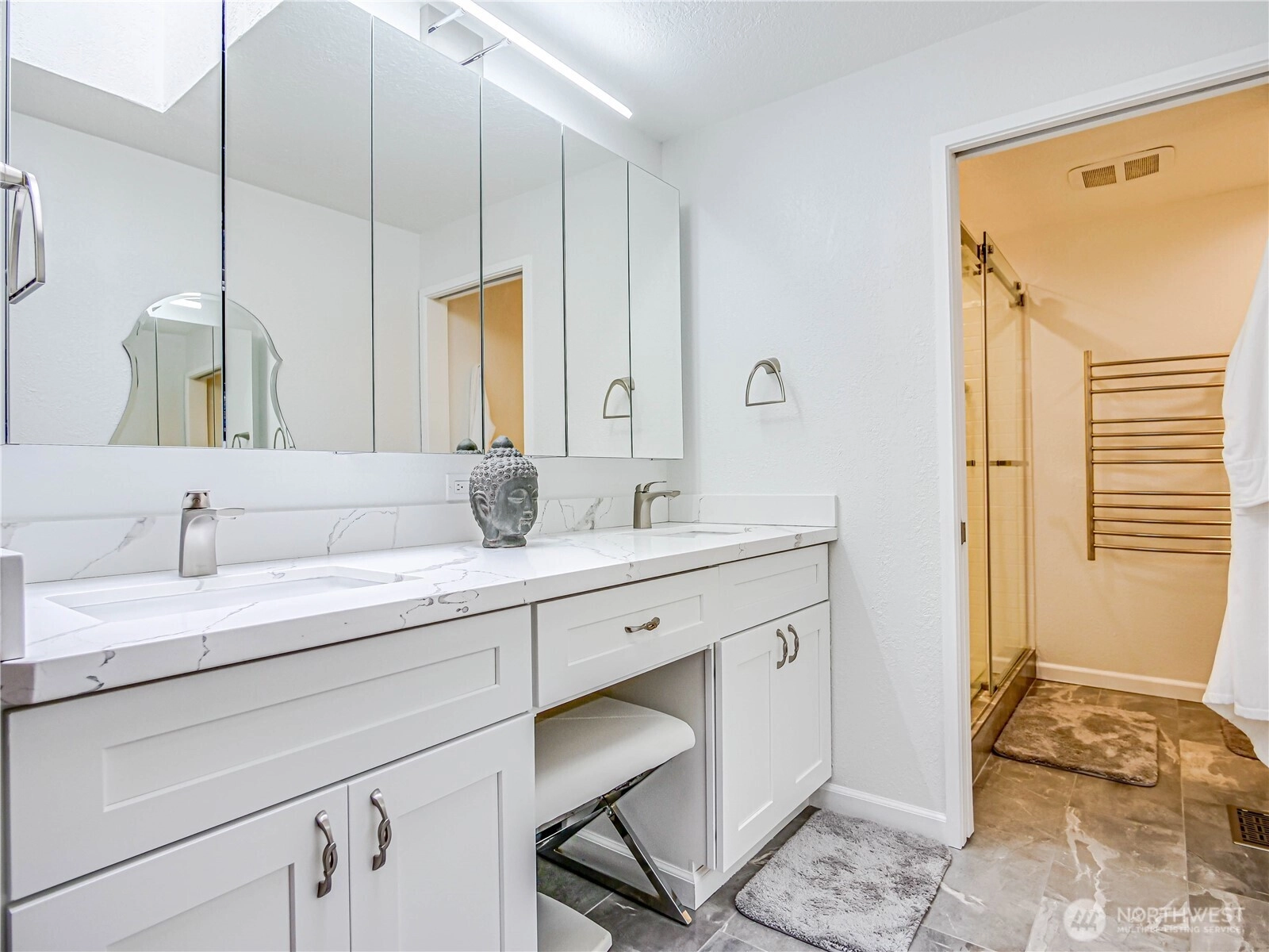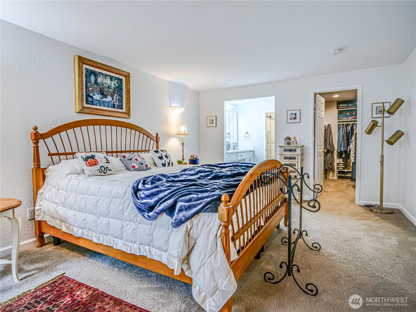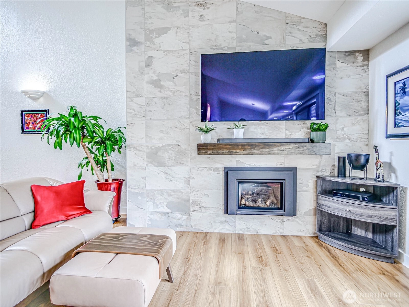 Welcome to Fairway Village One! Luxury living in a mindfully updated home. Main floor features Primary Bedroom with walk in closet, lovely shower & dual sinks, heated towel rack. Open & bright living room w/vaulted ceilings & full wall gas FP. Cheerful kitchen w/high end appliances , open to Atrium, dining room w/patio doors to large deck, great for entertaining. Lower level offers a large family room w/kitchenette, 2nd gas FP, & the 3rd BR private guest suite w/two-person hot tub on patio. Oversized 2-car garage with workshop, extra Refrigerator & plenty of storage. This flexible floor plan ideal for entertaining or multi-generational living. Low interest assumable VA Loan available to all buyers. Mill Creek Twn Ctr, Golf club & Parks !!
