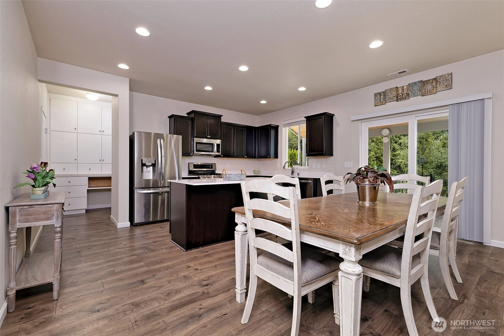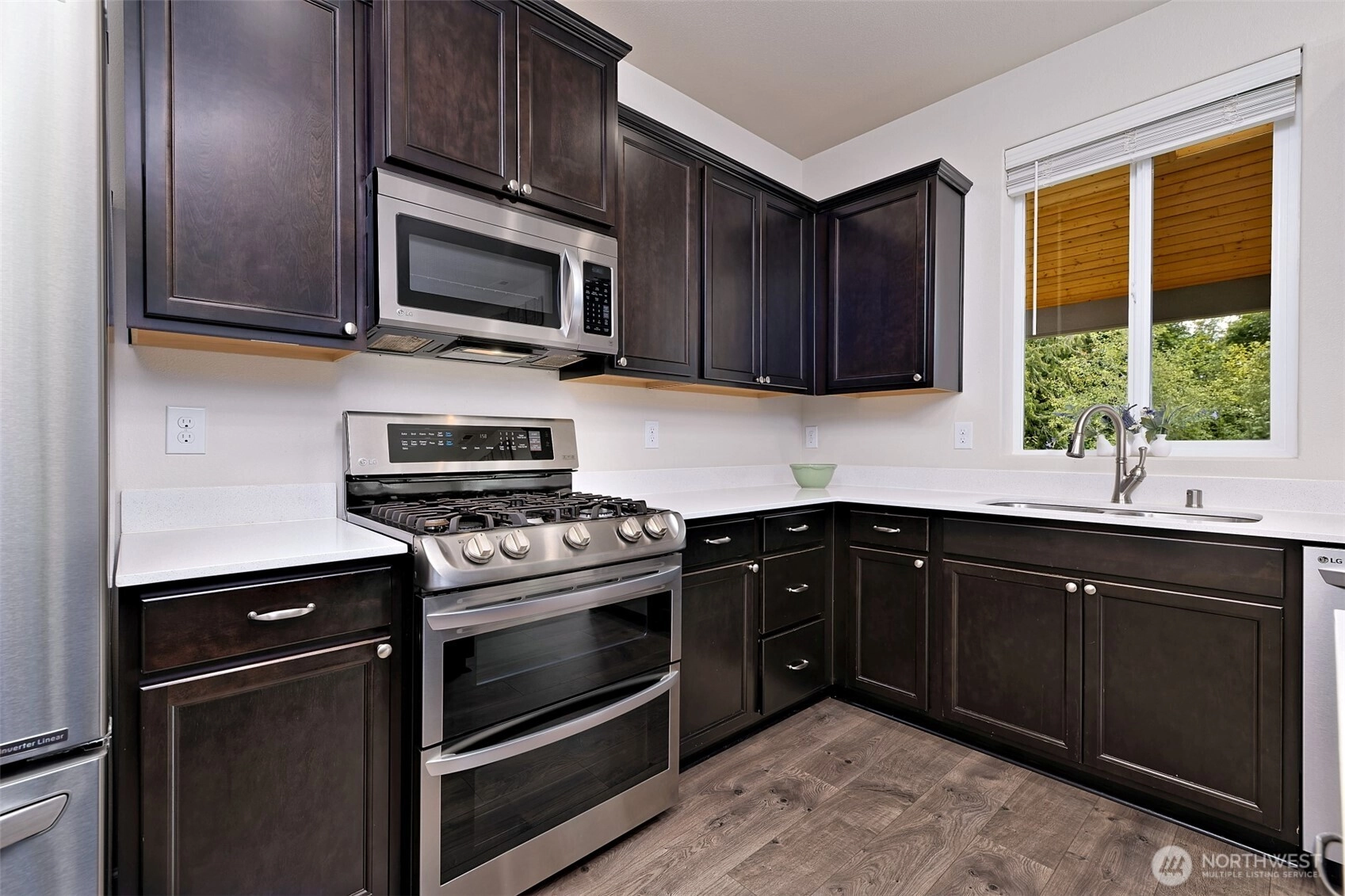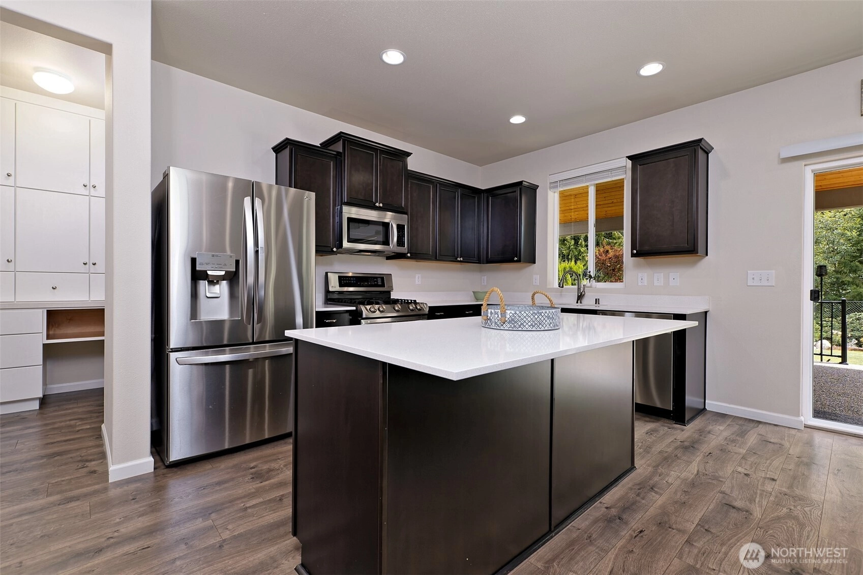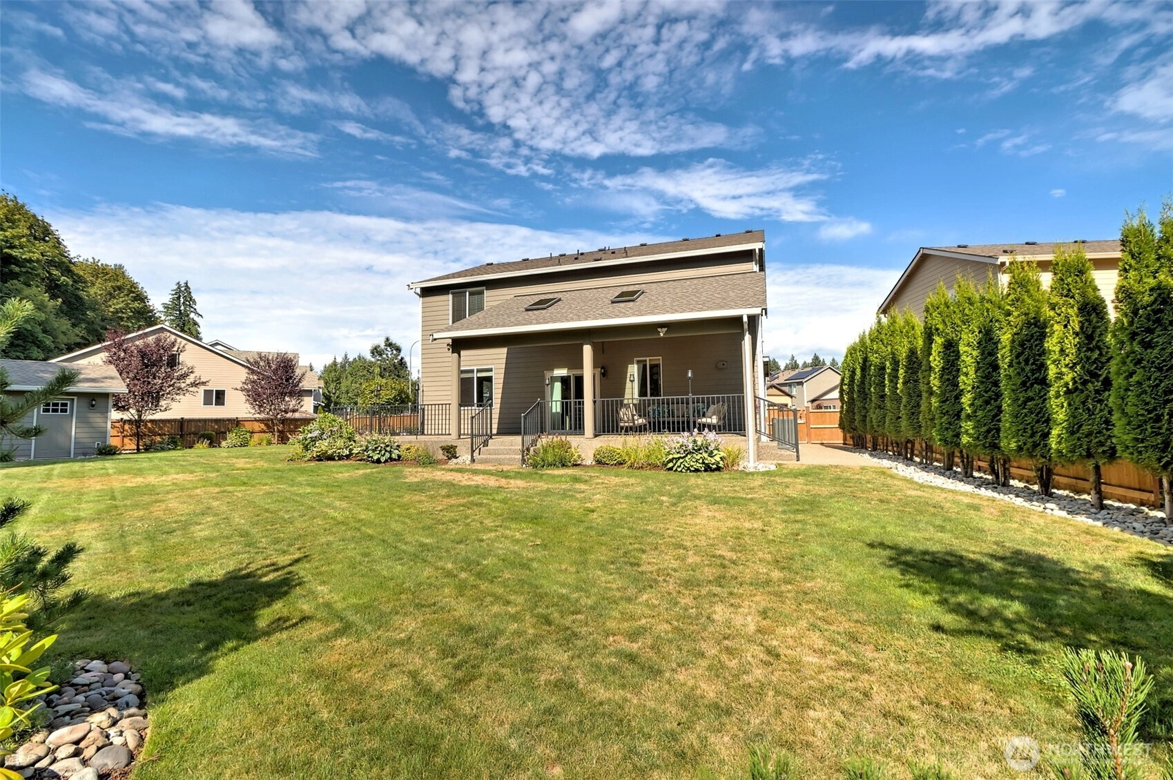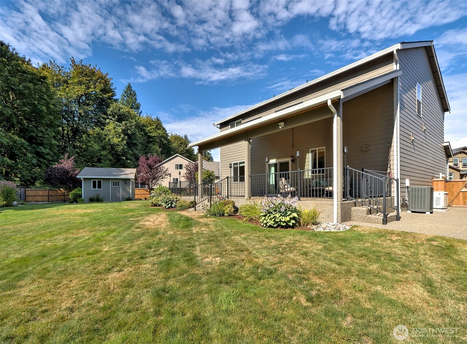 Immaculate 2,648 sq. ft. home in the Munn Lake neighborhood of Tumwater. 5 bd/3ba, .26 acre corner lot. Open floor plan w/raised ceilings that flow right into a huge kitchen w/quartz countertops, stainless steel appliances & a double custom walk-in pantry. Large master suite & additional living area upstairs. Outside, enjoy a raised, 550+ sqft covered patio w/exposed aggregate. Perfect for BBQs, entertaining & relaxing. Fully fenced yard w/ the most perfect PNW landscaping backing up to the HOA greenbelt for extra privacy. Other features include a large outbuilding/garden shed w/ a roll-up electric door, raised container garden, heat pump, installed generator system, & a fully finished 2-car garage. Tumwater School District. Easy commute.