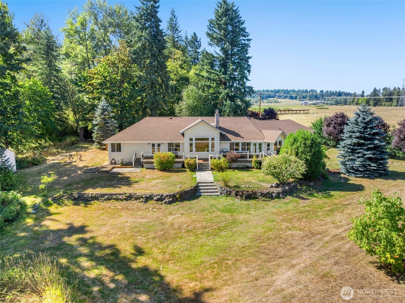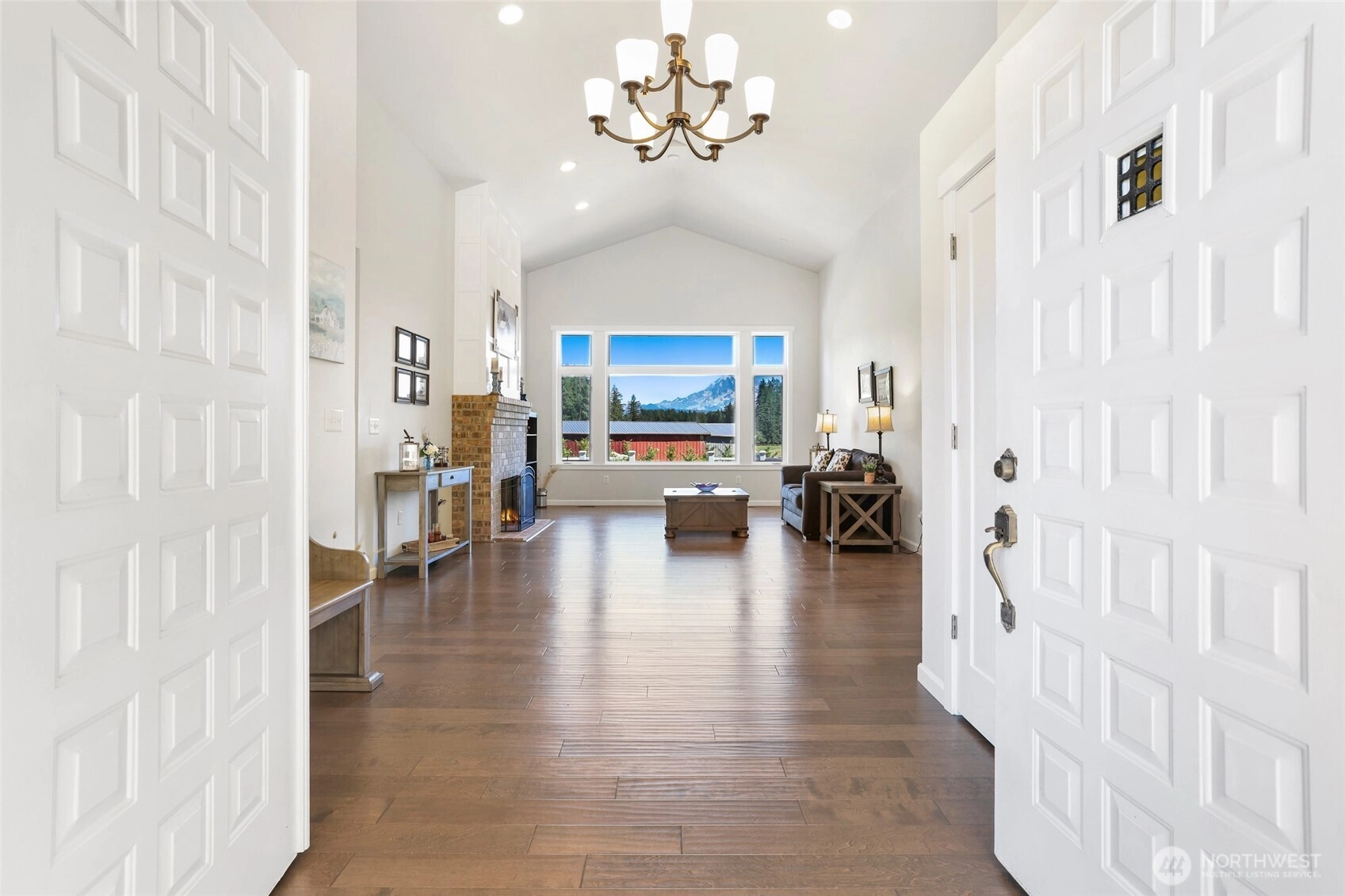 Tucked away on a private, gated, 2-acre lot, this beautiful rambler offers the perfect blend of serenity and space. Vaulted ceilings & a wall of windows greets you to showcase the breathtaking mountain view. The open concept leads you to a gourmet kitchen w/ tons of space for culinary adventures & French doors open to a large deck that's perfect for sipping morning coffee while taking in views, or entertaining on warm summer days. A/C and two cozy fireplaces make every season ideal & the Primary Suite lands you in the lap of luxury. Outside you'll find beautiful spaces for all of your needs: raised garden beds, space for RV/toys, & watching wildlife. Added bonus - newer roof, heat pump, deck, & wired for a generator. This home has it all!