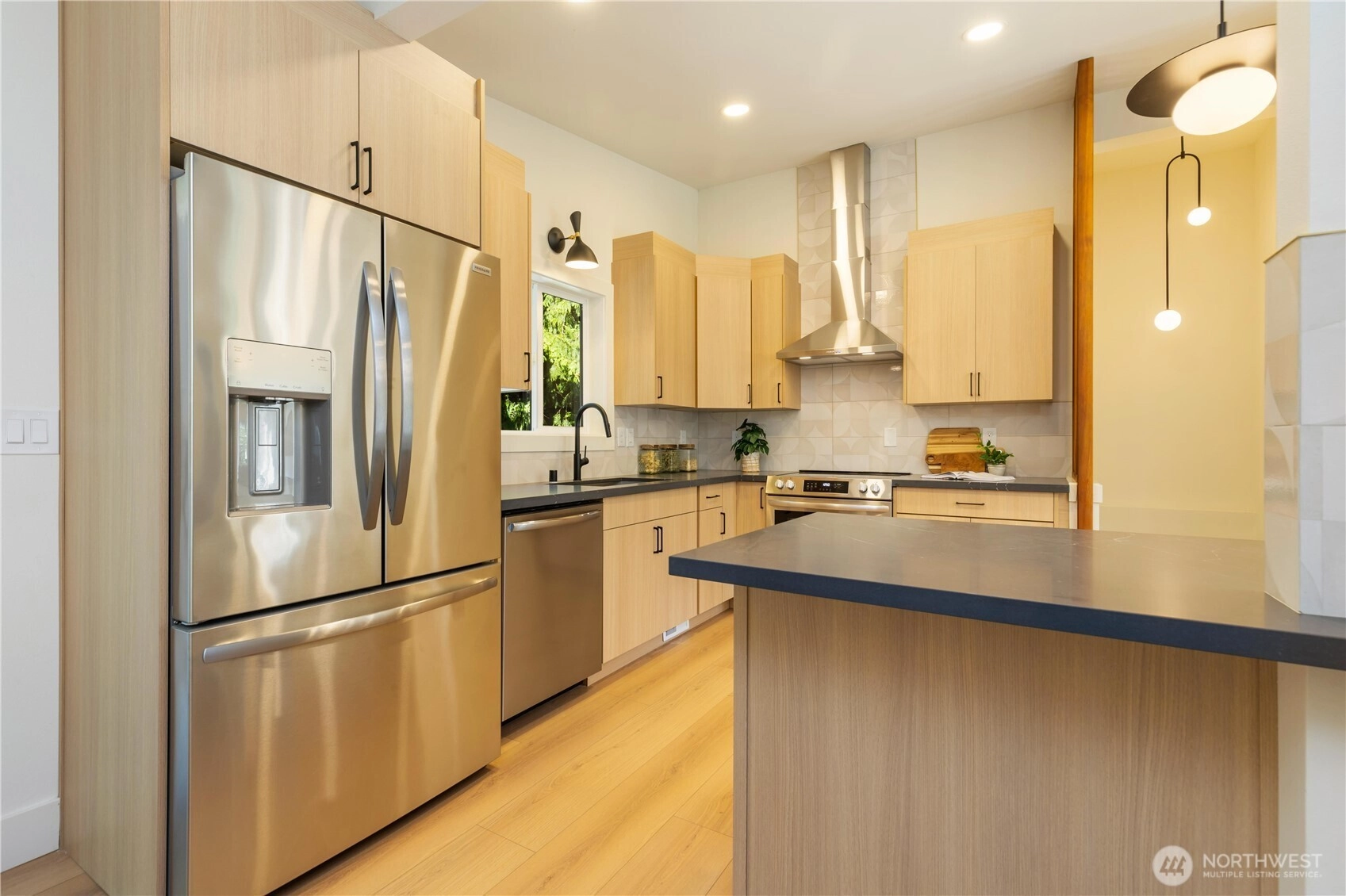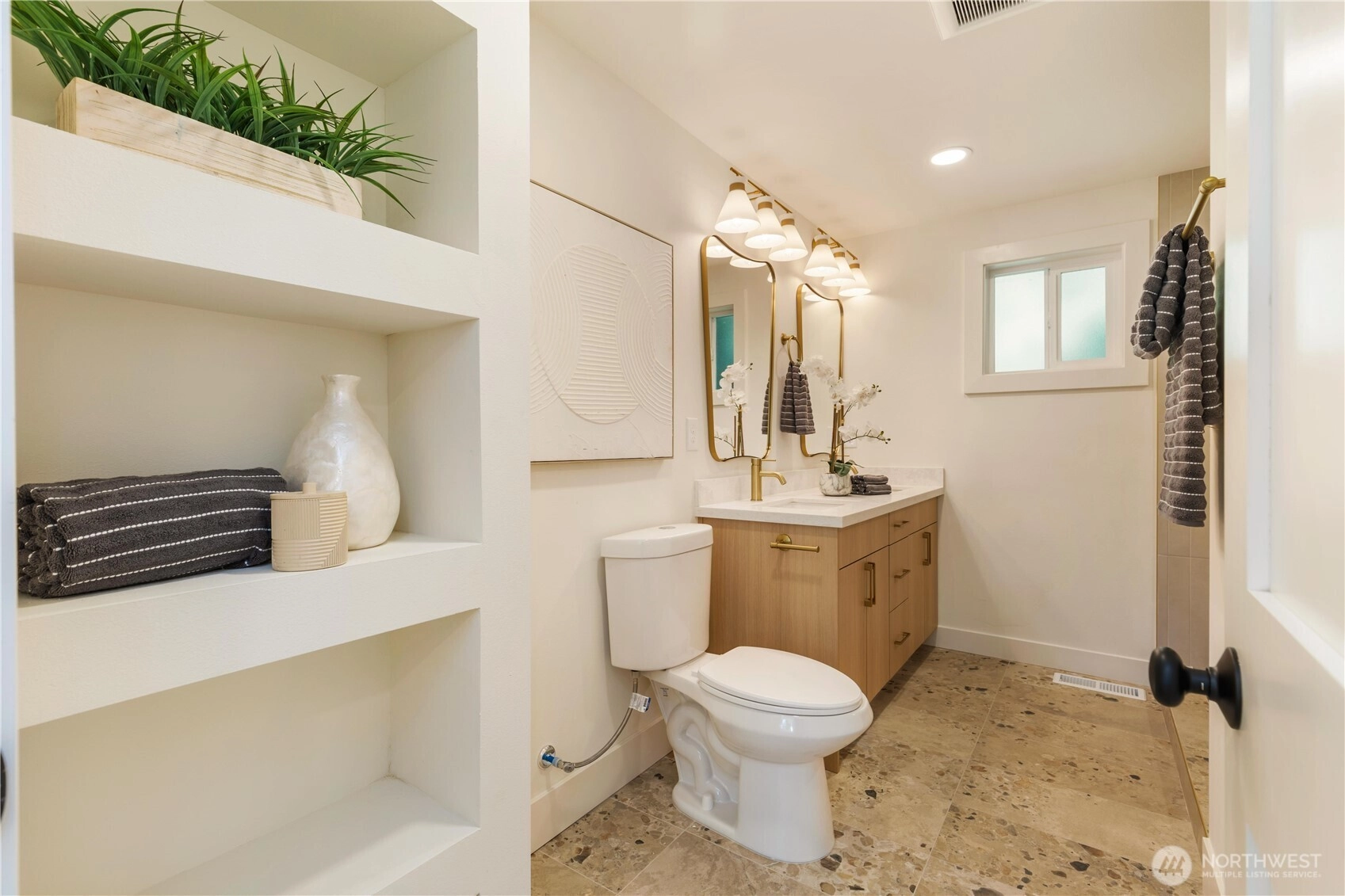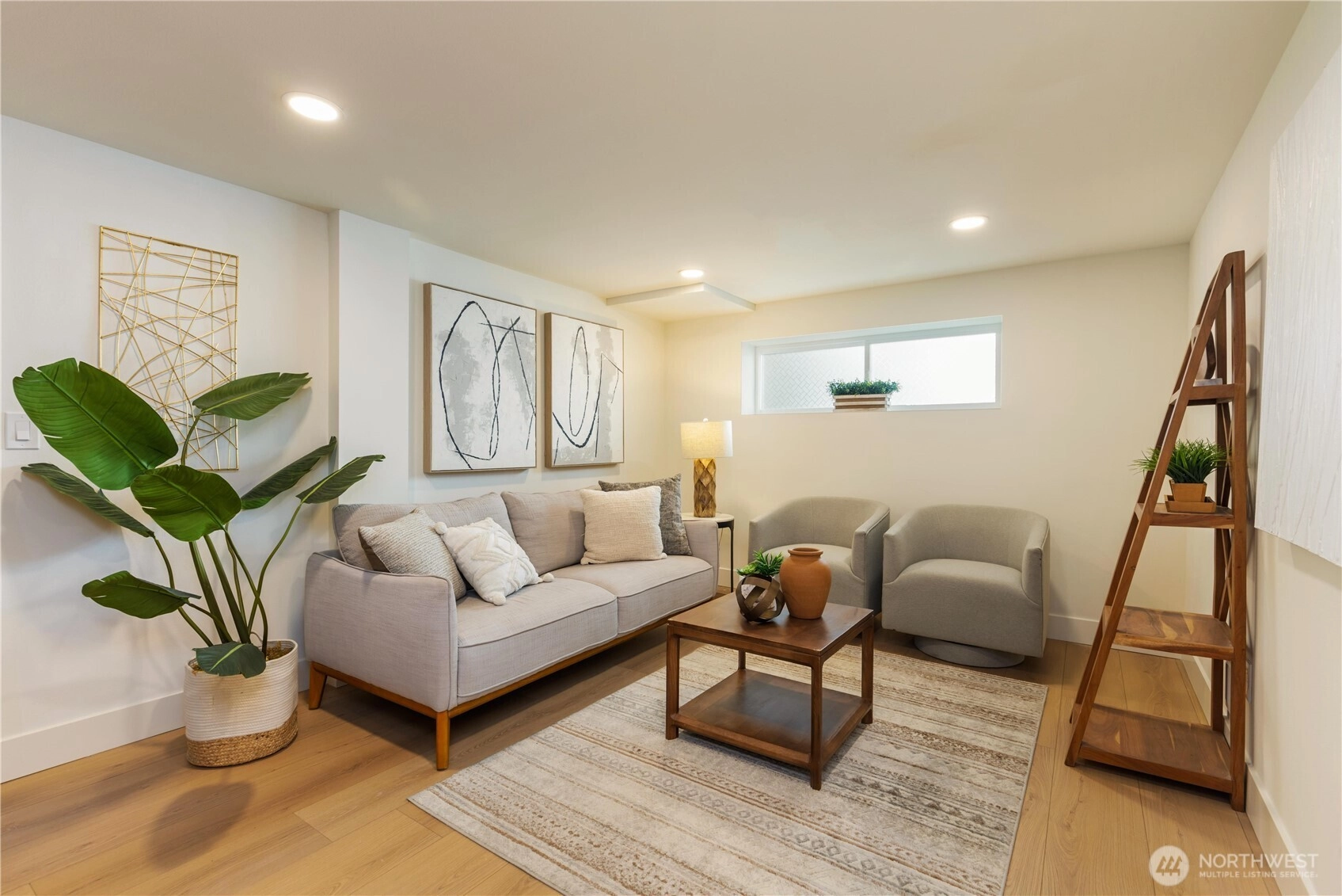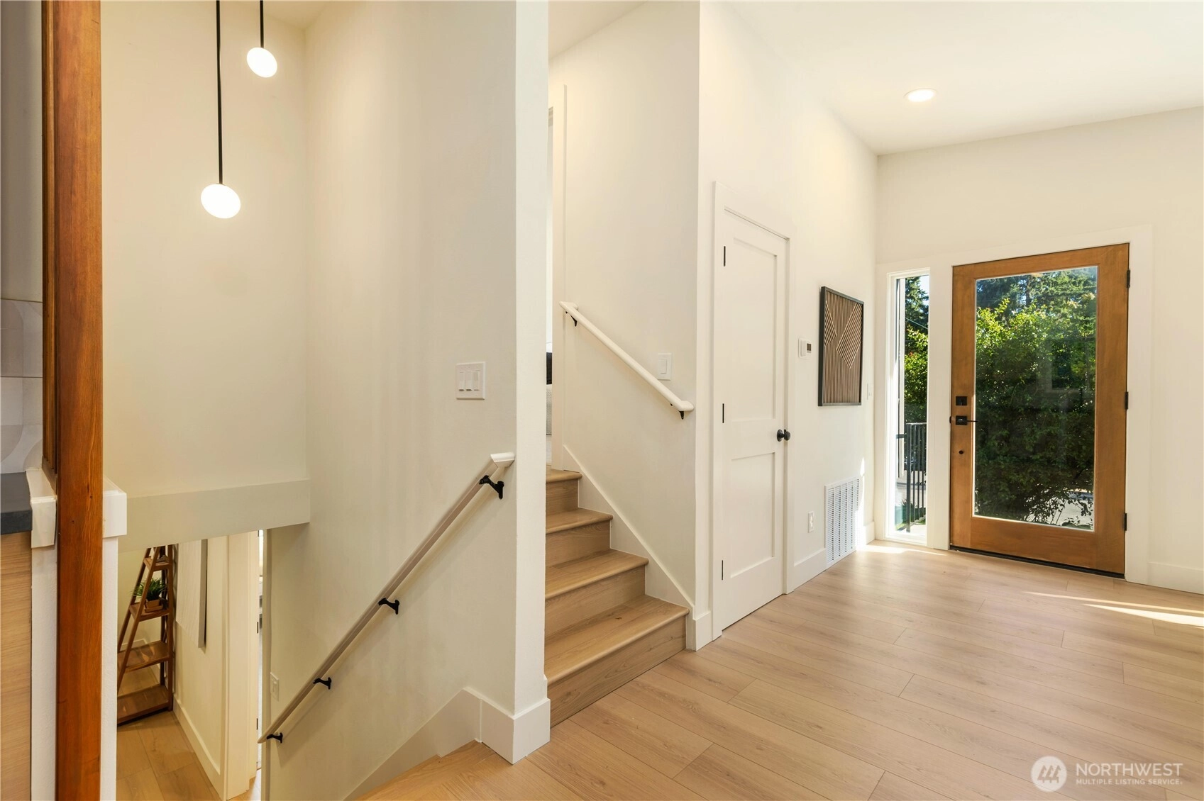 Updated stunner in the heart of Richmond Beach, just one block from Saltwater Park & mins to DT Edmonds! This chic 3 bed 2.75 BA home lives large! Featuring an airy layout w vaulted ceiling swept in natural light. Sleek brand new kitchen flows into dining w seamless access to the expansive back deck. Lower offers bonus space to relax complete w wet bar & easy access to expansive yard. Upstairs, primary suite boasts a spa-like ensuite w oversized shower, dbl vanity, built-ins plus walk-in. Outside offers a serene setting, freshly landscaped. One-car drive through garage—ideal for parking or reimagined as a gym, studio or bonus space that flows outdoors. Prime location w permitted thorough updates - plumbing, electrical & so much more!