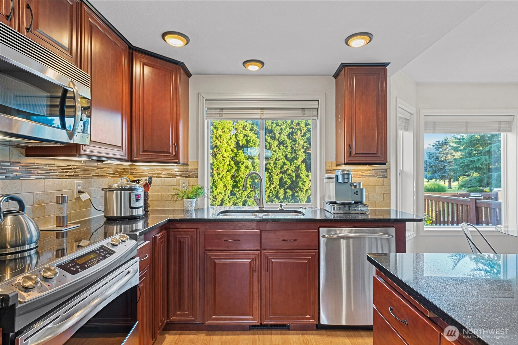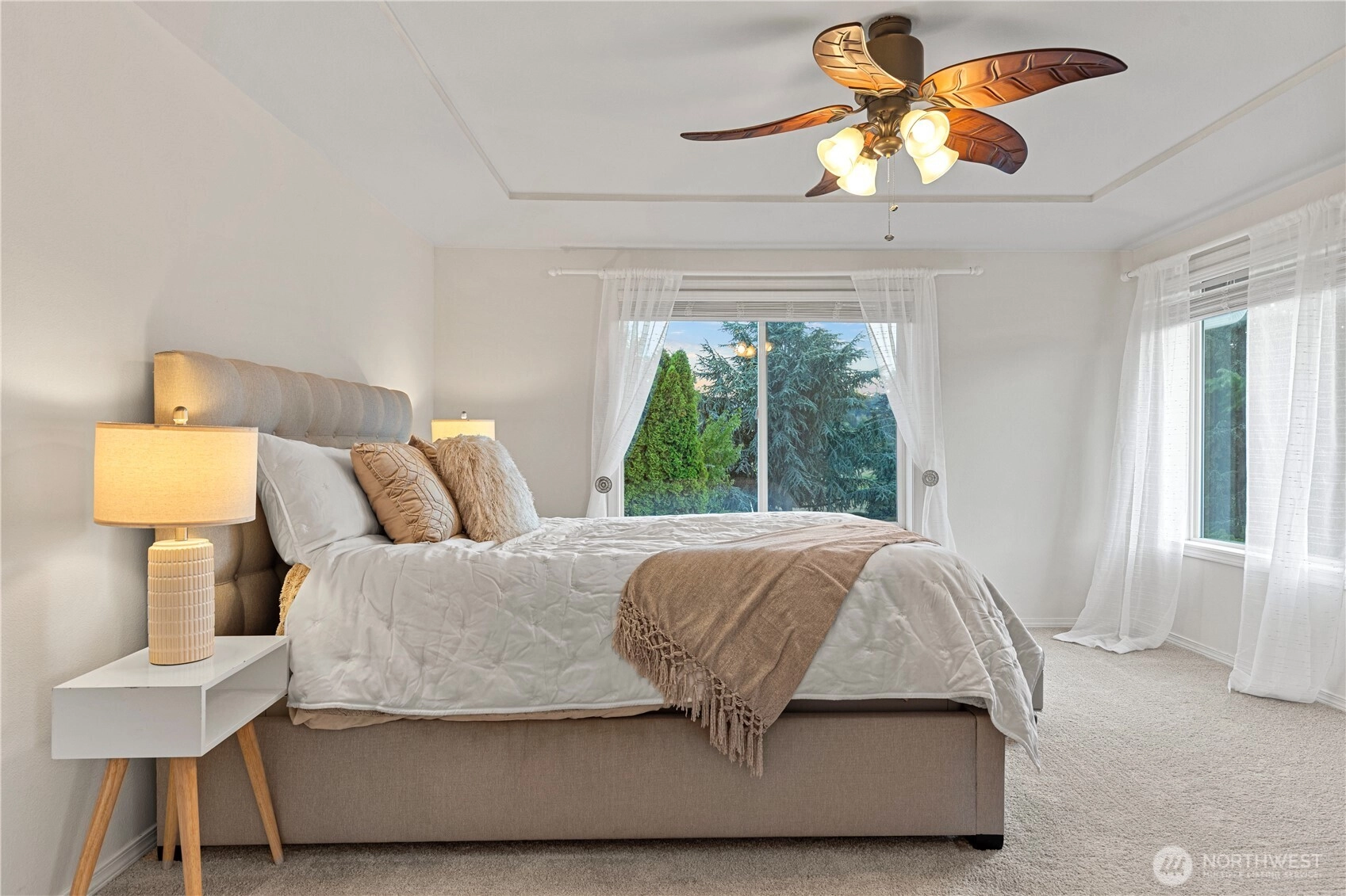 Envision waking up to Mount Rainier's majestic peak glistening in the distance and the manicured fairways of a championship golf course as your backyard. This isn't just a home; it's a lifestyle crafted for those who appreciate tranquility, breathtaking beauty, and the exhilarating pursuit of a beautiful game. Home features a brand new roof, new Central AC & furnace. New carpet, fresh interior & exterior paint for peace of mind and year round comfort. Whether entertaining friends or enjoying quiet evenings on your deck, this home blends comfort, convenience, and an unbeatable setting. A rare opportunity to live in a home that truly captures the beauty of the Pacific Northwest! Come see what High Cedar Golf living is all about.