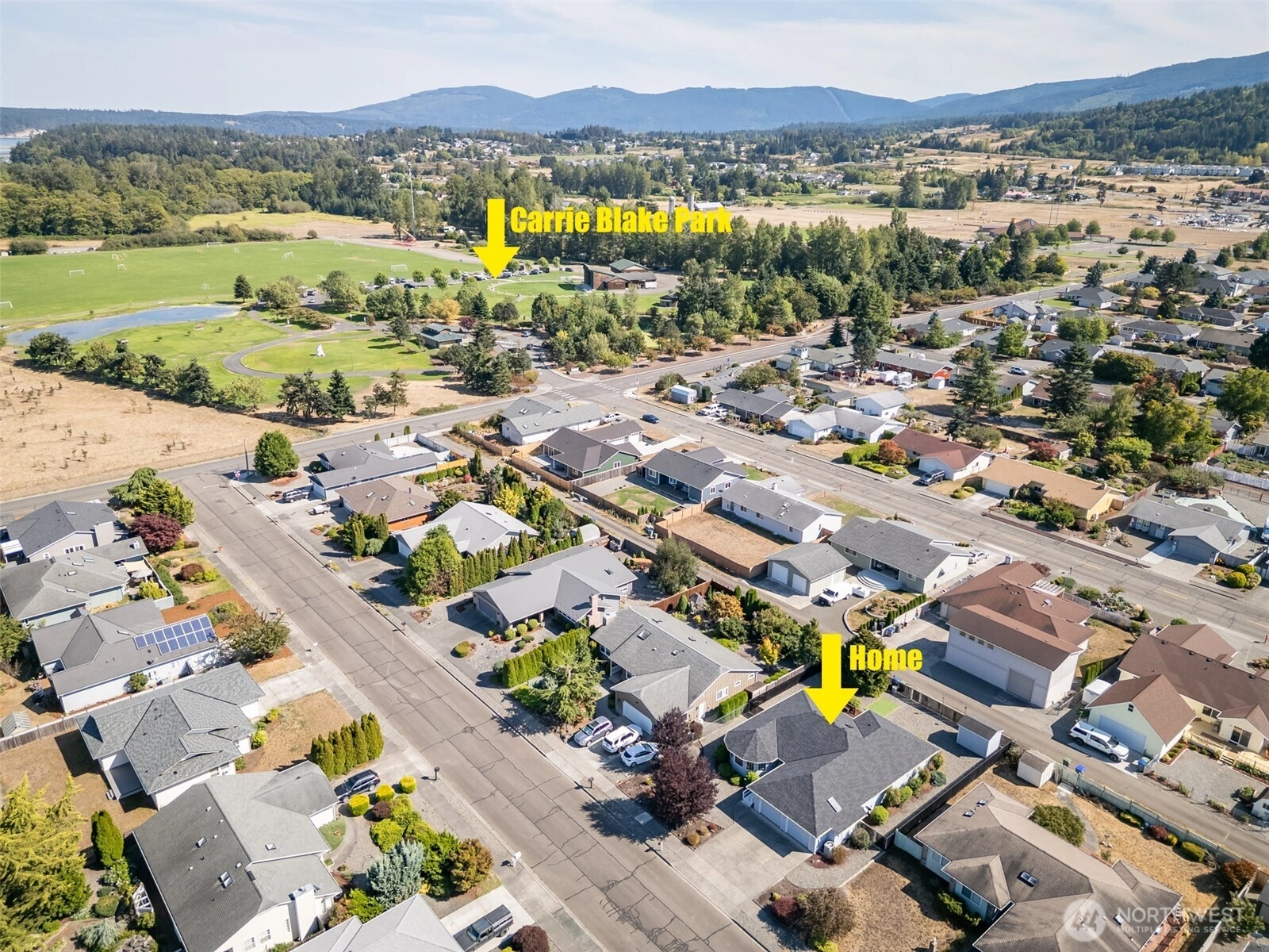 Welcome to this 3-bedroom, 2-bath, 1,666 sq ft home in the heart of Sequim, just minutes from Carrie Blake Park, shopping, and restaurants. Brand New Carpet Throughout! The kitchen features soft-close cabinets with pullouts, propane stove, and a new dishwasher. Enjoy multiple living spaces with a living room, family room, formal dining, and breakfast nook. The spacious primary suite offers a walk-in closet, soaking jetted tub, and separate shower. Updates include a new roof in 2023. The fenced backyard with shed and garden area is perfect for outdoor living. No HOA!