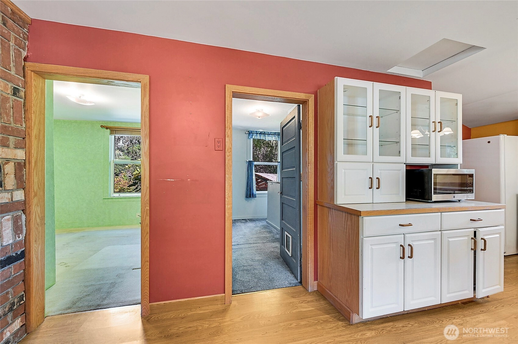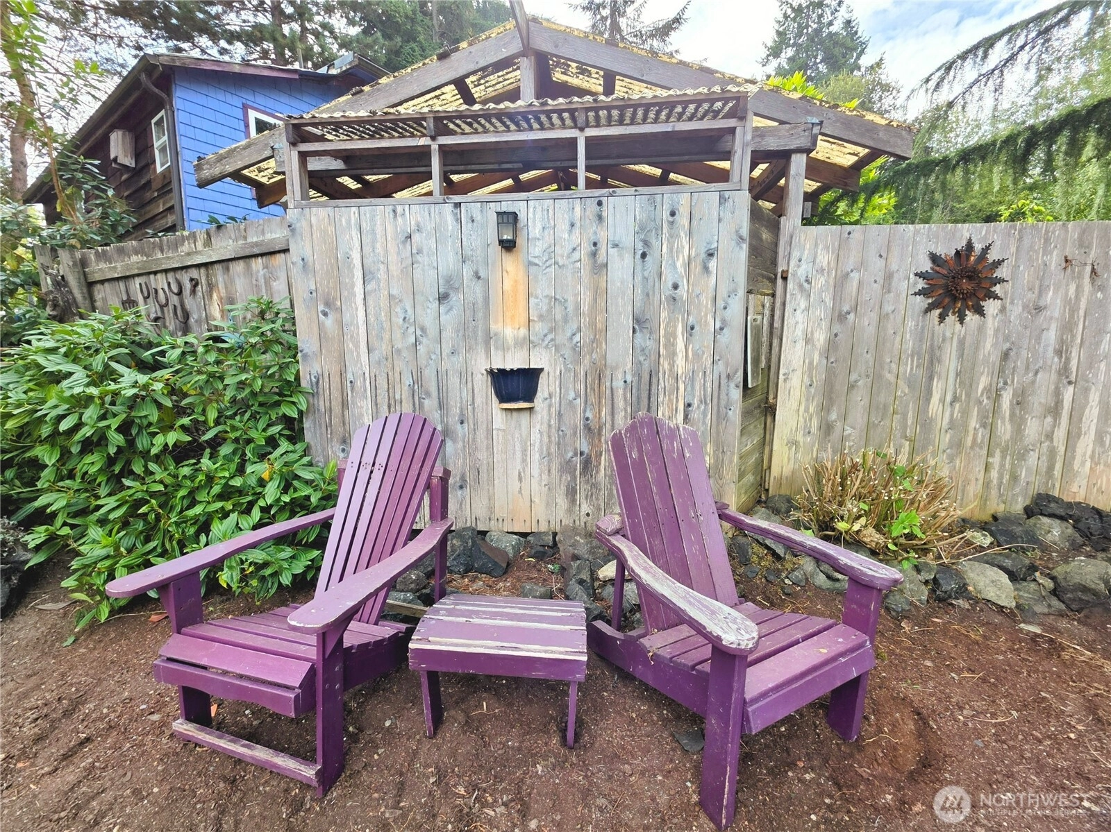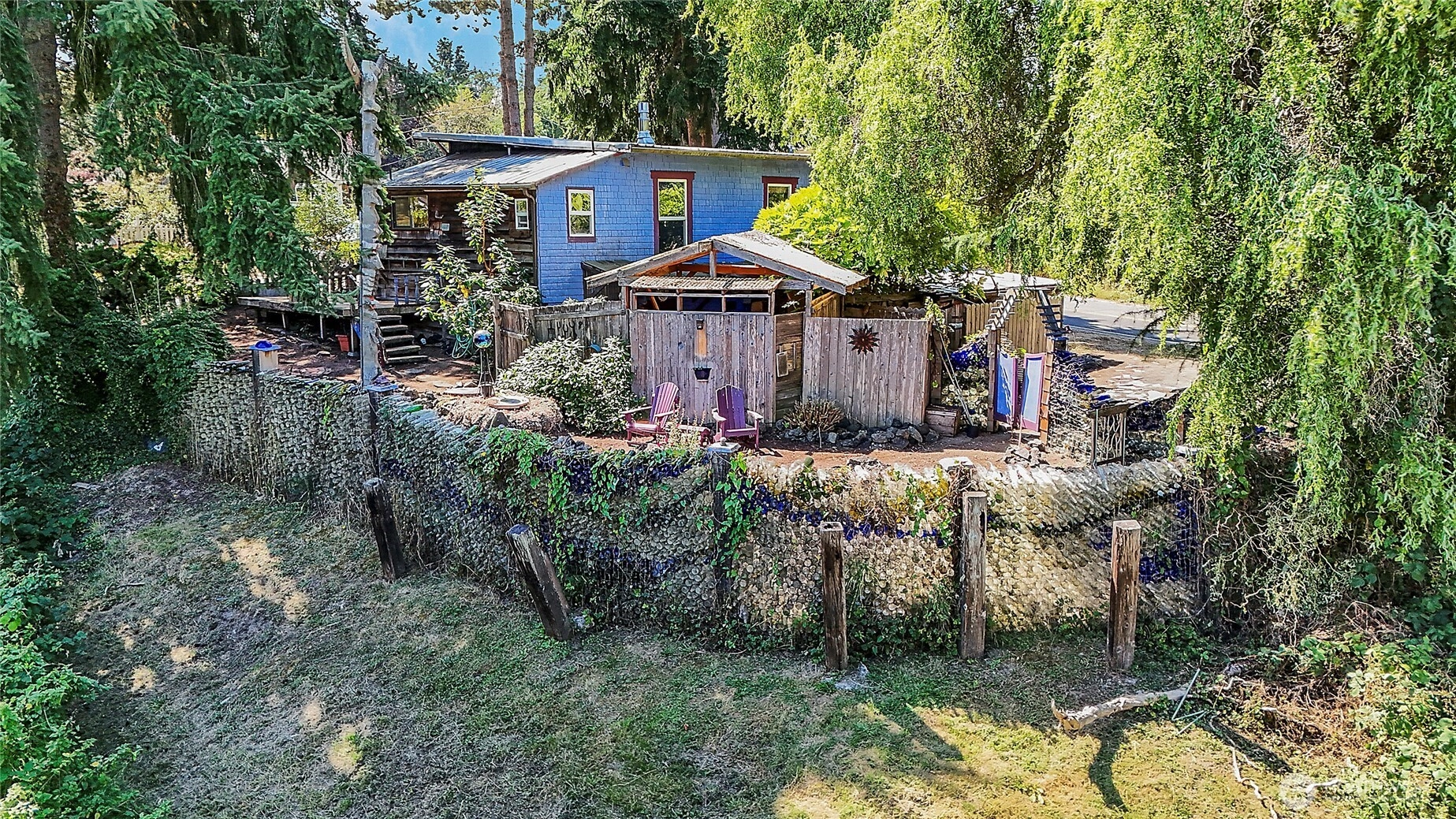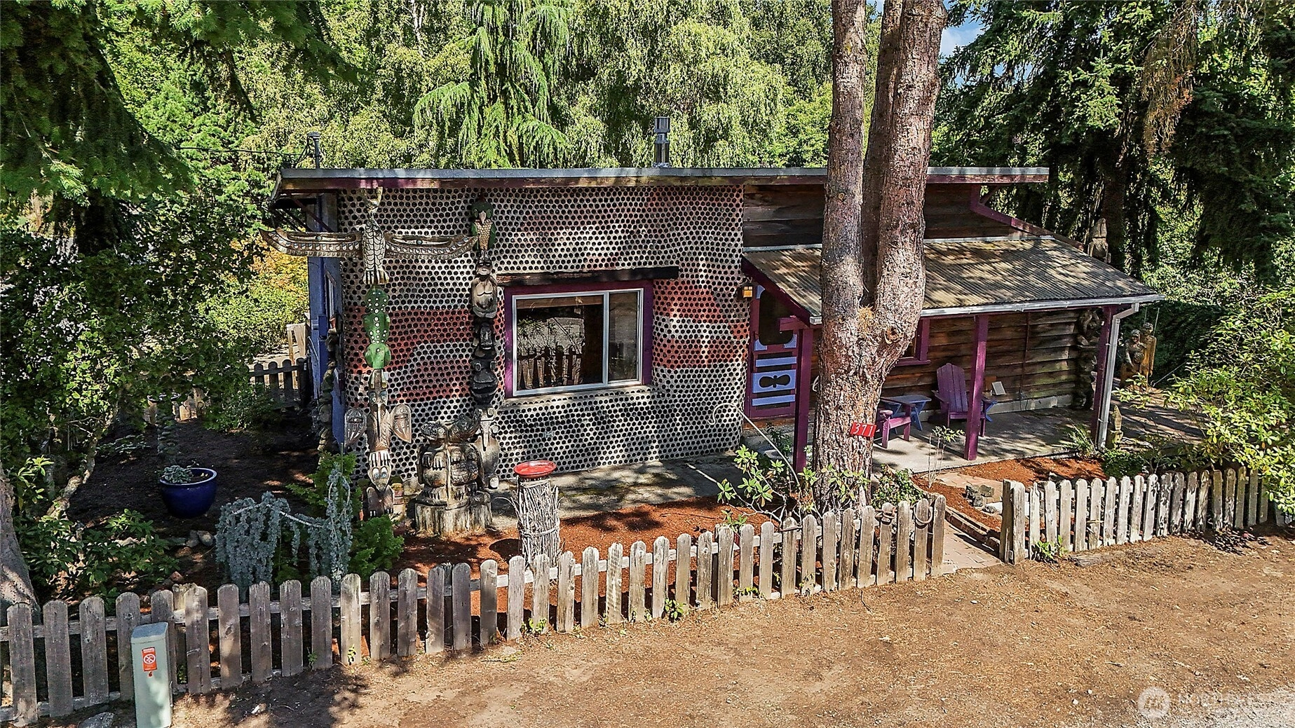 Welcome to your charming coastal retreat! This unique 3-bedroom, 1-bath home is a true artistic gem, nestled on a spacious lot just steps from the beach. Relax & unwind in your hot tub, under the gazebo, with an outdoor shower. Discover a blend of nature & creativity in your enchanting yard, featuring a stunning bottle fence, magical totem poles & a lush apple tree alongside fruitful blackberry bushes. The front of the home features a unique style for aesthetic & insulating purposes, with bottles built-in. The home was at one time, the Irondale General Store; offering peek-a-boo water views, a large workshop, to restore it to its former glory, covered carport and more. Conveniently located, just minutes from PT, grocery & hardware stores.