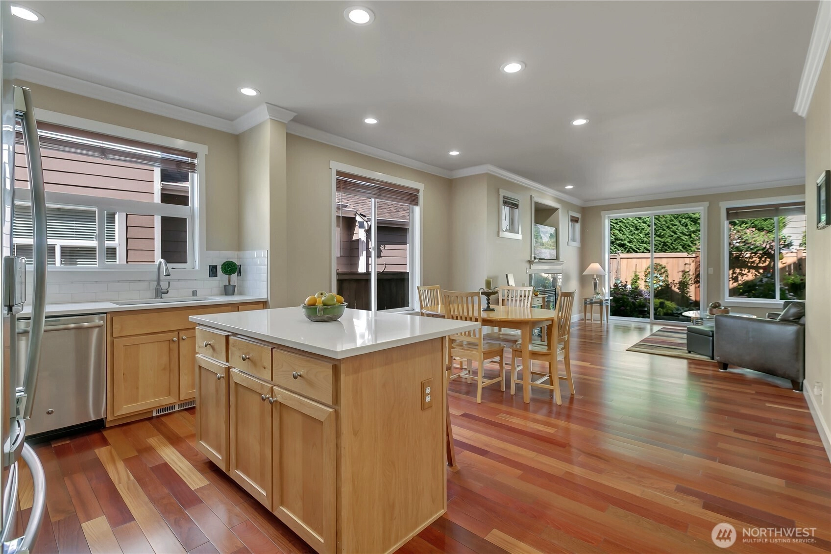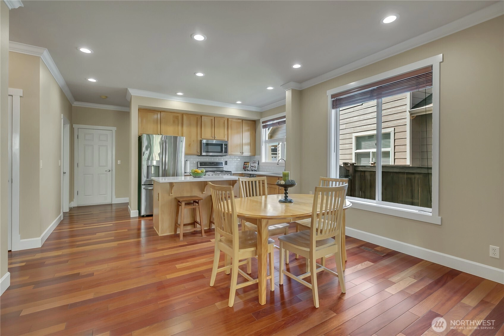 A gardener's & traveler's delight, this impeccably maintained townhome in The Gardens at Valley Meadows is hard to find. Main floor living & sleeping make life easy. Three more large bedrooms & full bath upstairs offer comfort & creative options. Updated kitchen gazes out on the colorful garden through large bright windows. All major systems & appliances have been replaced, offering peace of mind while home or away. HOA maintained exterior paint, roof, & yard. Roof replaced in 2024. Secure RV lot for trailer & boats, plus access to miles of regional trails for walking, running & cycling. A dog's heaven too. Shared park with Valley Meadows adds opportunity to meet the neighbors. Close to schools & amenities & quick access to Hwy 169 & 18.