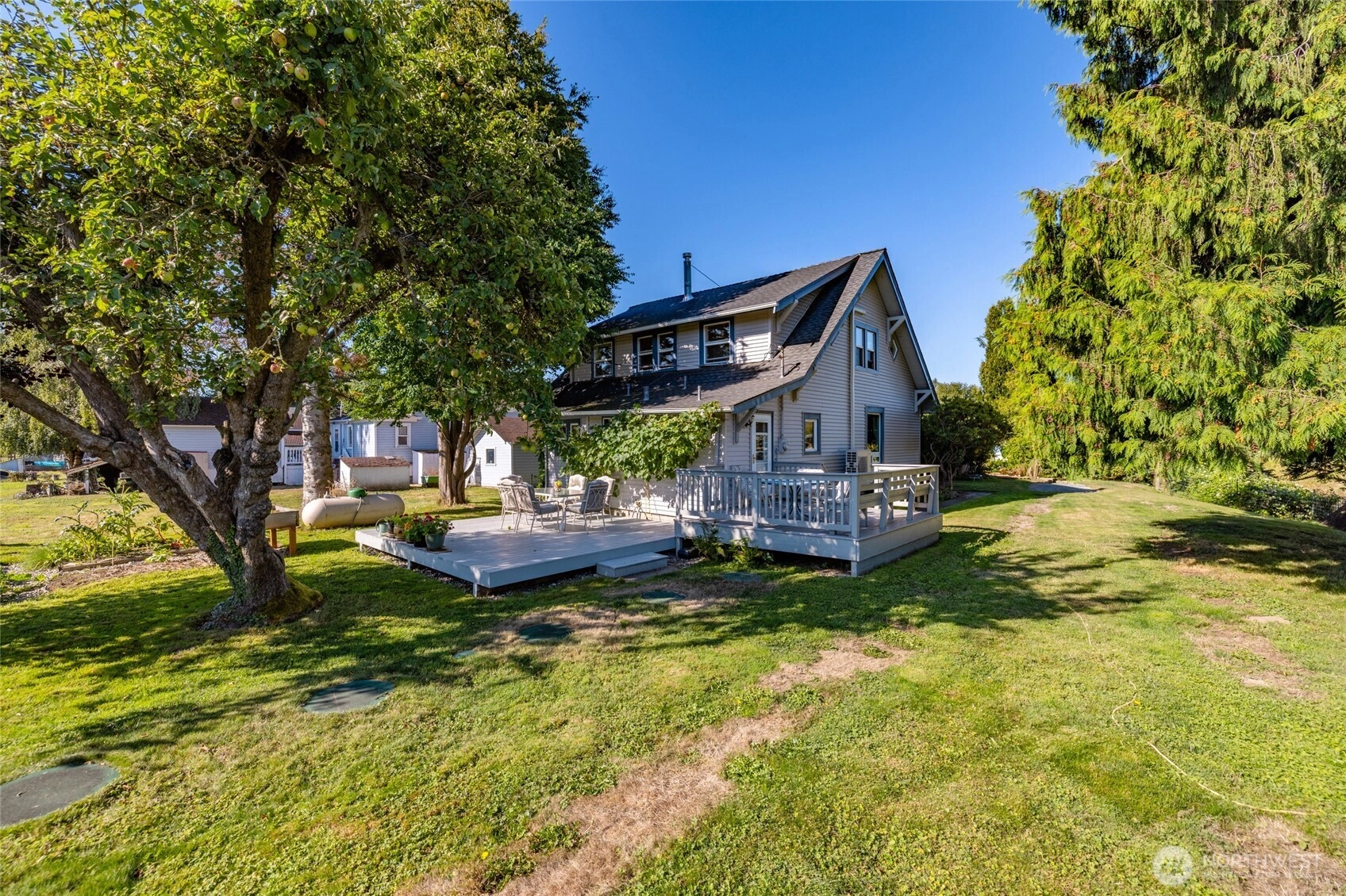 Tucked at the end of a lane, where farmland & Mount Baker views are your neighbors, this charming 4 bed/3 bath home offers privacy & a gardener's dream come true. Fertile Skagit Delta soil, established gardens, & a greenhouse await your green thumb. Inside, a cozy gas free-standing stove, arched doorways, & vintage cabinetry instantly evoke that country charm. Farm kitchen & breakfast room. Main floor primary suite w/full bath, plus a second primary w/adjoining 3/4 bath upstairs. Character throughout, including a real "bunkroom," a curved hallway, & a reading nook w/beautiful views. Mini-ductless splits for heat/AC, Newer roof. Located in Conway, close to award-winning food, music, & Conway School. Minutes to I-5, Mount Vernon, La Conner.
