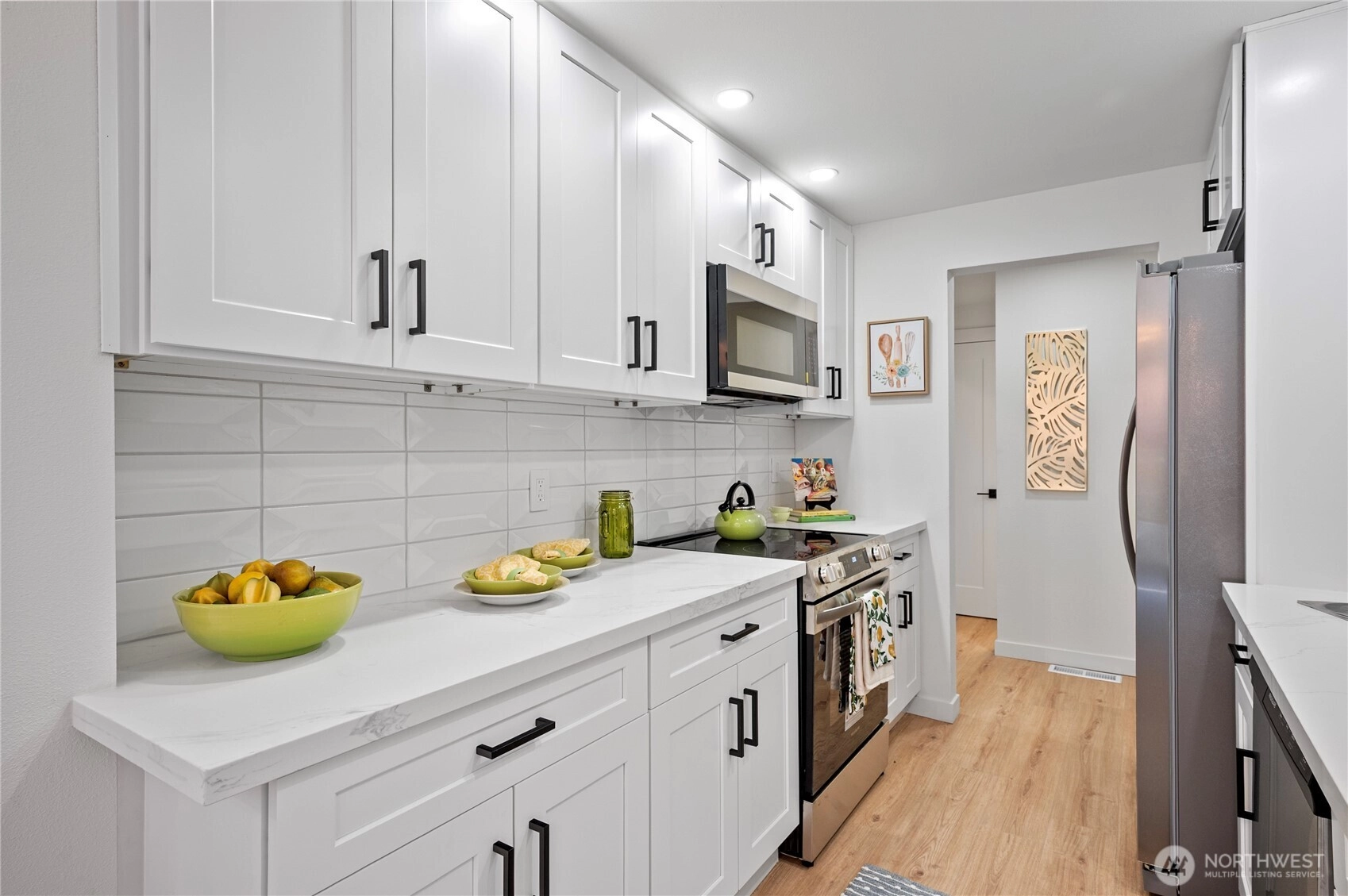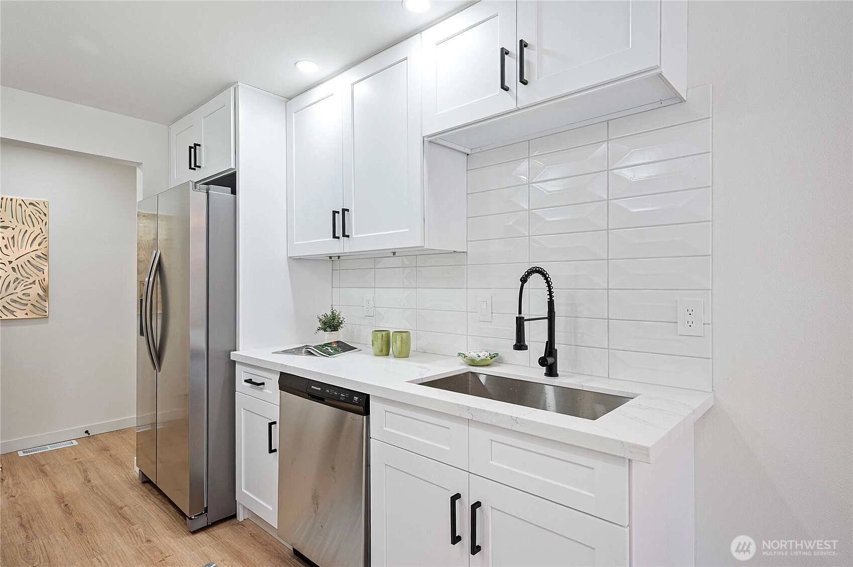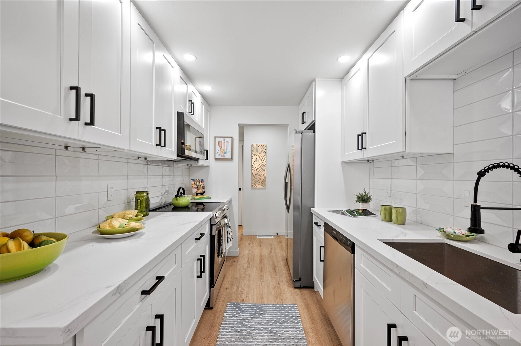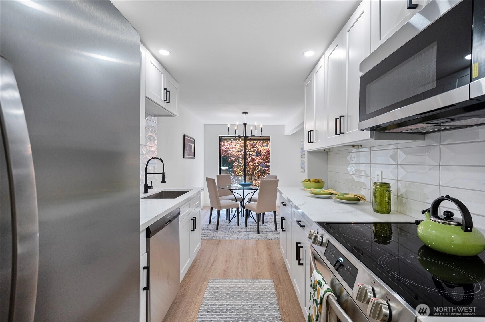 Welcome to this move-in ready condo in a Bellevue prime location! Fresh paint, updated bathrooms with elegant tile, new carpet in bedrooms, a fully redesigned kitchen with brand-new cabinets and stainless steel appliances. Open-concept living with abundant natural light. Just a short walk to Crossroads Mall with restaurants, grocery stores, shops, movie theater, library, Crossroads Park, Starbucks, and more. Conveniently located on the bus line for easy access to downtown Bellevue and Microsoft. 1 assigned parking spot and storage in the basement. Community amenities include: tennis court,swimming pool, walking path, and dog break area. Enjoy the perfect combination of comfort, convenience, and lifestyle.