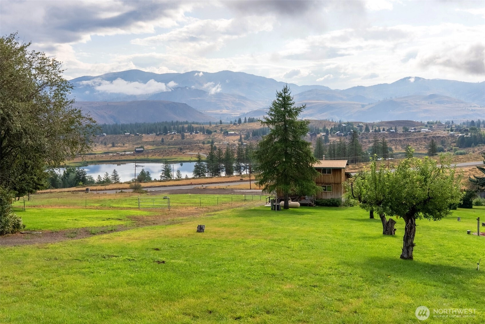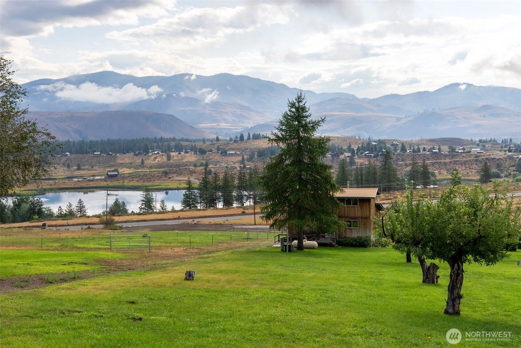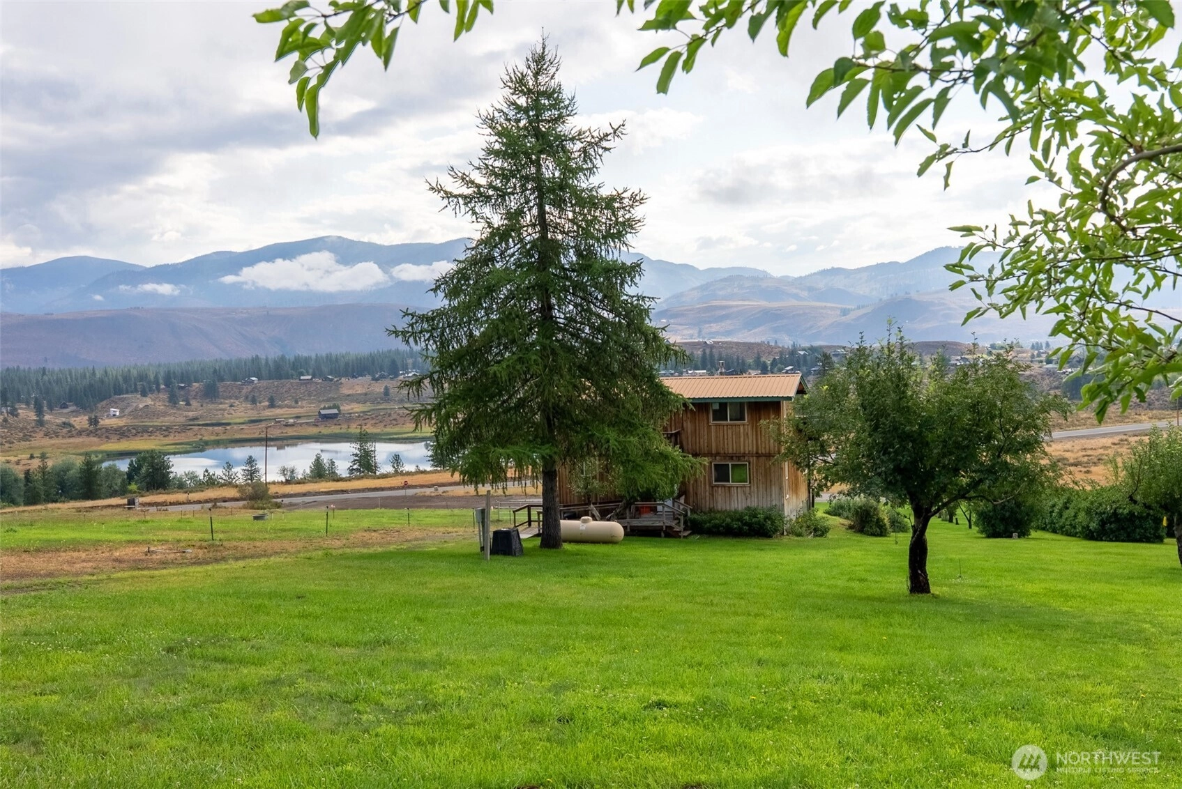 Twin Lakes View Home on 5+ Acres - just south of Winthrop, this 2 bedroom home overlooks Twin Lakes with sweeping views from front deck. The property features a spacious yard with fruit trees, garden area and direct western border with State Land. Practical amenities include an attached one car garage on the lower level and large equipment storage shed uphill from house. Handicap ramp on 2nd level. Enjoy close access to Patterson Lake, Sun Mountain Lodge and all the outdoor recreation the Methow Valley has to offer. Can receive internet connection.