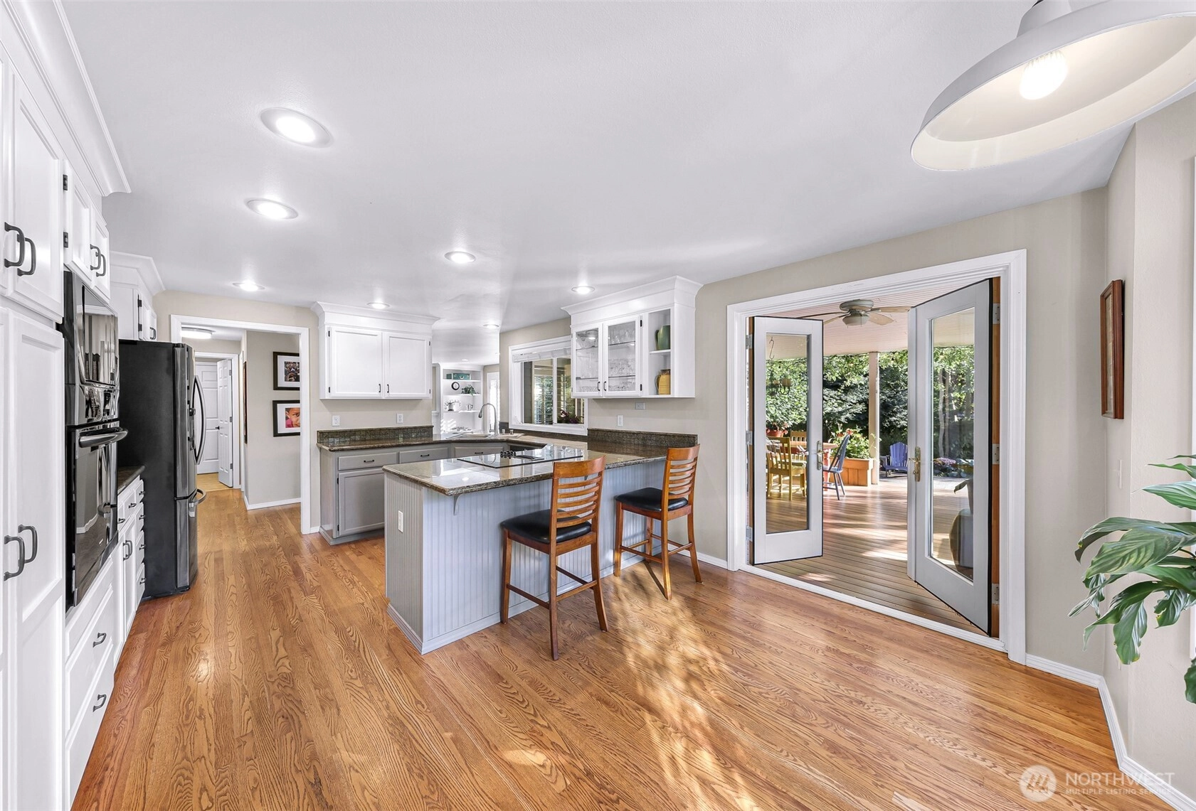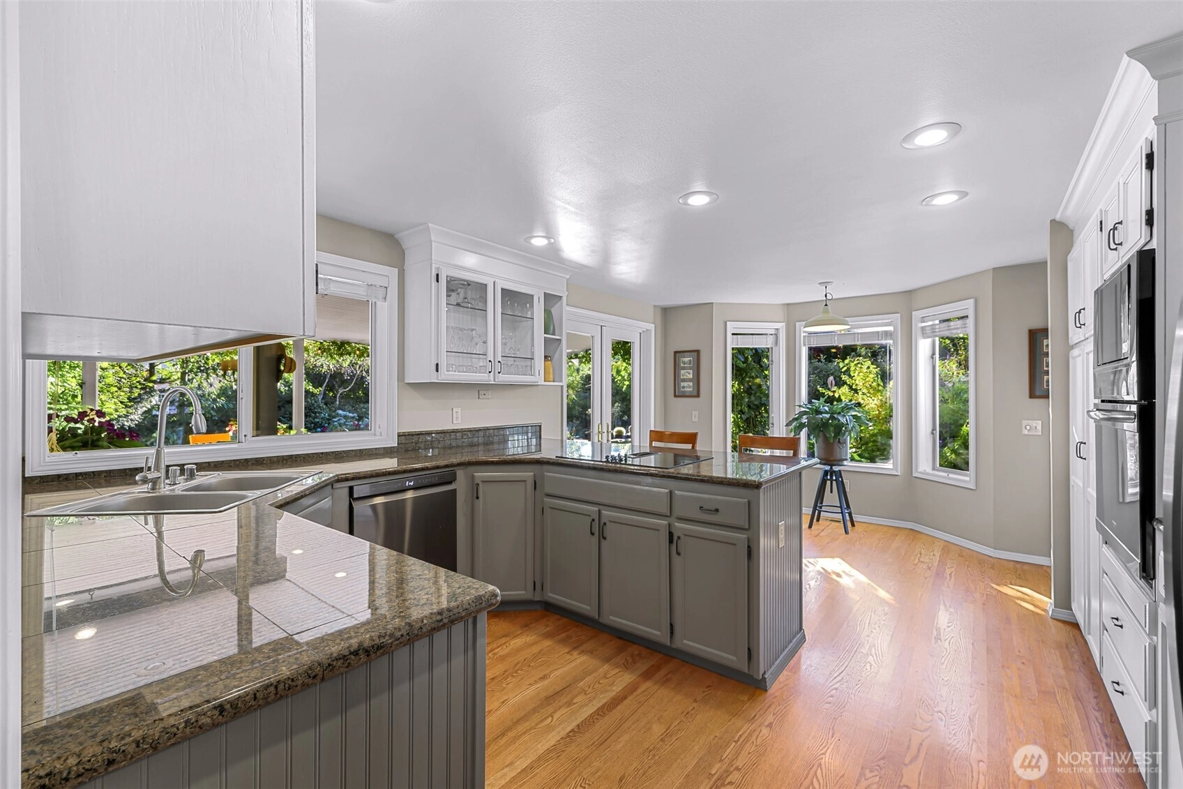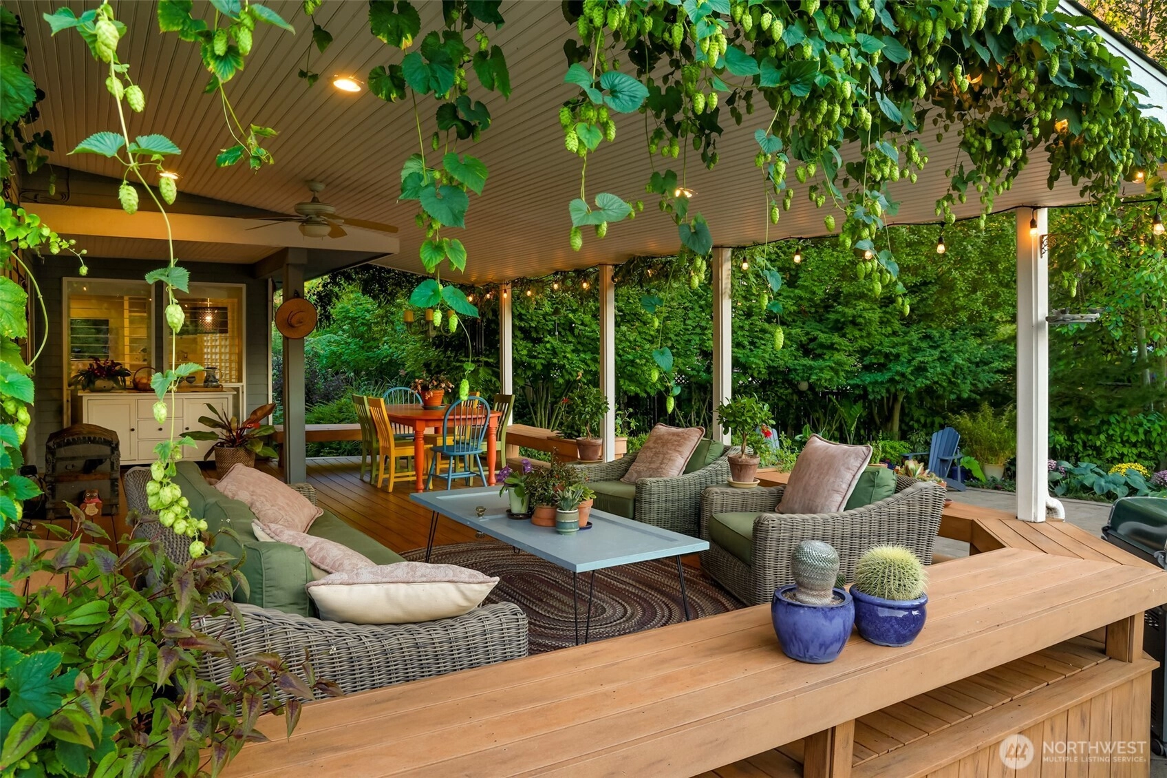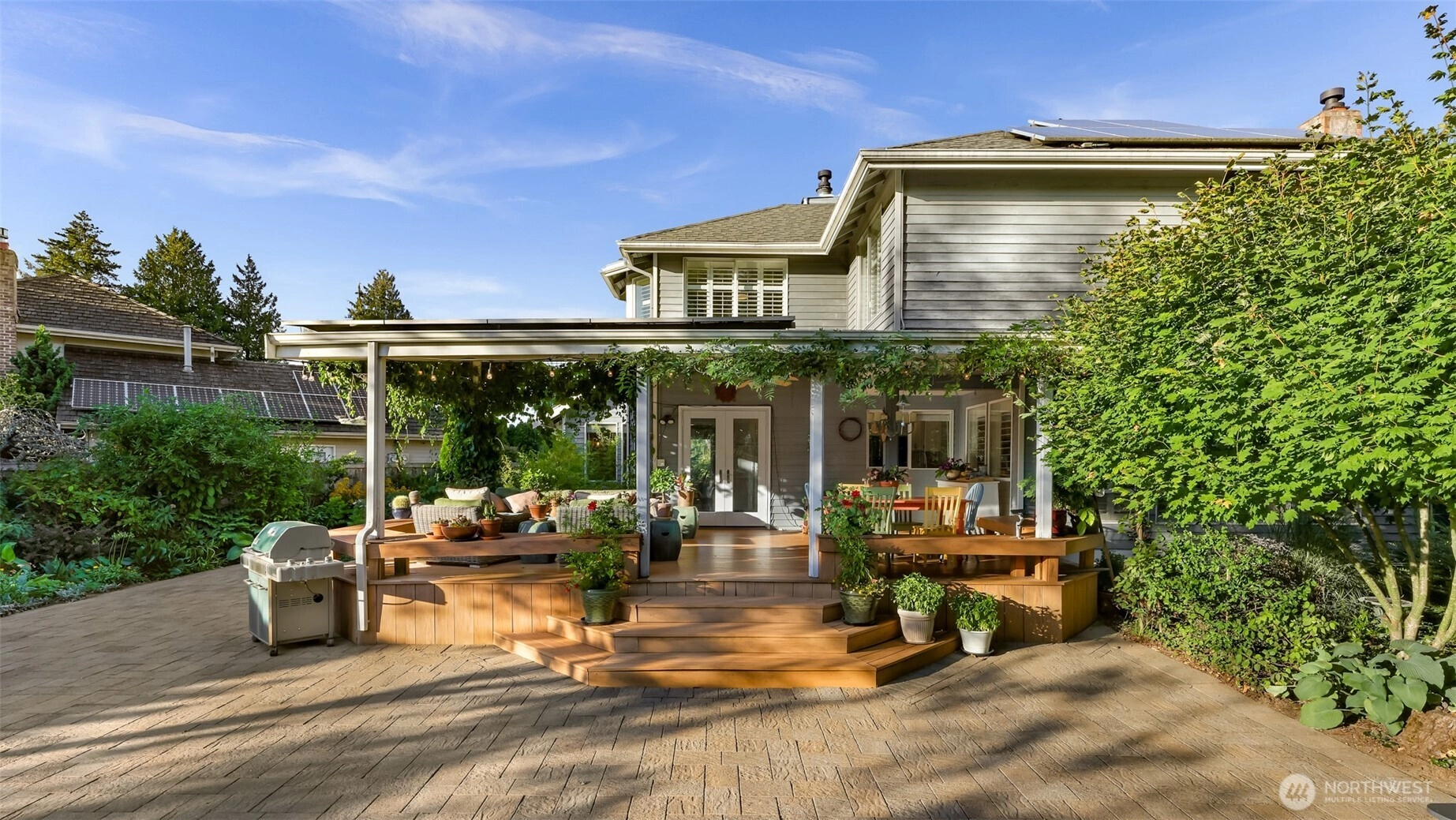 Perfectly nestled in a quiet cul-de-sac in the heart of Edmonds Bowl, this home is designed for both comfort & effortless living. The main floor features 2 inviting living areas w/newer gas fp's, formal dining room, updated hardwoods & a bright kitchen w/a breakfast nook & new appliances. Upstairs,the primary suite boasts a walk-in closet & ¾ bath alongside 2 additional bedrooms & full bath. Step outside to a spacious covered deck w/built-in seating, ideal for year-round entertaining. The fully fenced backyard showcases an expansive wildlife-friendly garden filled w/seasonal blooms, fruit trees & greenery offering a serene retreat & a stunning backdrop for relaxing. Solar panels, new heat pump w/AC & Level 2 EV charger. Don’t miss this one!