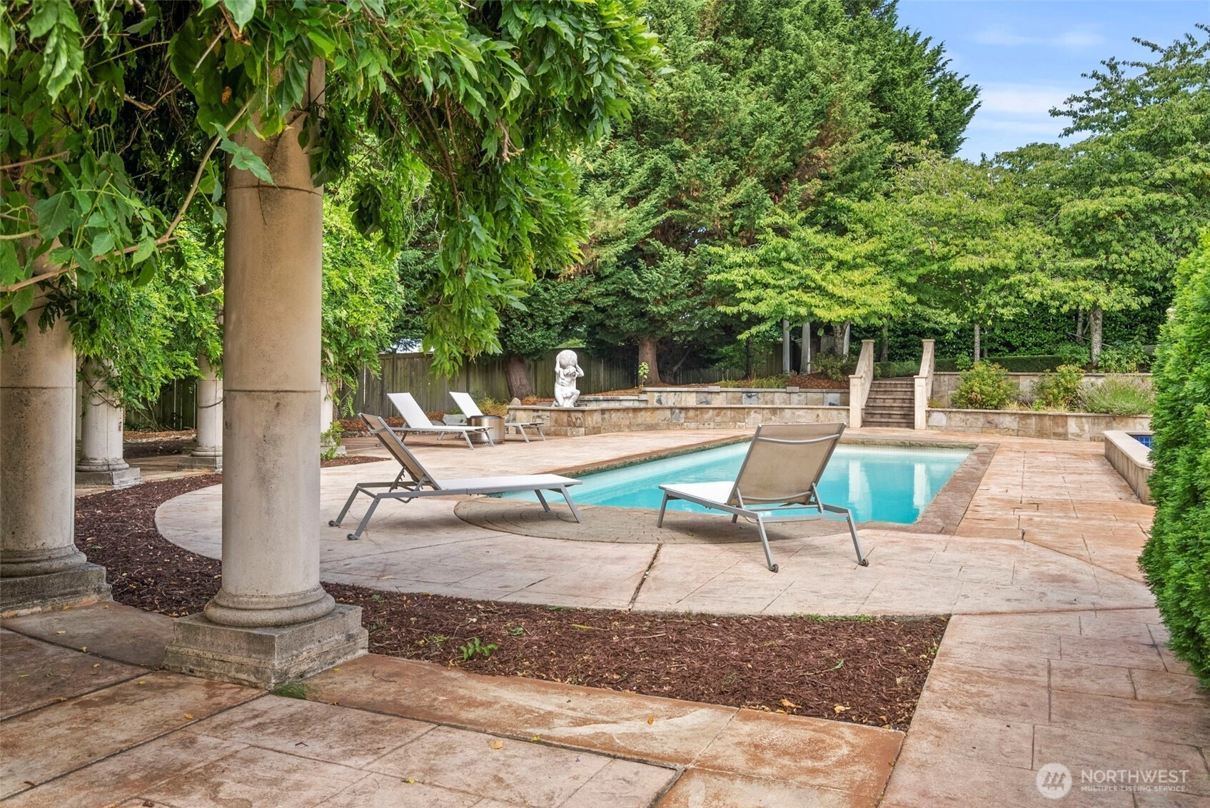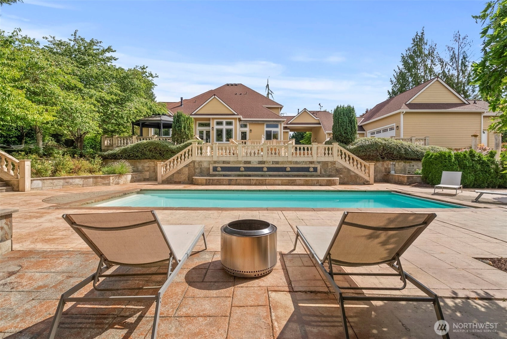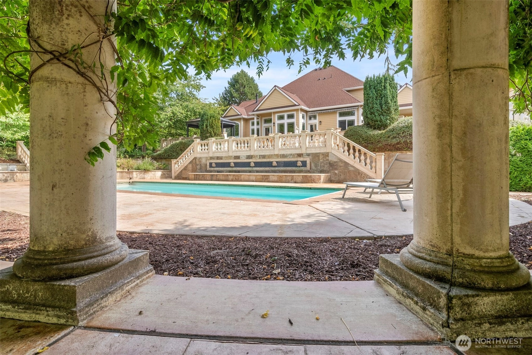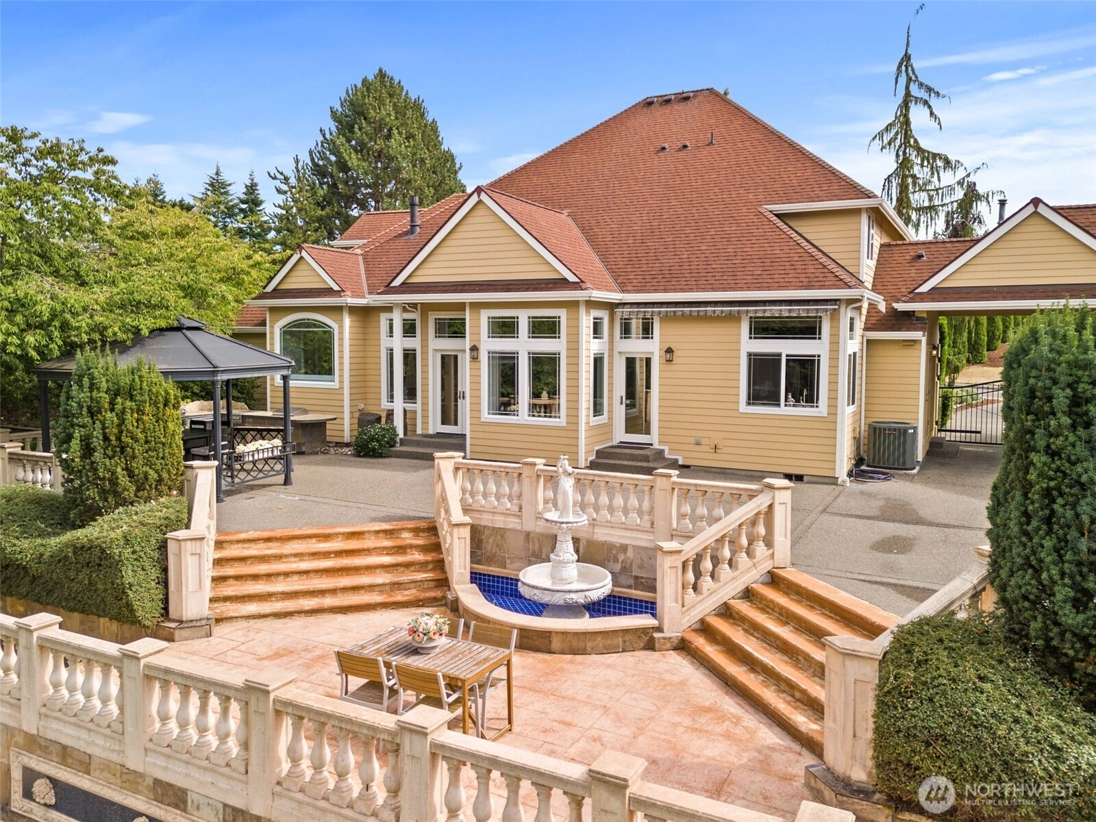 Experience timeless elegance in this French Chateau-Inspired Estate. Step into a world of grandeur where classic European architecture meets modern luxury. This magnificent property is defined by soaring ceilings, rigid roof lines & presidential gardens framed by stately pillars. Entertainers dream w/ outdoor kitchen, heated in-ground pool, hot tub & sprawling terraced courtyard. Inside boasts a sophisticated den, chef’s kitchen w/ wine cellar, primary on main w/ vaulted ceilings & 5-piece BA w/ stunning tile details & walk-in closet. Upstairs, discover a spacious entertainment rm, 2 oversized BRs & shared BA. Complete w/ 2 fireplaces providing warmth & charm throughout this exceptional retreat that feels like the French Countryside.