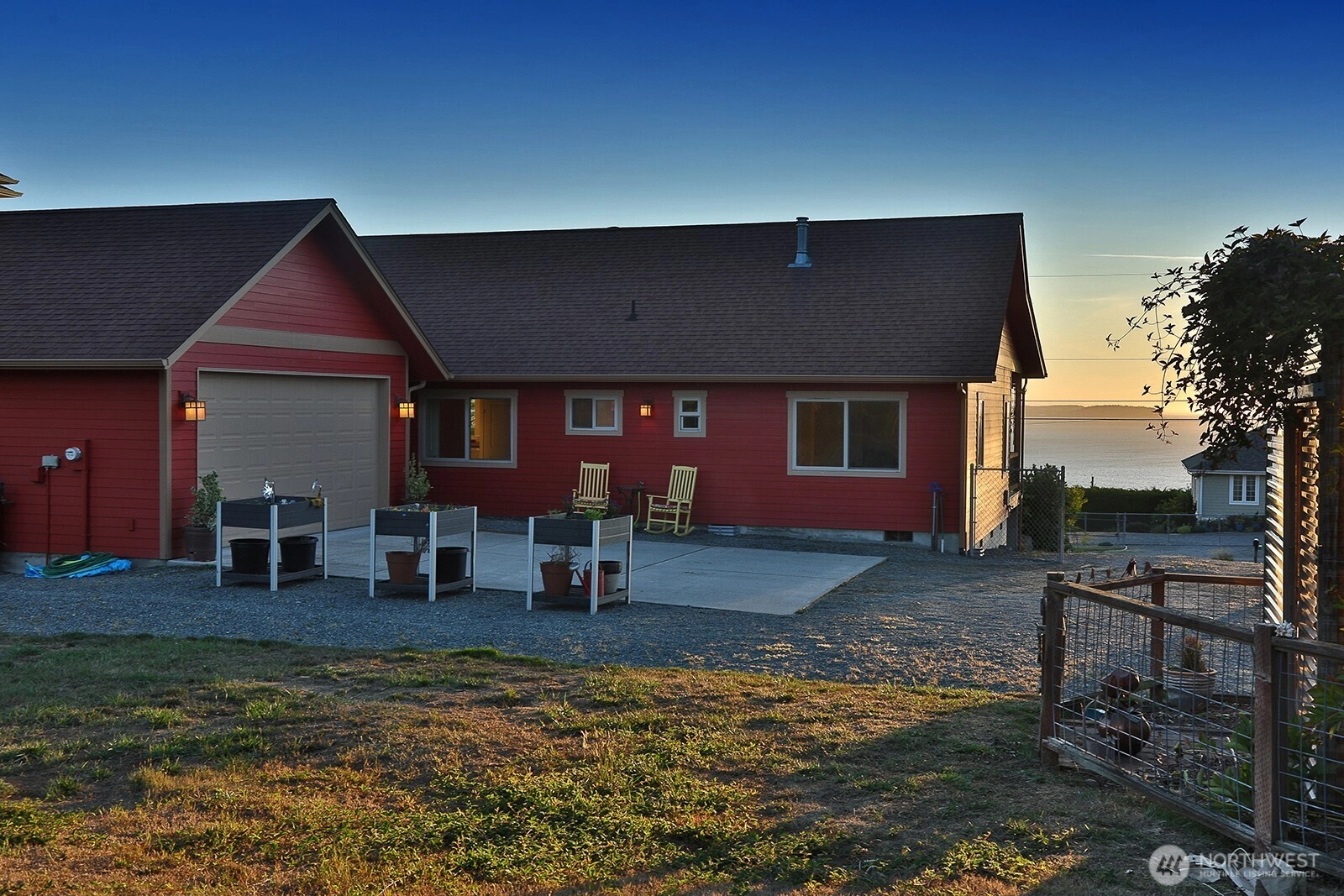 Enjoy an attractive, 2007 build single level home with sweeping westerly mountain and water views! Efficient floorplan of 2 bedrooms, 2 baths (full and .75), an office, laundry room plus open kitchen, living room, and dining areas with vaulted ceiling. Radiant in floor heat and file floors throughout. Propane fireplace with tile surround and built in cabinets. Laminate counters and alder wood cabinets, tile bath surround and shower. Wonderful large 464sq' covered front porch, perfect for dining and relaxing. All on a generous 0.34± acre lot with fenced rear yard, raised beds and garden area. Detached garage with covered breezeway to house. Wide angle west views. Beach access and parking, community picnic area, clubhouse, sports court. WOW!