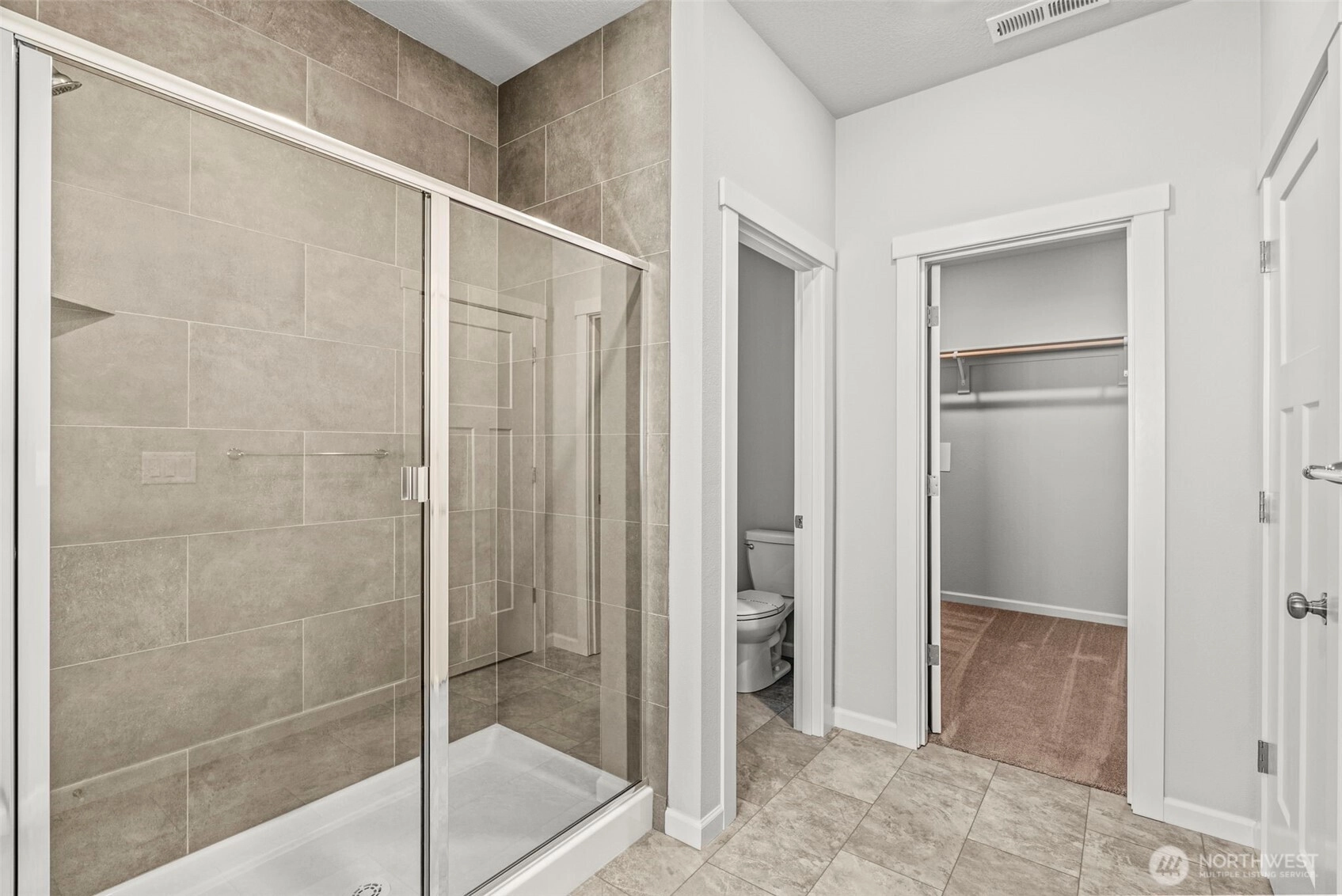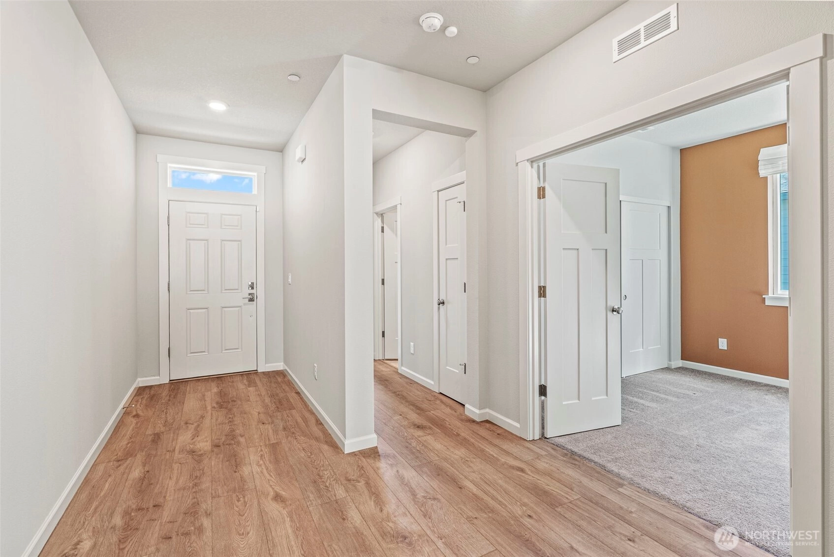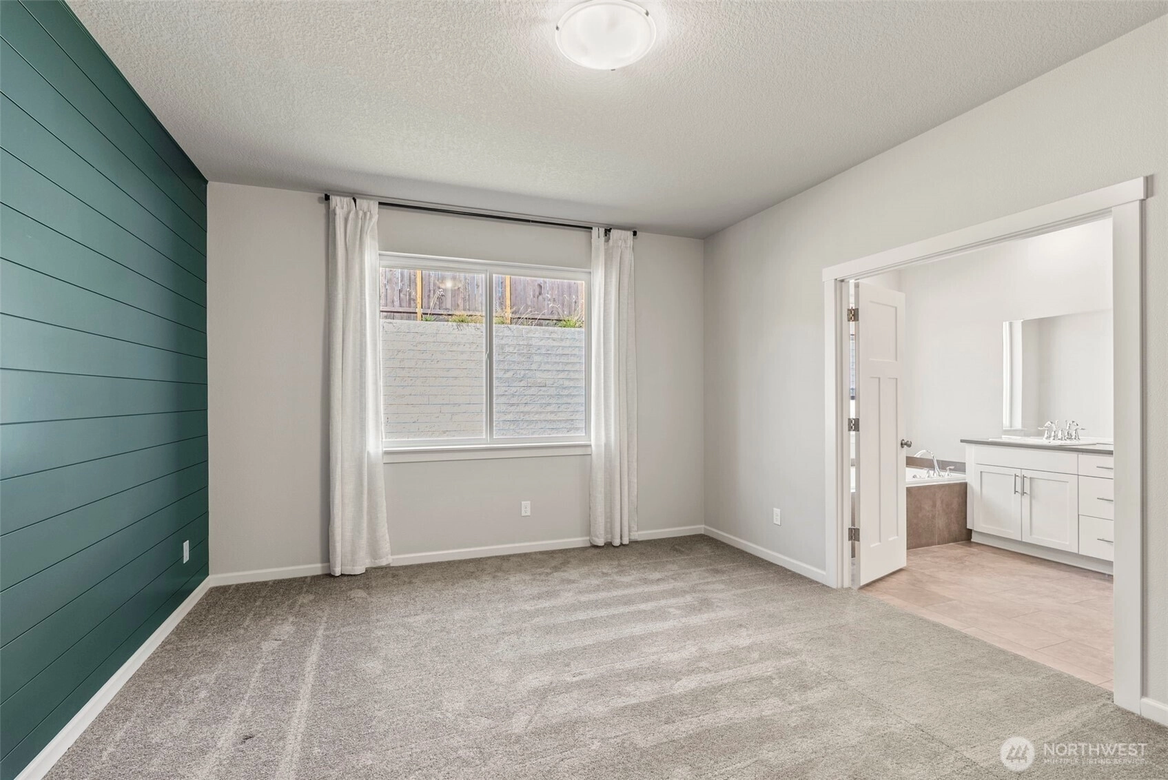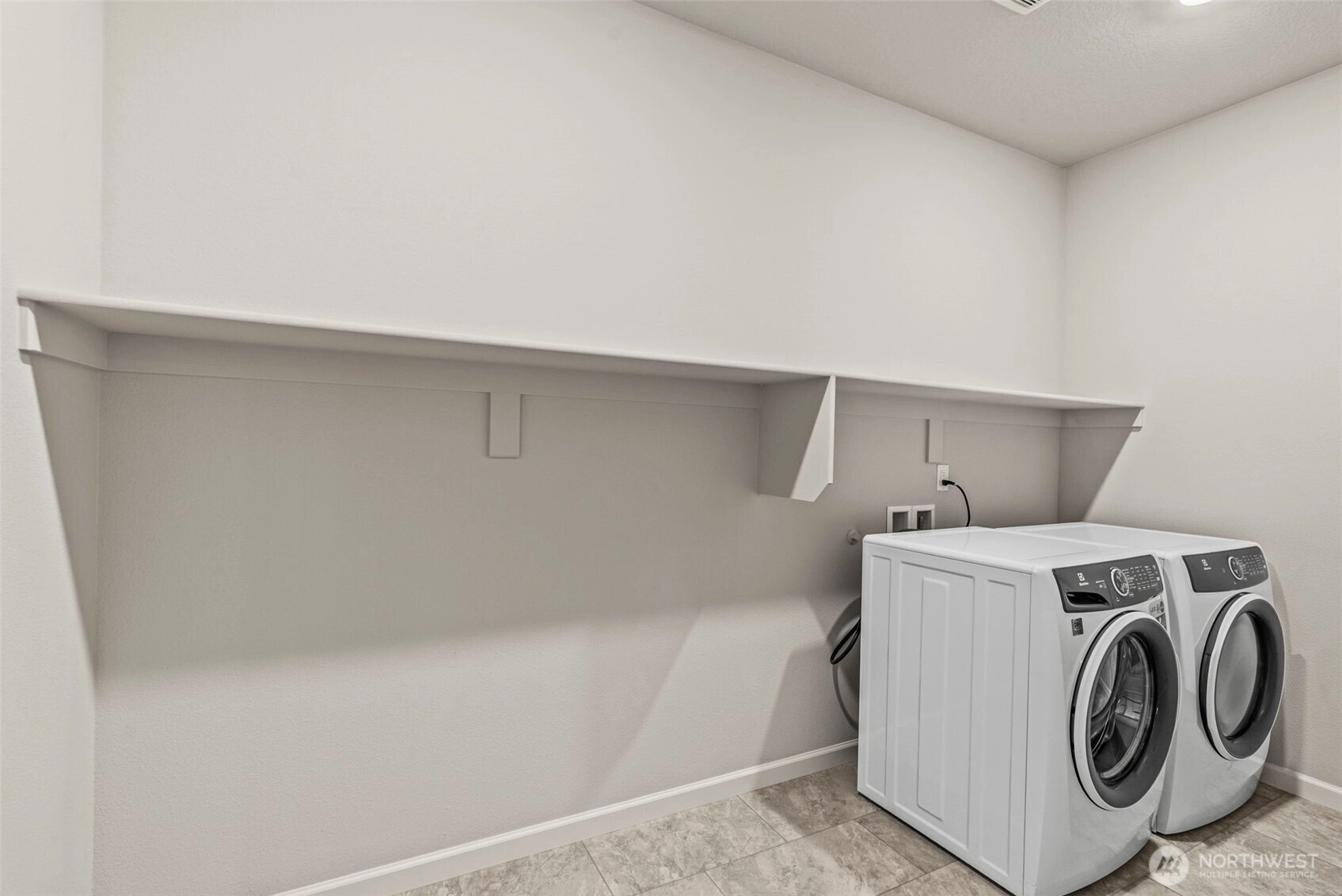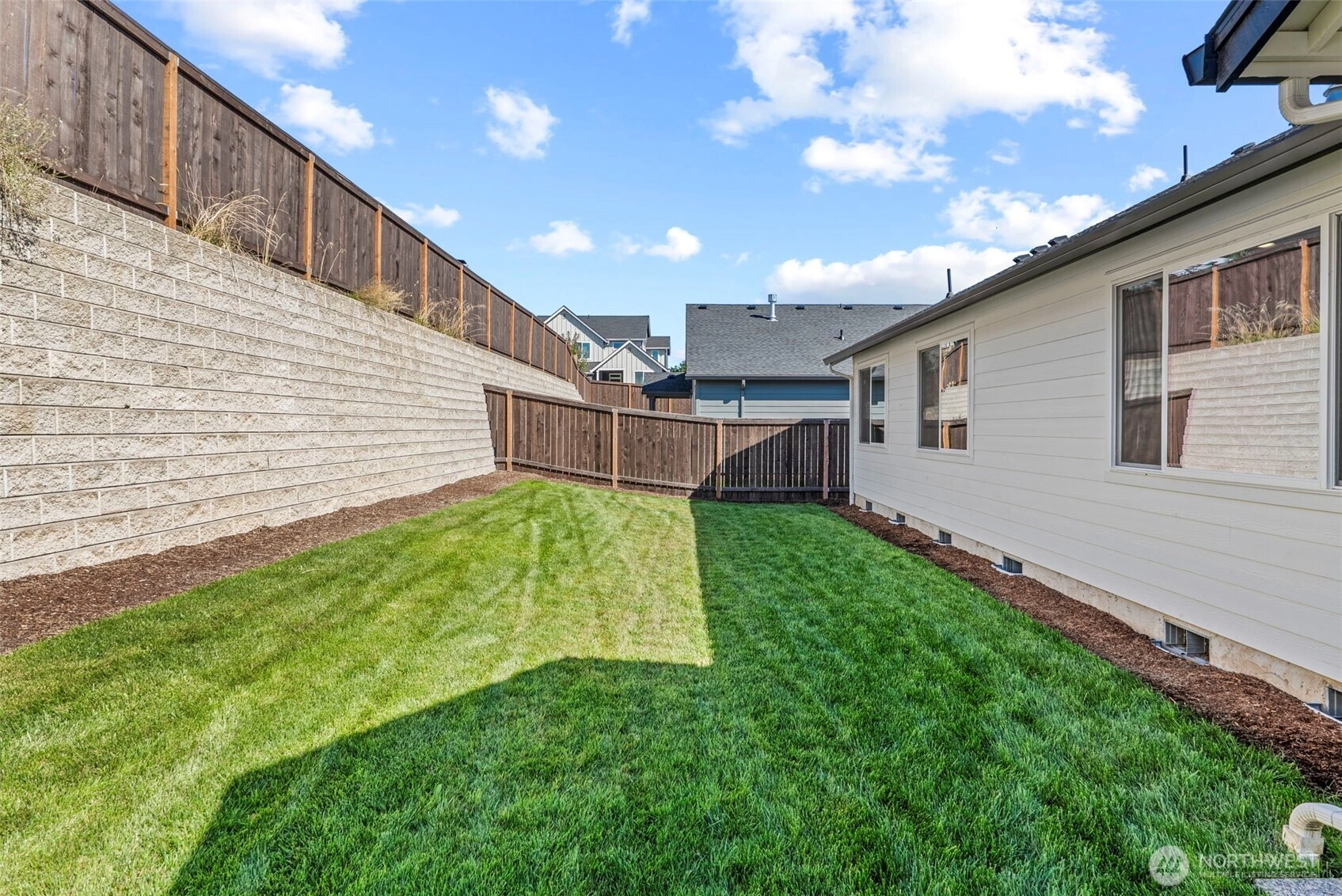 Stunning one-level model home w/spacious 3 bay garage with opener, ample lighting, and room for your toys!Step into the tall foyer graced with/wide hallways that lead to double door bedroom#2, a full bathroom with quartz counters, and bedroom #3 up front with a sunny southern-facing window. Modern quartz kitchen with stainless steel appliances (including the refrigerator), gas cooktop, and built-in convection oven, overlooks spacious Great Room with gas fireplace, custom paint, and wall decor. Just around the corner is the lavish primary suite with a gorgeous bathroom, tiled shower, tiled soaking tub, and walk-in closet with wood shelving. Professionally installed ship lap, brand new washer/dryer. The home has never been lived in.