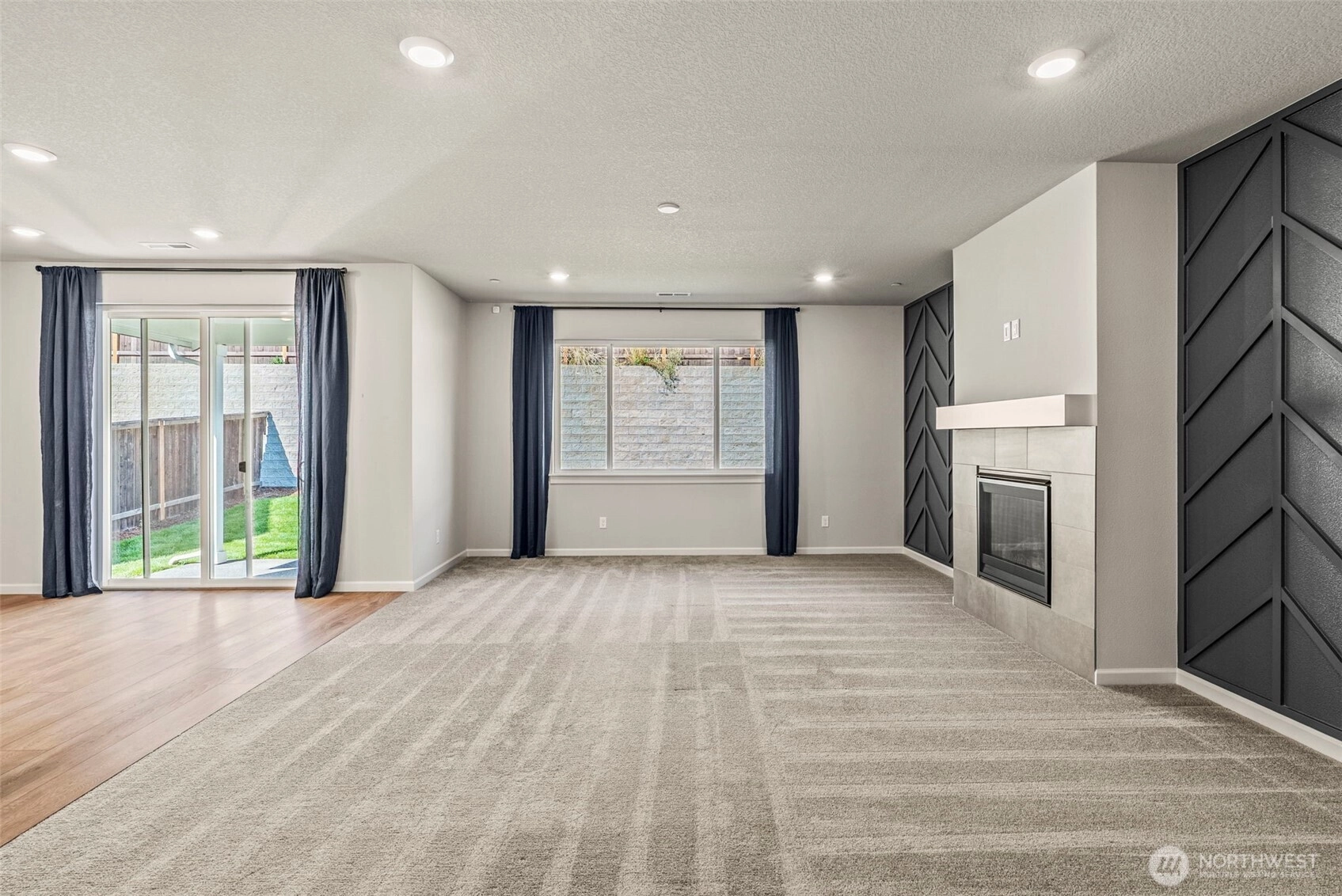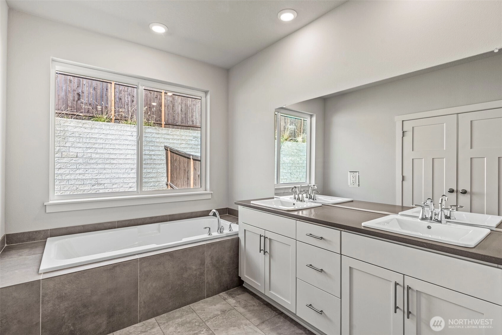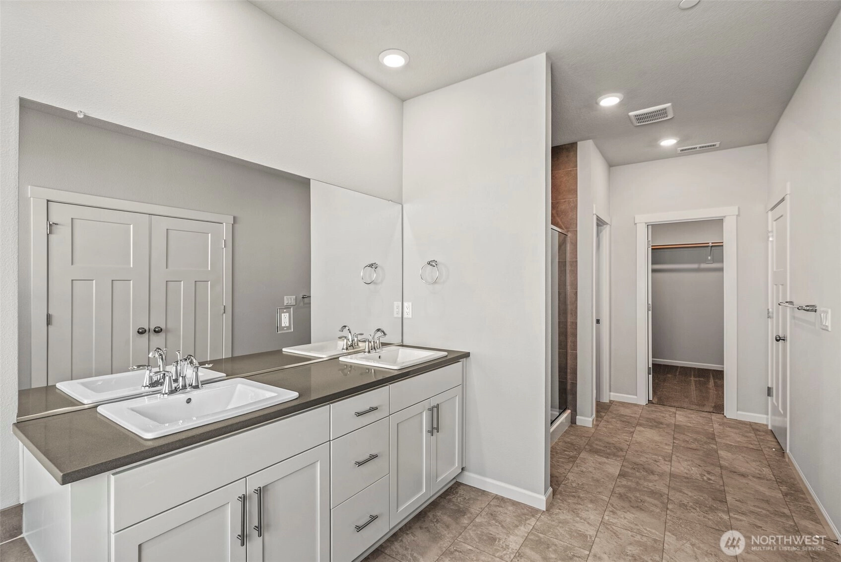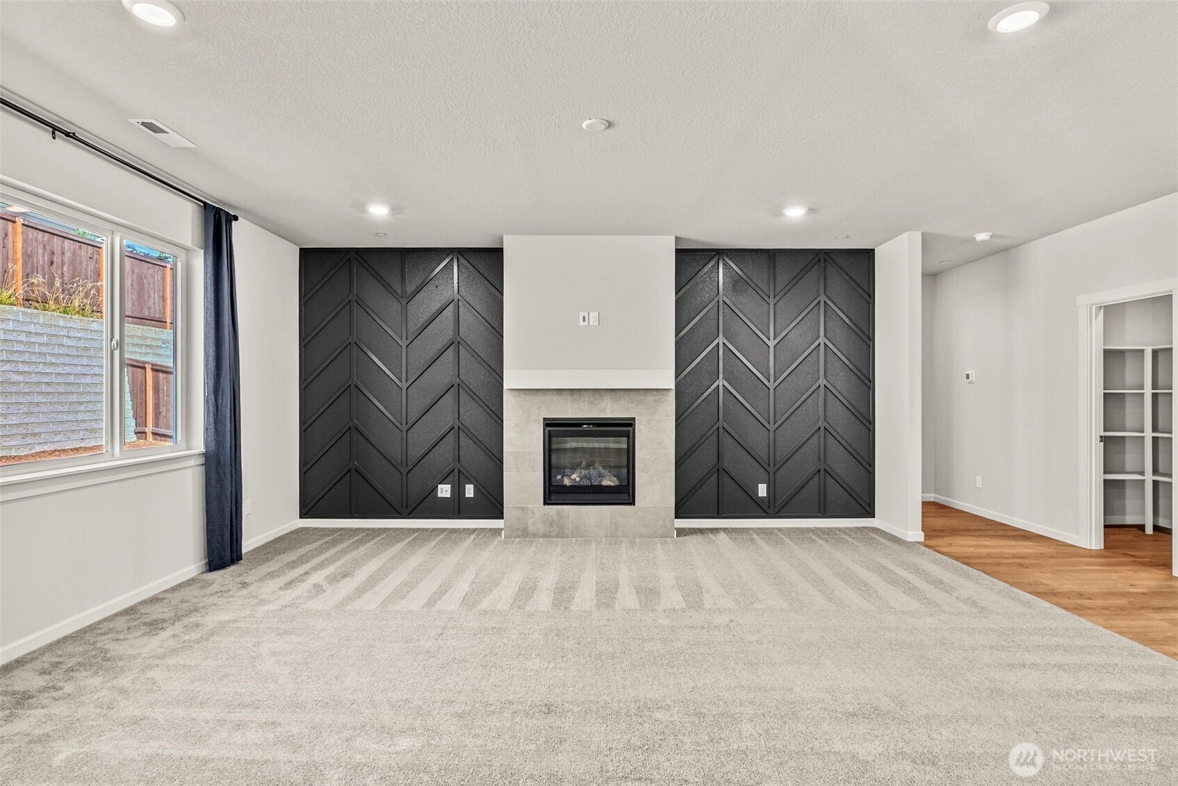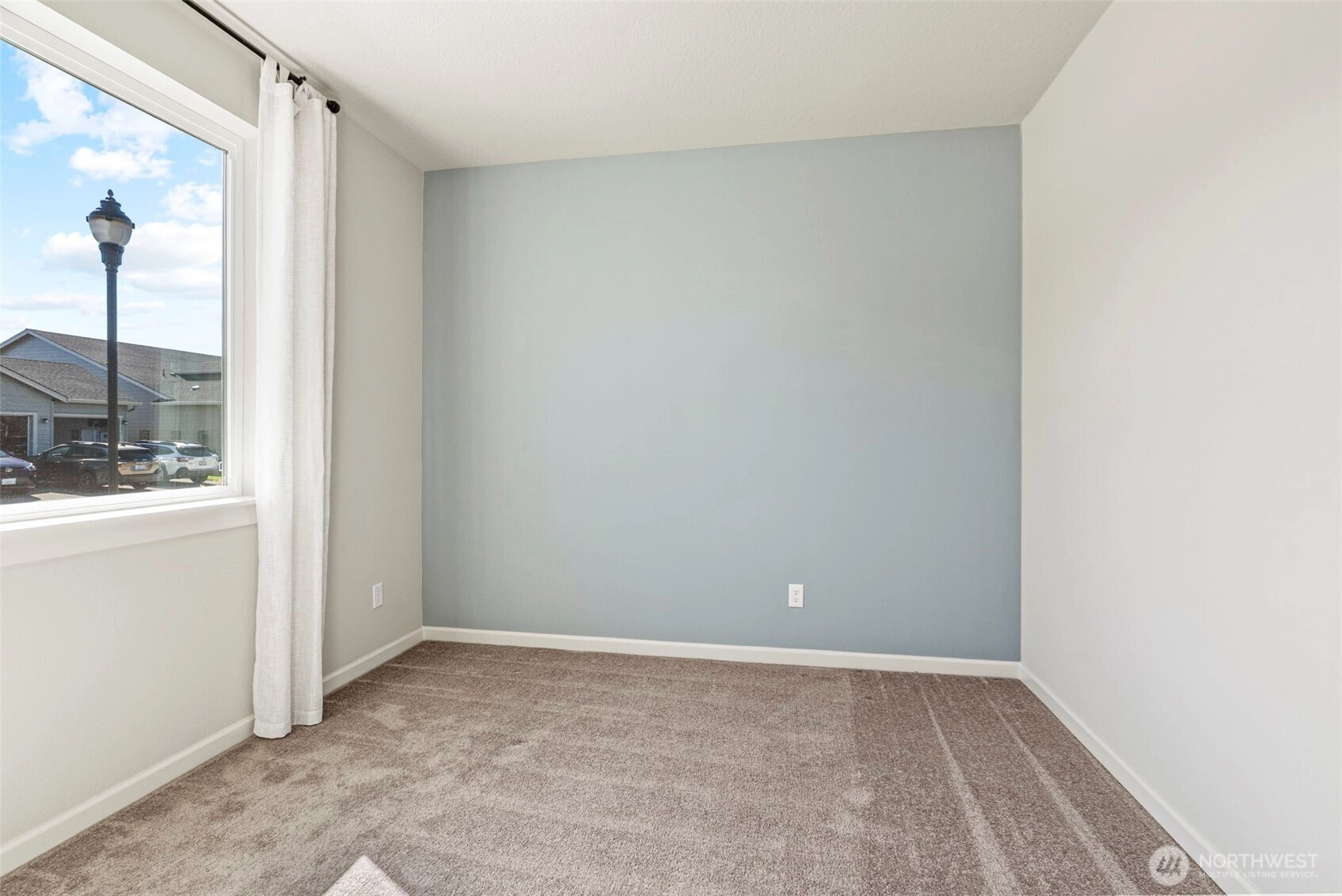 Stunning one-level model home w/spacious 3 bay garage with opener, ample lighting, and room for your toys!Step into the tall foyer graced with/wide hallways that lead to double door bedroom#2, a full bathroom with quartz counters, and bedroom #3 up front with a sunny southern-facing window. Modern quartz kitchen with stainless steel appliances (including the refrigerator), gas cooktop, and built-in convection oven, overlooks spacious Great Room with gas fireplace, custom paint, and wall decor. Just around the corner is the lavish primary suite with a gorgeous bathroom, tiled shower, tiled soaking tub, and walk-in closet with wood shelving. Professionally installed ship lap, brand new washer/dryer. The home has never been lived in.