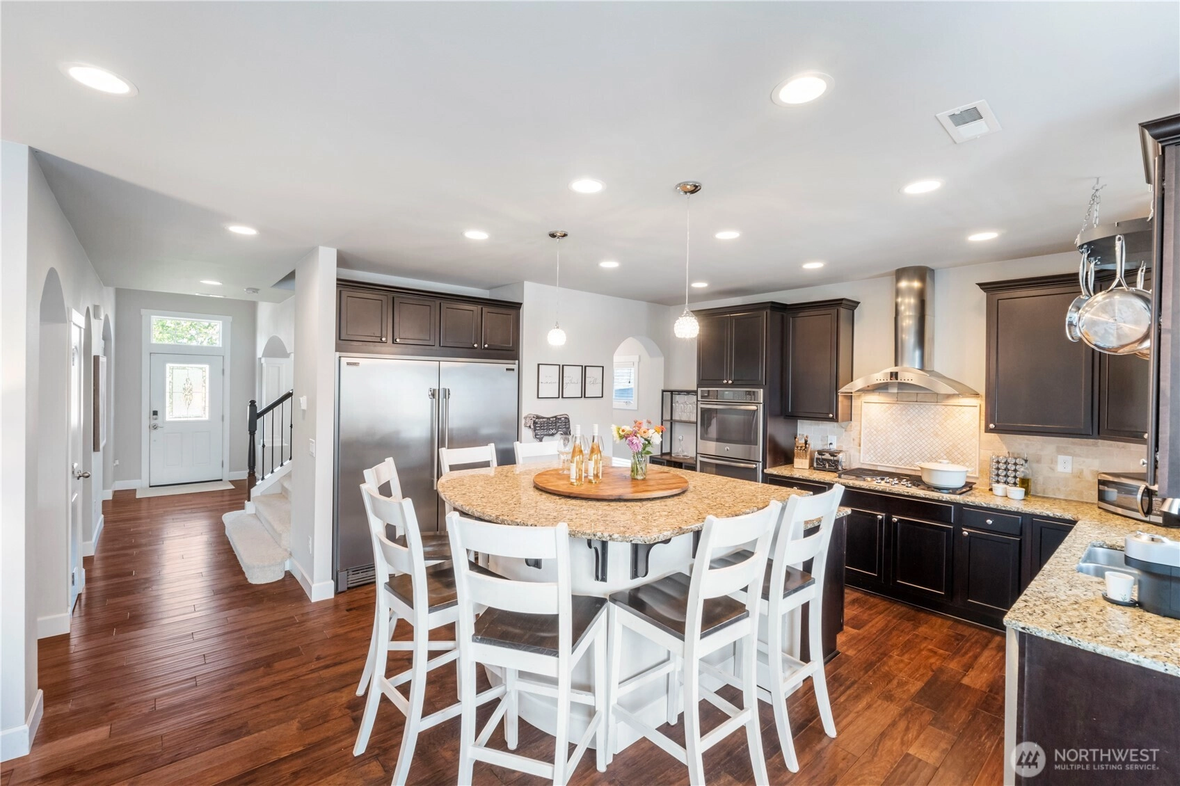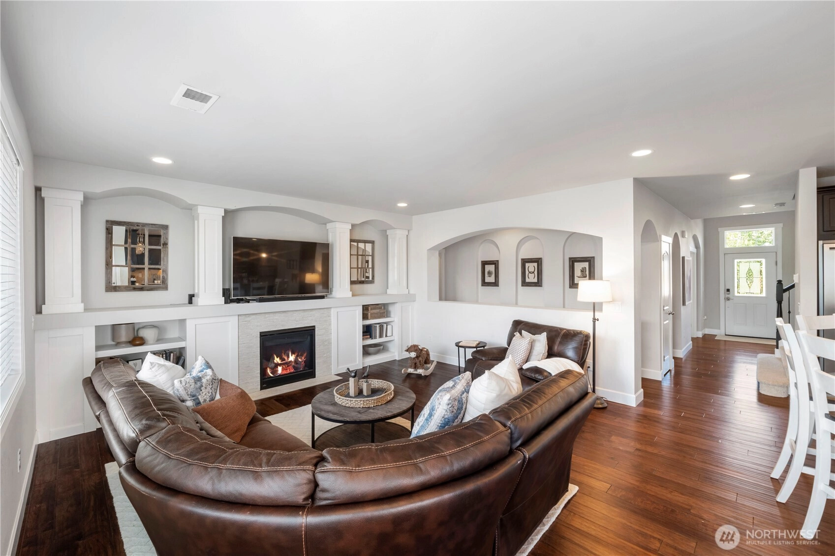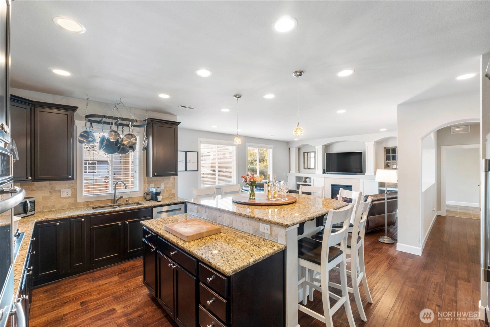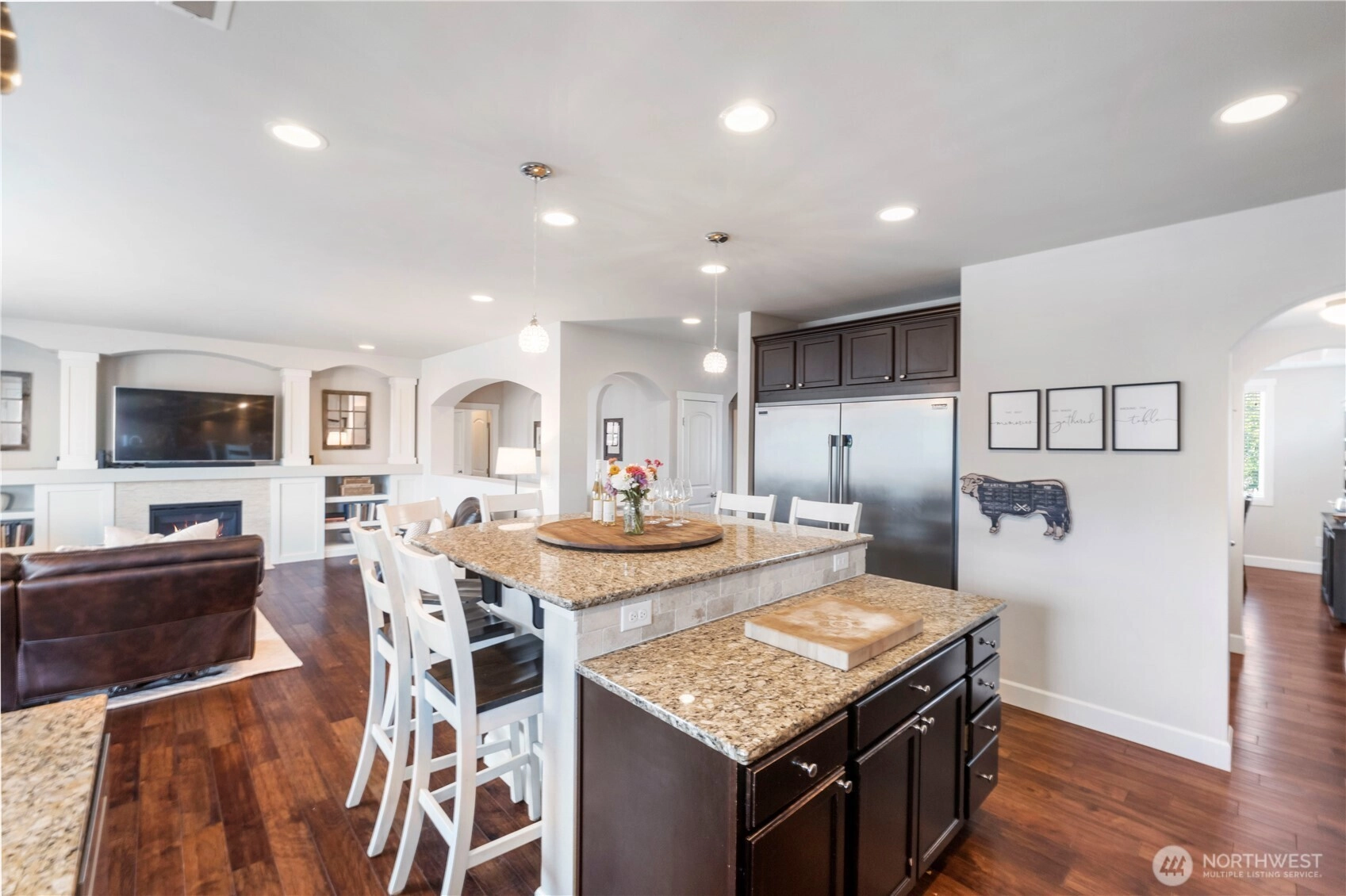 Stunning 4 bedroom 3 bath home in the highly sought-after Puyallup Highlands! Step inside to soaring natural light, custom millwork, arched entryways, and craftsman built-ins framing a modern gas fireplace. The open floor plan centers around a jaw-dropping chef’s kitchen featuring quartz countertops, shaker cabinets, custom oversized island, and professional-grade double fridge/freezer. A private office/optional 5th bedroom completes the main floor. Upstairs, retreat to a luxurious master suite w/ sitting area, spa-like 5-piece bath, walk-in closet & private covered balcony. Three more bedrooms, full bath and massive bonus room provide space for everyone. Enjoy a fully fenced, professionally landscaped backyard—perfect for entertaining!