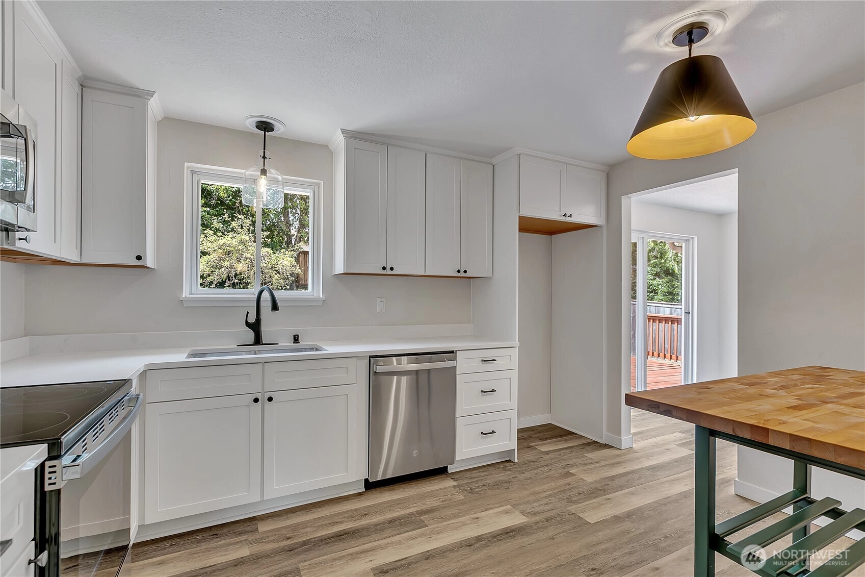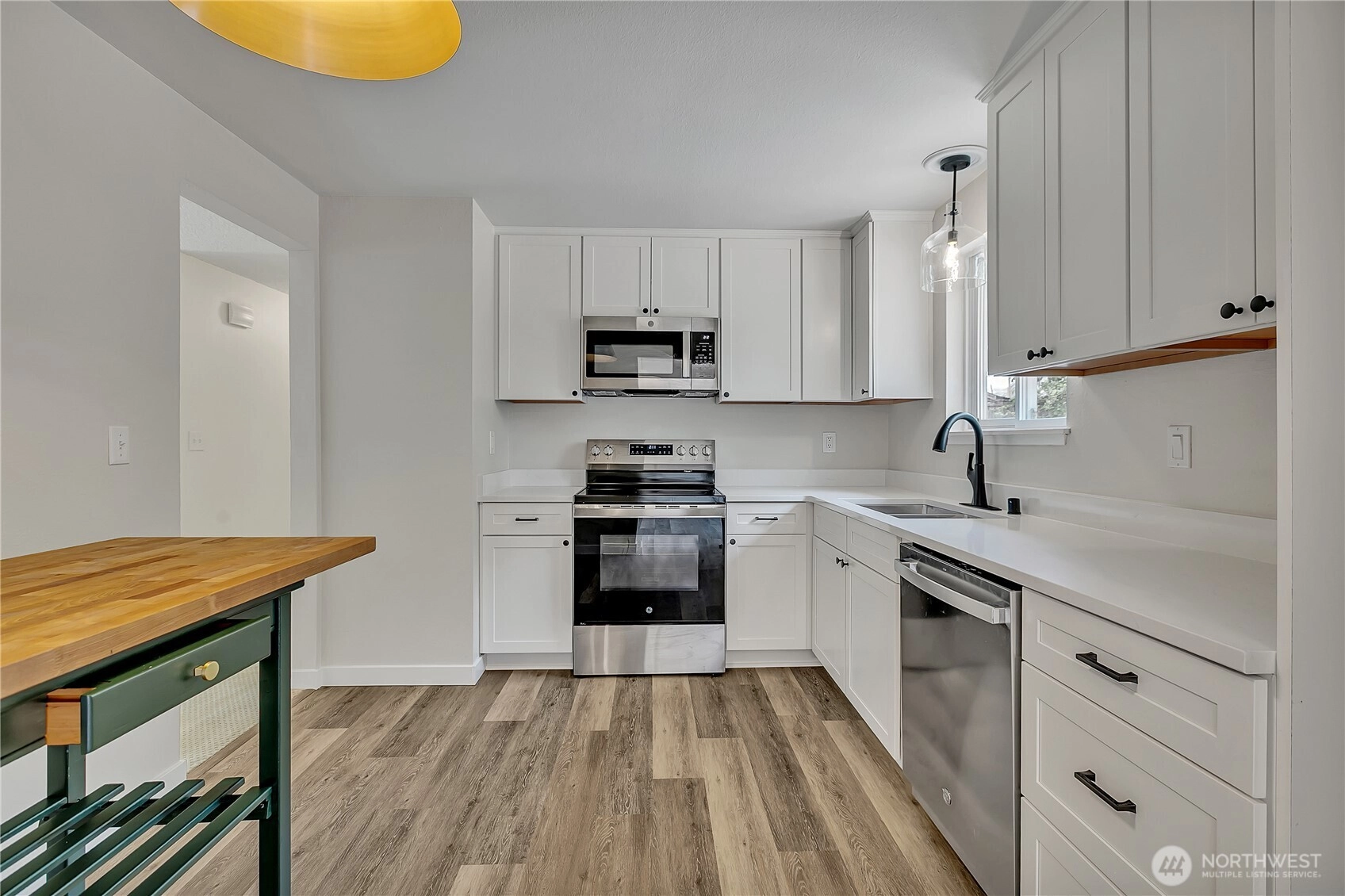 Turnkey, stylish, and tucked away—this updated 4BD/1.75BA home sits at the end of a quiet cul-de-sac in Steilacoom. Enjoy 1,674 SF of living space w/ new LVP and carpet, fully updated kitchen, refreshed baths, new paint in/out, new lighting, mini-split A/C, and matching hardware throughout. Relax or entertain on the spacious deck just off the main living area. Attached 2-car garage adds convenience. Less than 900’ to Steilacoom High and just a 22-min walk to Sunnyside Beach Park. No HOA. All the work is done—just move in and enjoy!