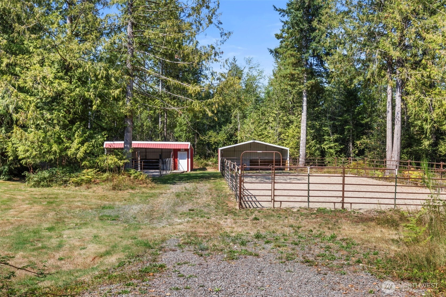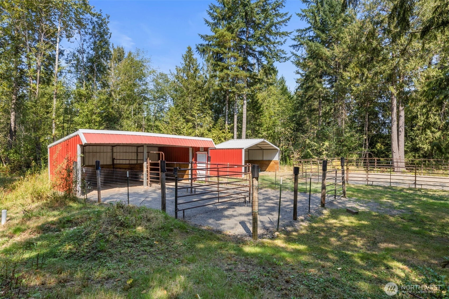 Country living at its finest! Beautiful custom built 4-bedroom home on 2.08 acres. This equestrian property is located on a private lot with a gated entry, horse stalls, tack room and arena. Enjoy summer nights on the back patio with the built-in fire pit and manicured park like setting. Open concept home has a spacious living area with tons of natural light, wall mounted electric fireplace and floating mantle. Modern kitchen with quartz counters, stainless steel appliances and farmhouse sink. Main floor bedroom, 1/2 bath and large mudroom. Upstairs primary suite with walk-in shower and spacious closet, plus 2 additional bedrooms and full bath. This home has it all with low maintenance metal roof, private well, RV parking and much more!
