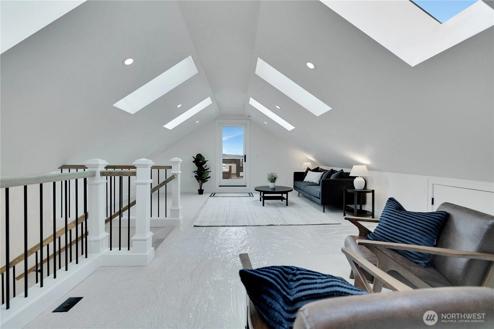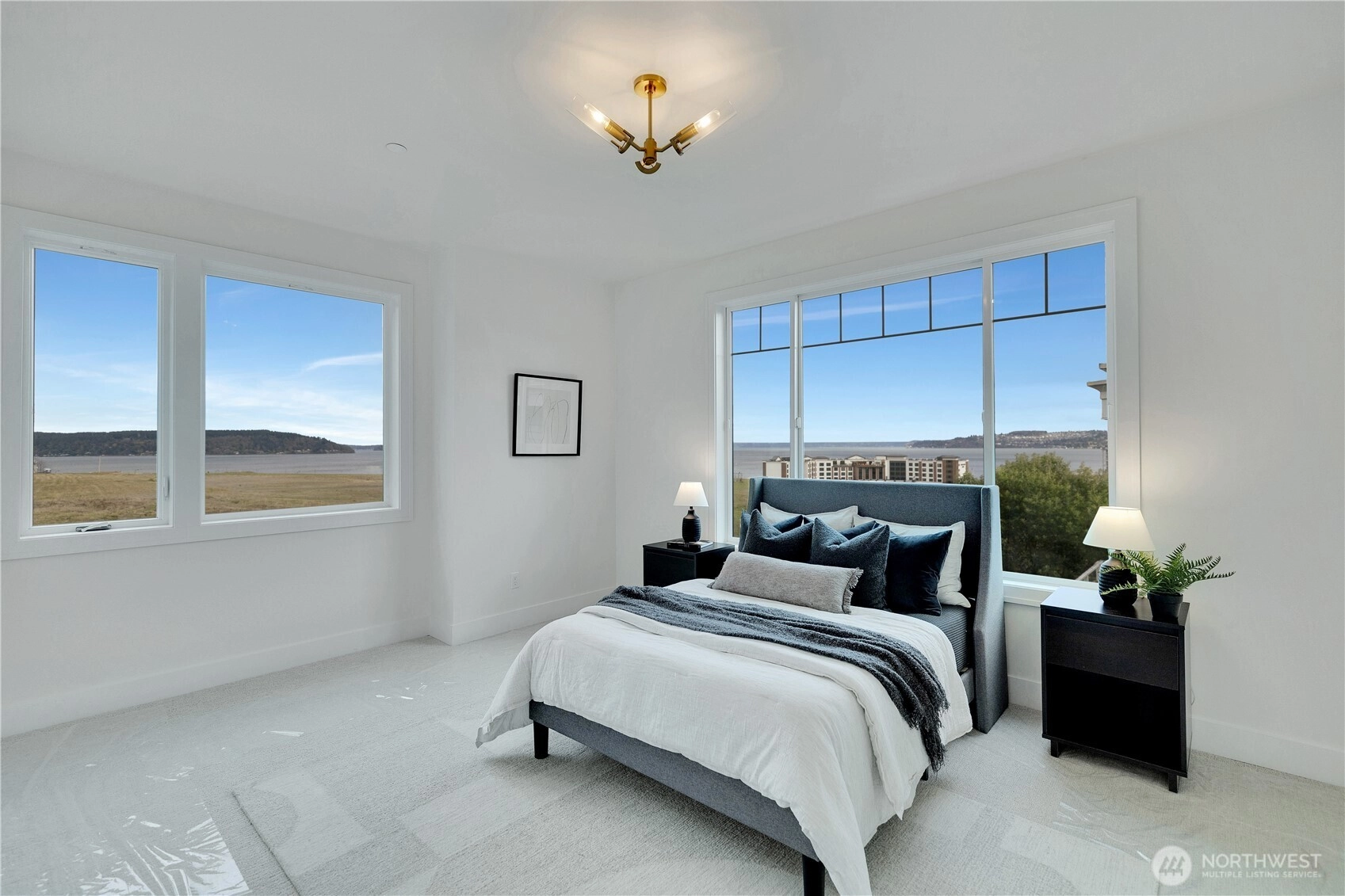 Experience the PINNACLE of Modern Living in these Stunning NEW TOWNHOMES! Each offers designer finishes, a spacious OPEN FLOORPLAN, mult. patios/decks providing panoramic PNW VIEWS. Enjoy low-maint. townhome ownership w/out the hassle of HOA fee! 1st flr feat. convenient front entry, 2 bedrms, office, full bath, garage w EV port & eastward patio. 2nd flr boasts open-concept kitchen, dining area, pantry, powder bath & a lg living room w deck overlooking the sound. The LUX PRIMARY SUITE offers dressing room, full bath & dual vanity. Ascend to the 3rd & final flr & discover versatile bonus room leading out to a huge OPEN AIR SKYDECK, prime for social gatherings. Buyer could install Elevator at later date. Pls inquire w/Listing agent.