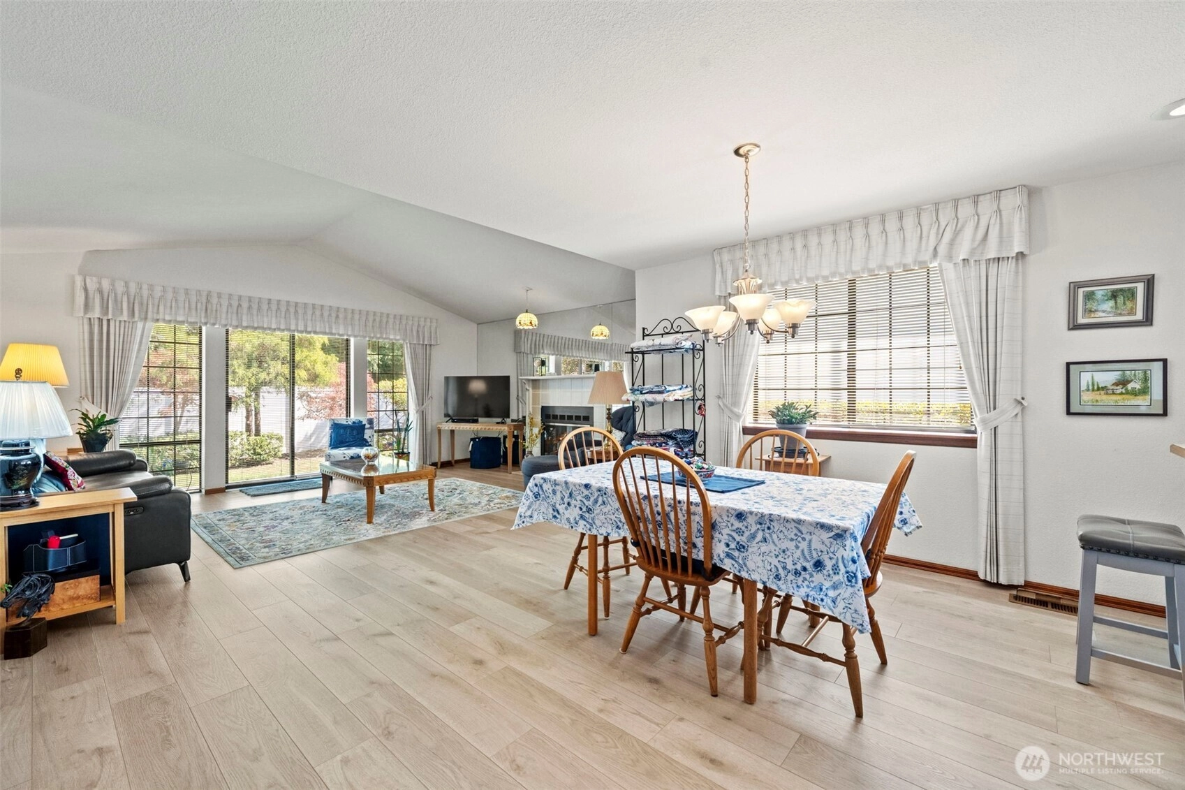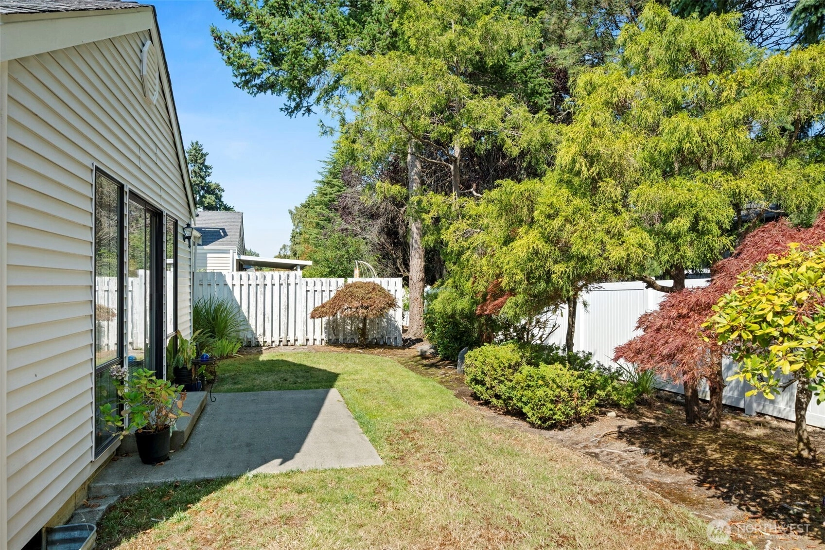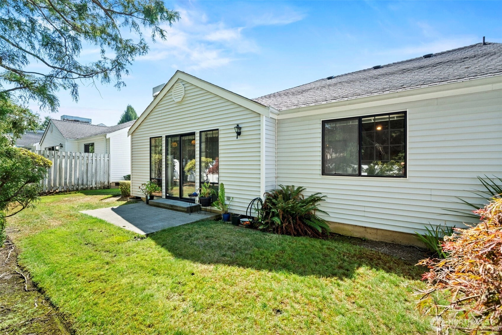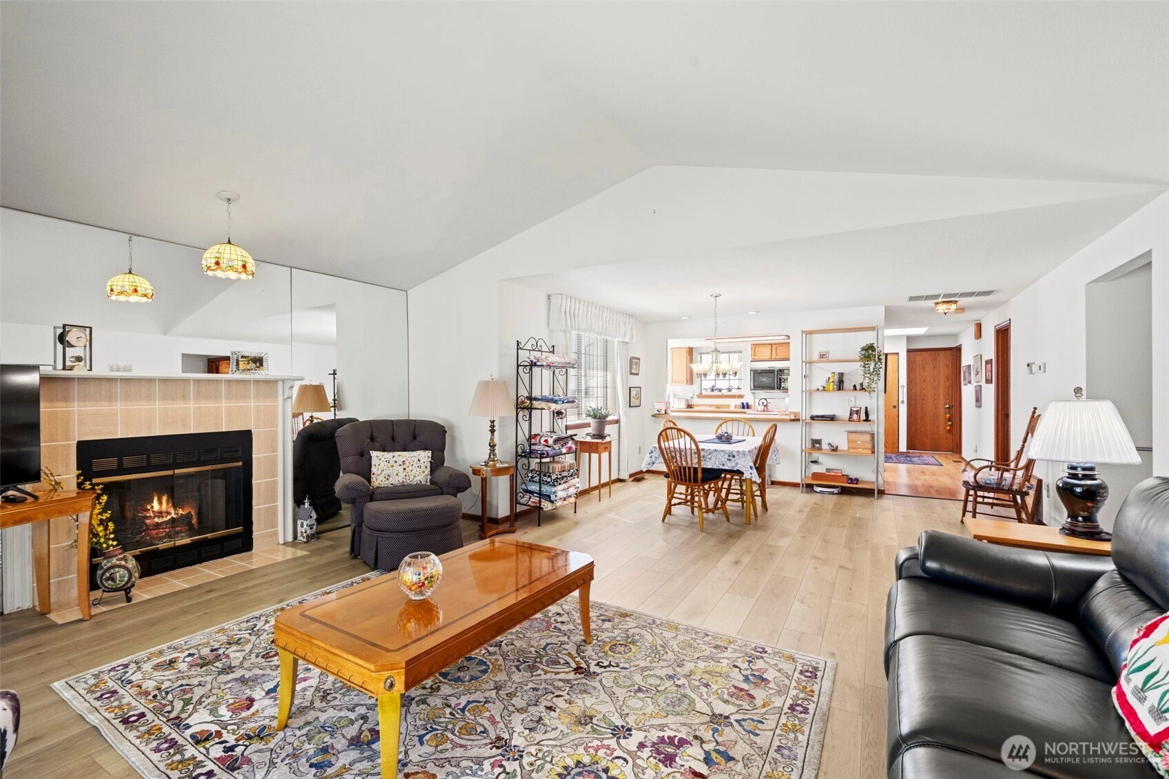 Highly sought after one-level in quiet 55+ community, Narrows Reach. Skylight and hardwoods in entry & kitchen. Open floor plan with vaulted ceiling in formal living/dining room/kitchen, Great for entertaining. Wood burning fireplace. Generous Primary w/ en suite bath & walk in closet. Guest bath with jetted soaking tub. Sliding doors off living, dining rooms to private fenced backyard with patio. Yard is beautifully maintained by HOA. Attached 2 car garage and additional parking in driveway for visitors. Community clubhouse can be reserved for parties. Close to freeway, Westgate retail & Point Defiance Park. Nicely updated with many new finishes. This condo is just waiting for you to call it Home!