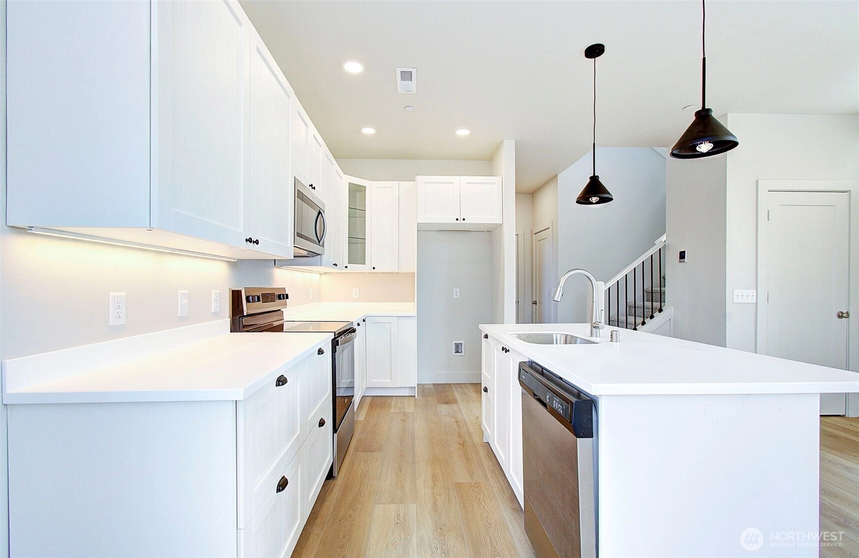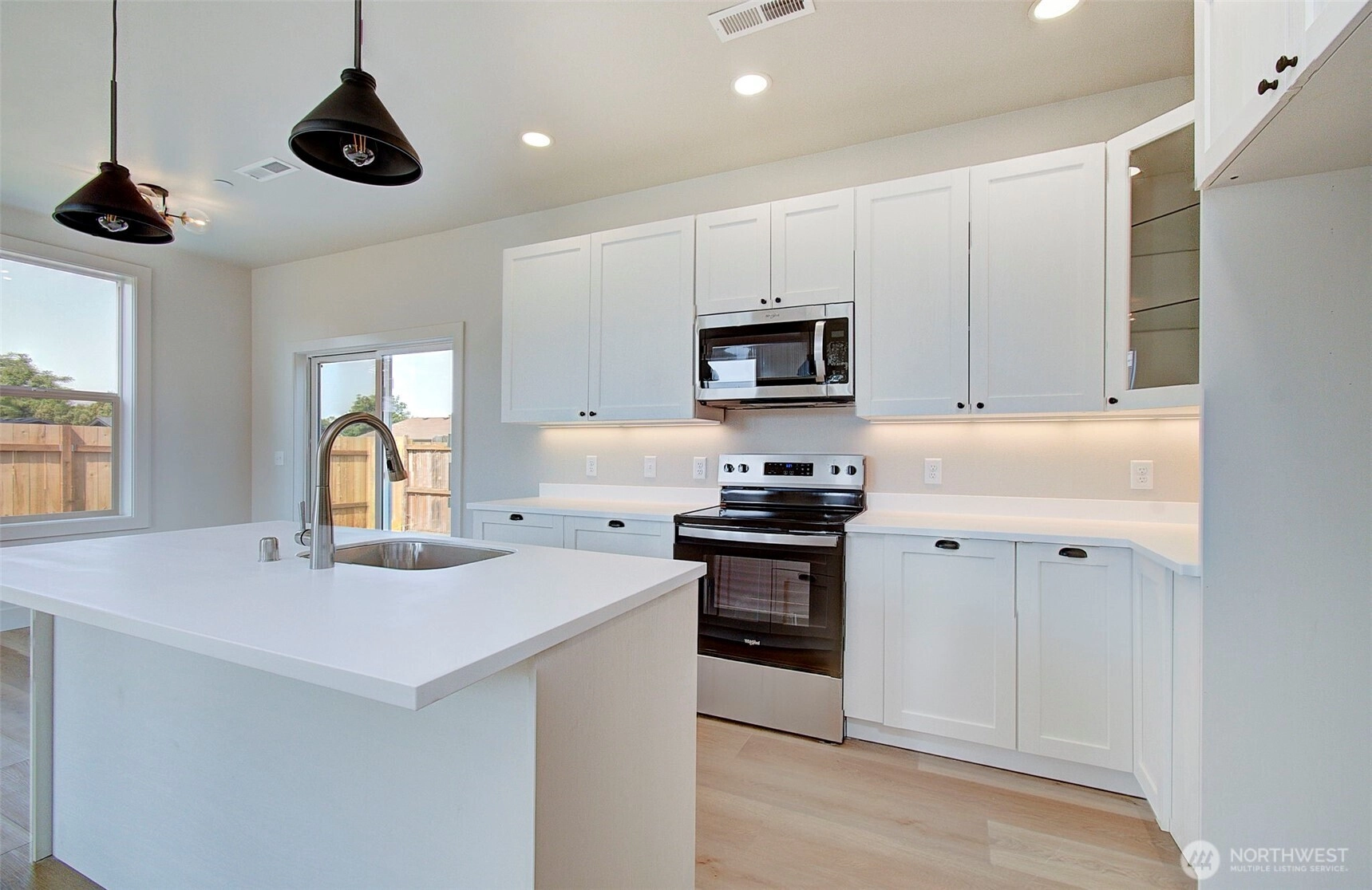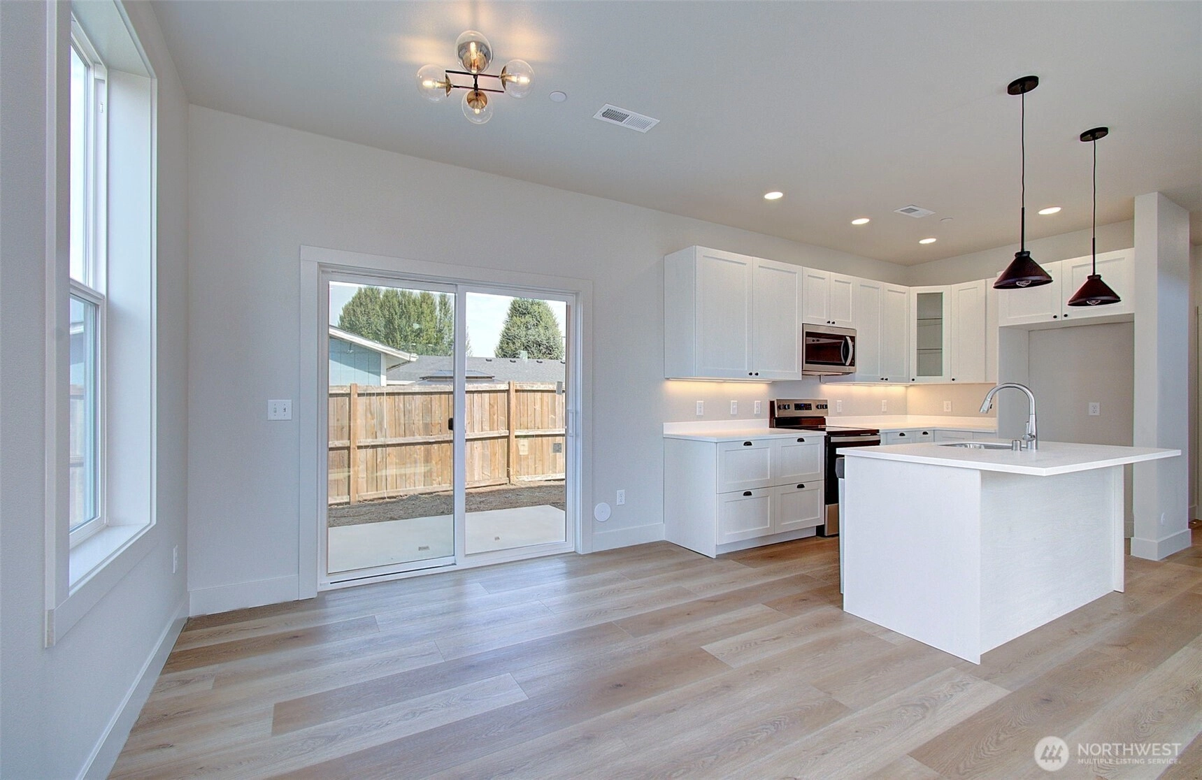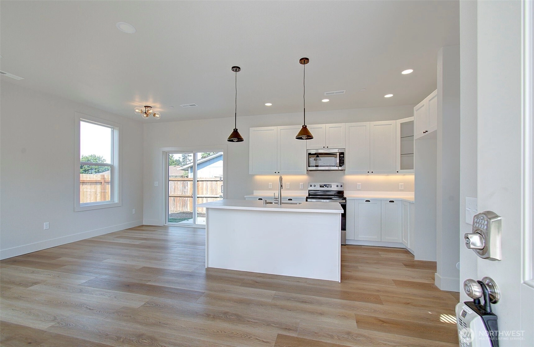 Discover this newly built 2-story home tucked away at the end of a long shared drive, offering the perfect mix of relaxation and modern living. With 3 bedrooms and 2.5 bathrooms, this thoughtfully designed home features an open-concept layout, farmhouse-inspired finishes, and a warm, inviting feel throughout. On the main level, enjoy durable laminate flooring, upgraded lighting, and a spacious great room that seamlessly connects to the kitchen—complete with sleek stainless steel appliances and plenty of space to entertain. Step outside to the back patio, ideal for summer barbecues or your morning coffee retreat. Upstairs, all bedrooms are generously sized, including a comfortable primary suite and well-designed bathrooms.