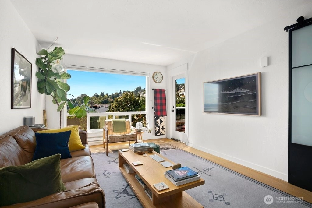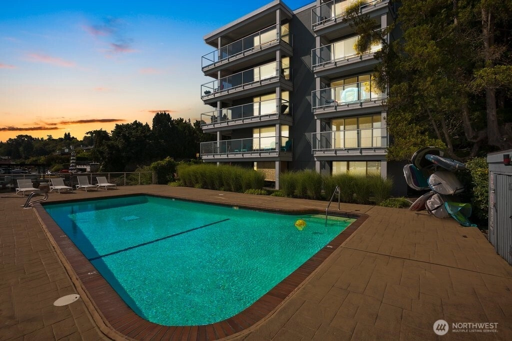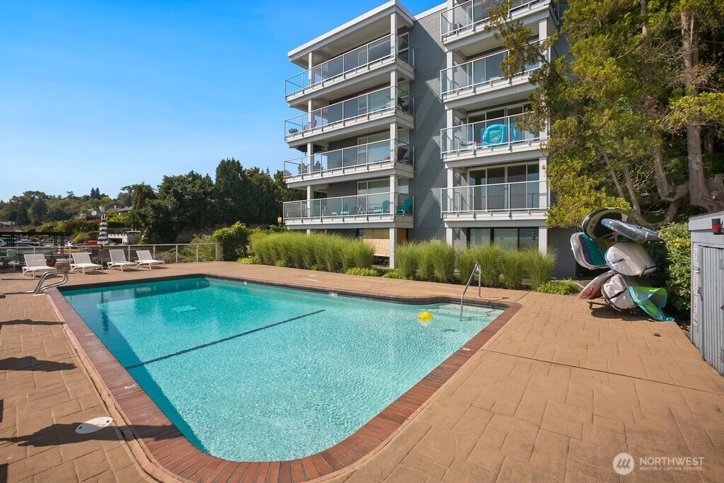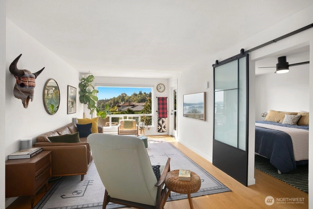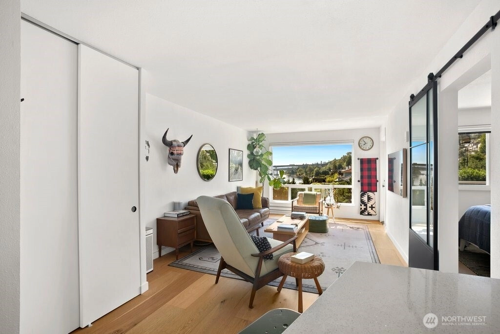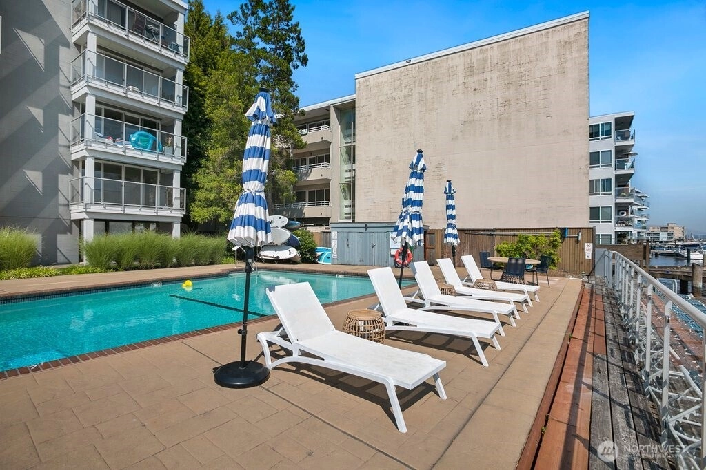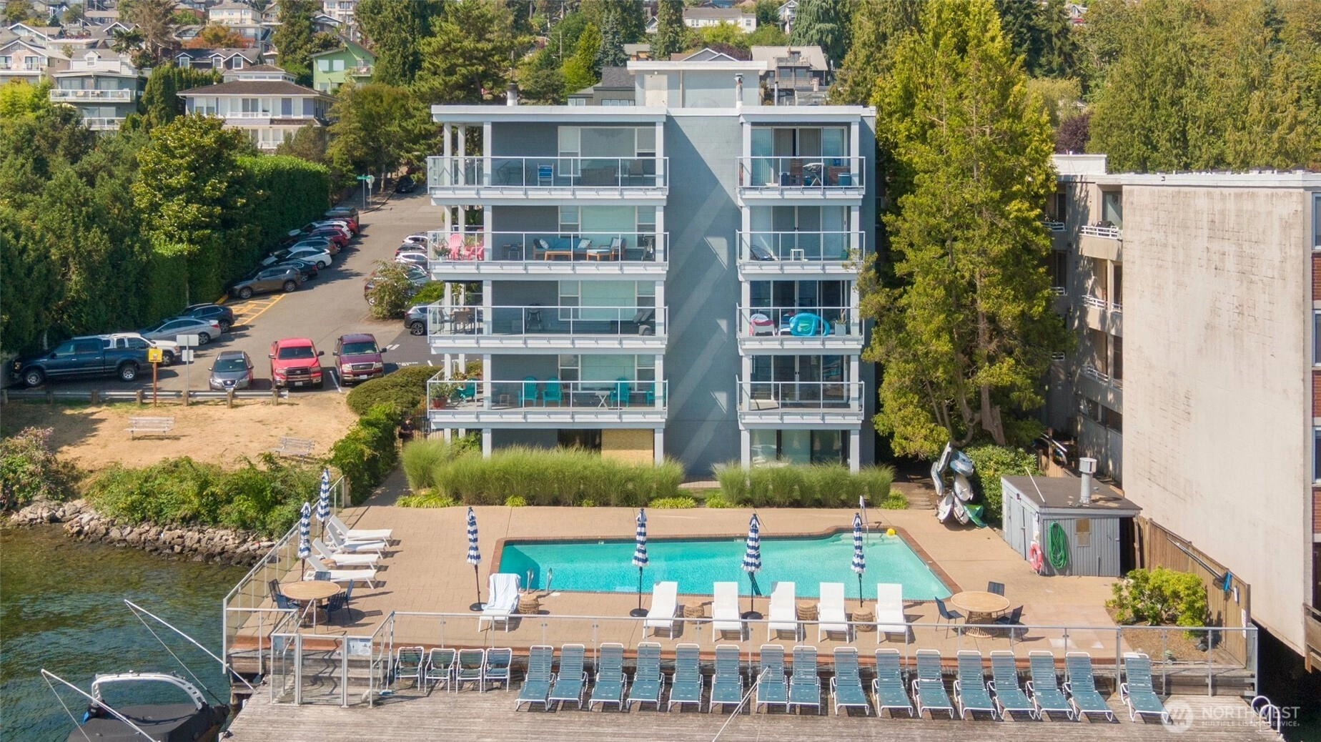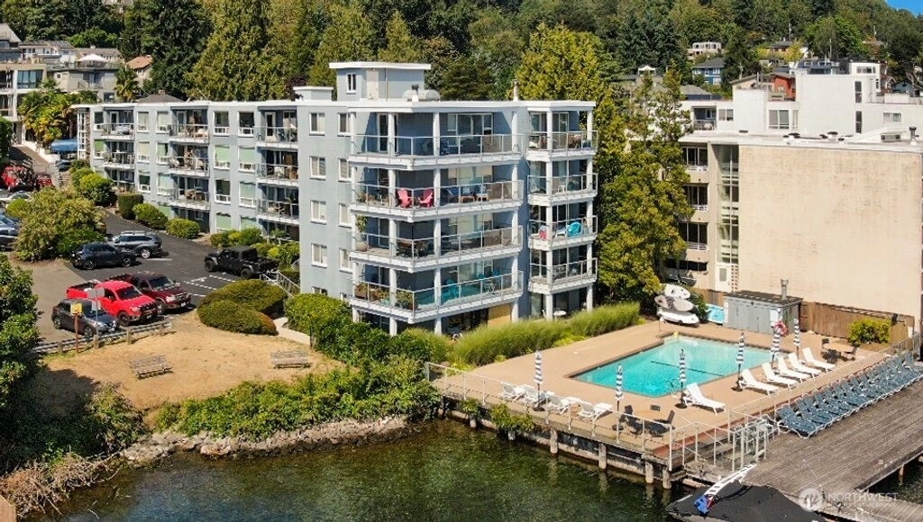 Stunning top-floor Leschi Shores condo with unobstructed Lake Washington and Mt. Rainier views! Bright and south-facing, this move-in ready home offers smart upgrades including Lutron blinds, smart thermostats, and two 55” Samsung Frame TVs. Features refreshed flooring, kitchen, and bath with quality finishes, plus large windows and a private deck. Community perks: pool, dock, moorage, storage, guest parking, and elevator access. Pet-friendly with no rental cap. Recent updates include new windows, with refreshed common areas coming in 2026. Walk to Leschi Market, Blue Water, Daniel’s Broiler, Pablo y Pablo, and Starbucks. Live steps from the water while staying connected to the heart of the city—designed for effortless lakeside living.