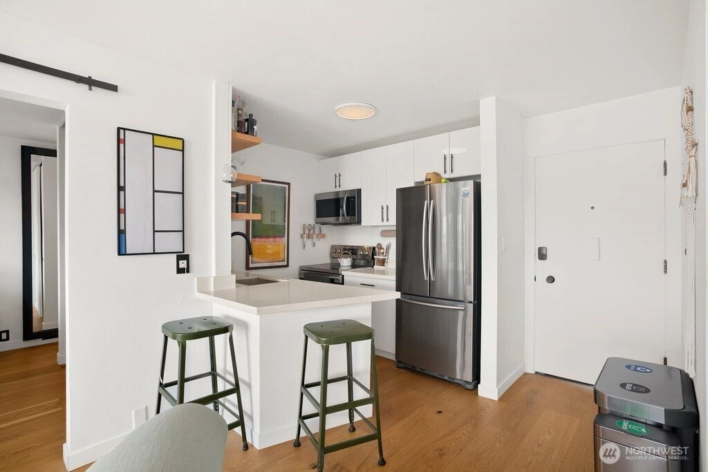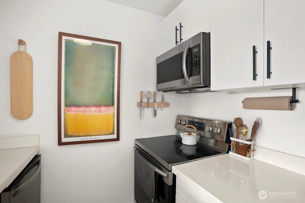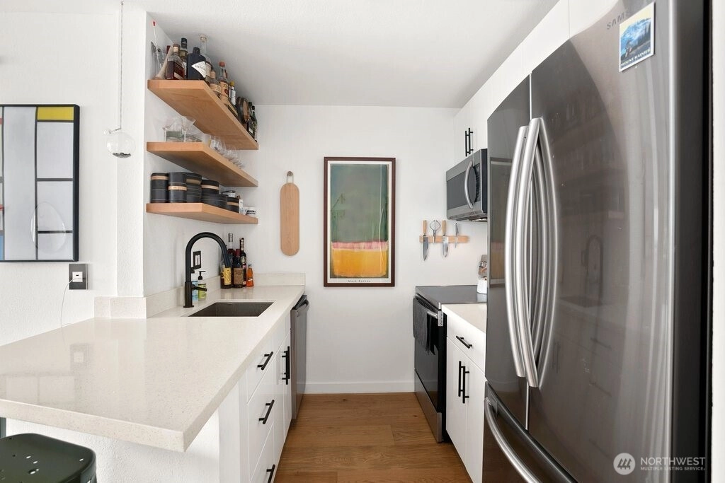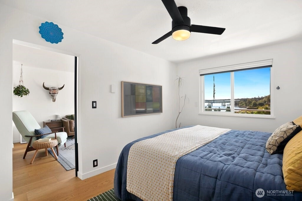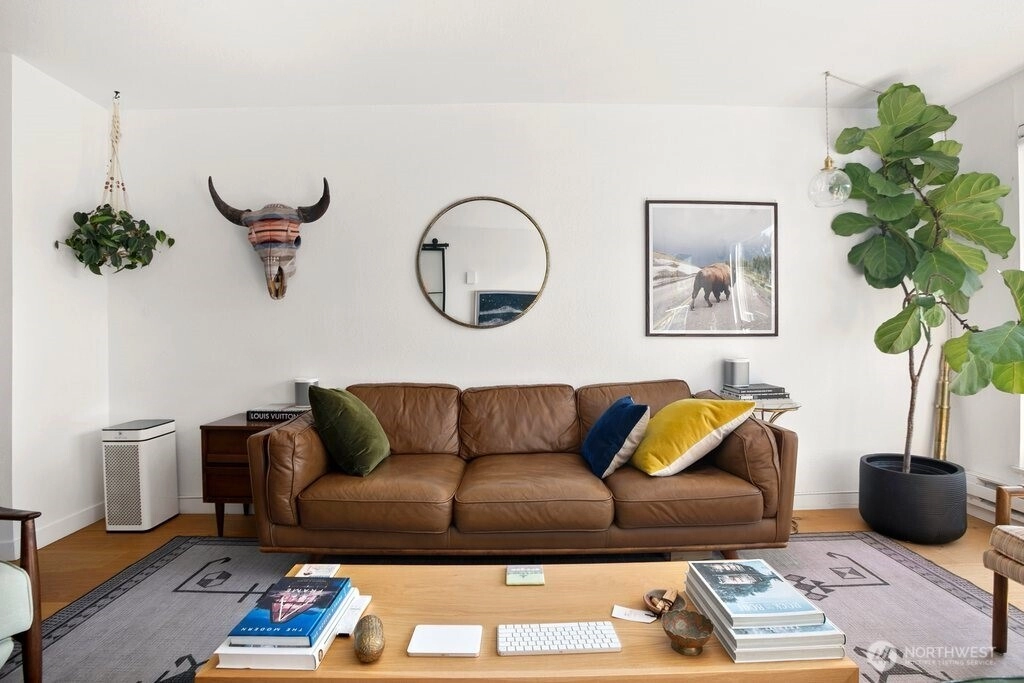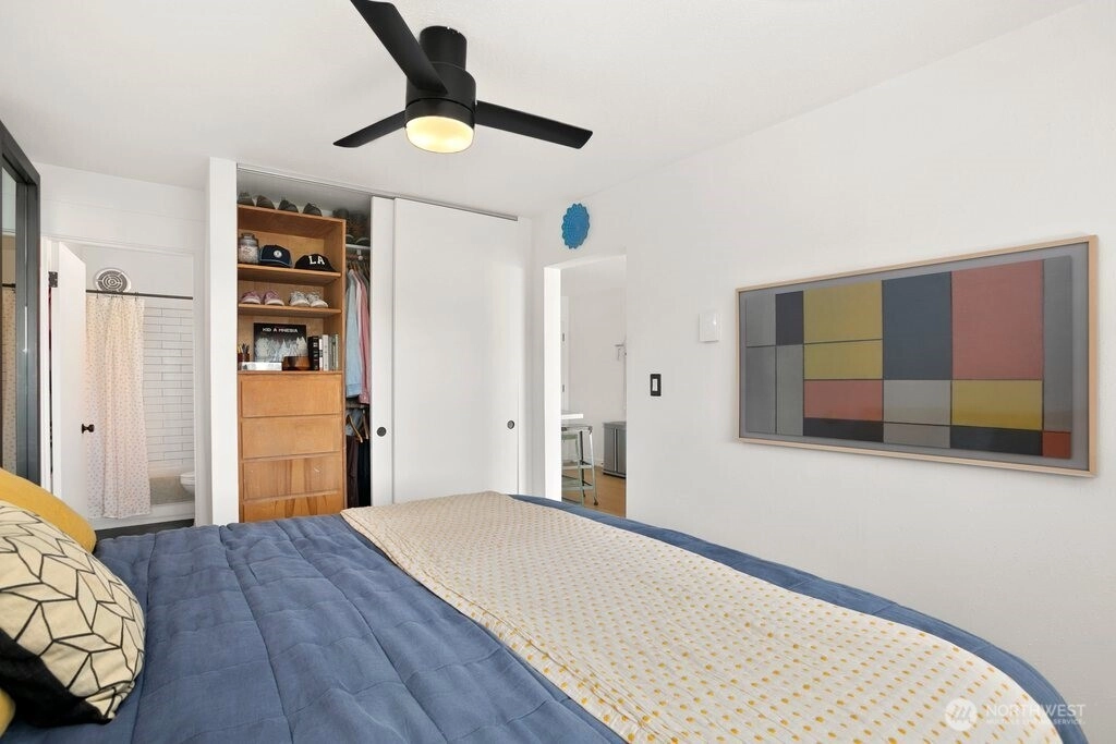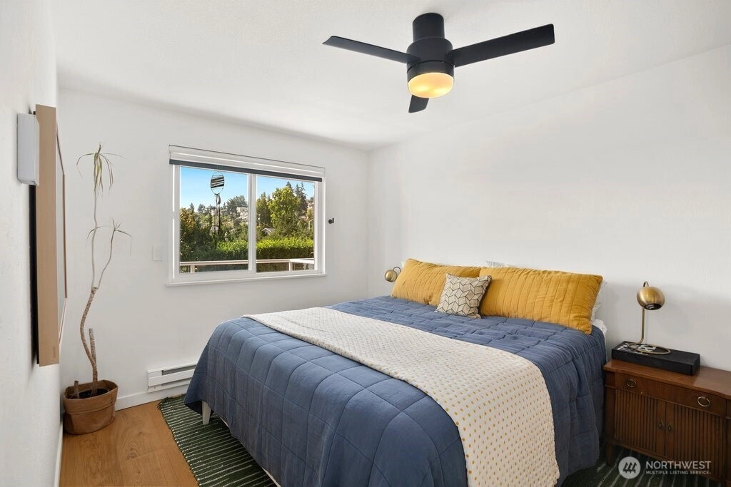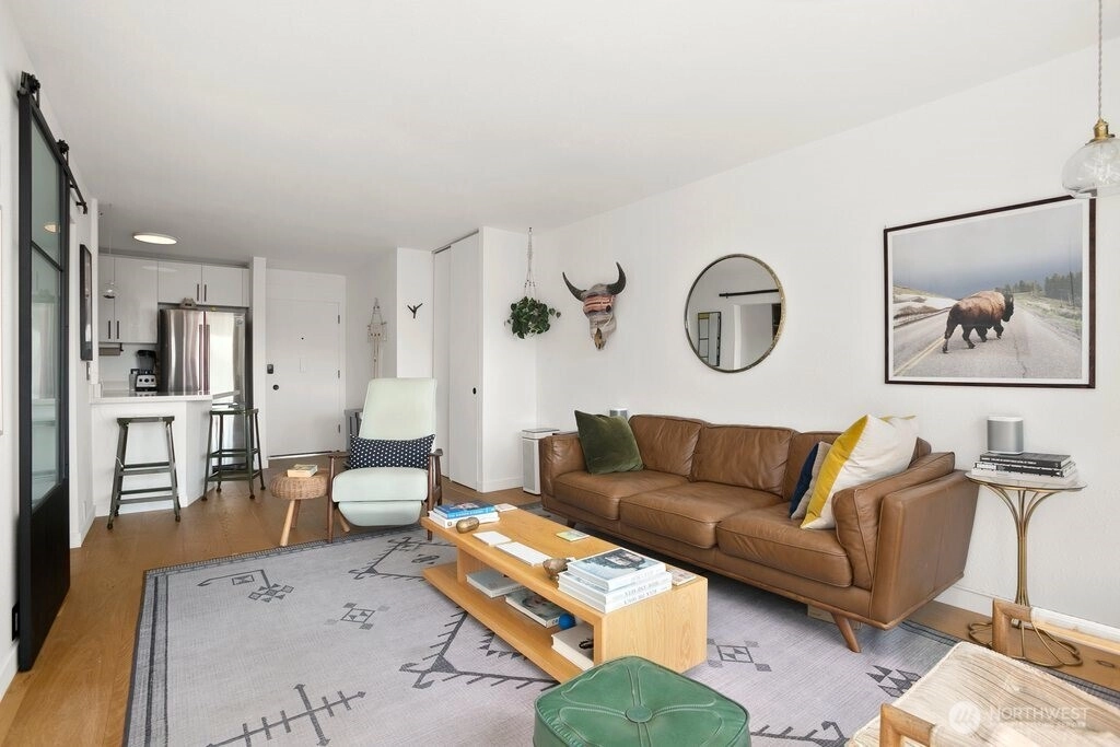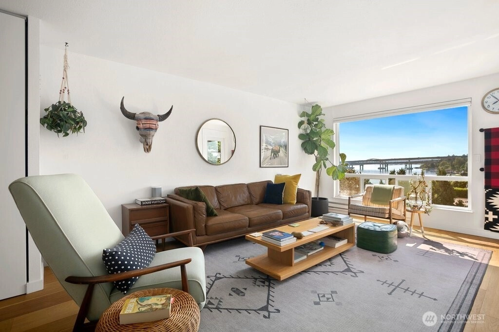 Stunning top-floor Leschi Shores condo with unobstructed Lake Washington and Mt. Rainier views! Bright and south-facing, this move-in ready home offers smart upgrades including Lutron blinds, smart thermostats, and two 55” Samsung Frame TVs. Features refreshed flooring, kitchen, and bath with quality finishes, plus large windows and a private deck. Community perks: pool, dock, moorage, storage, guest parking, and elevator access. Pet-friendly with no rental cap. Recent updates include new windows, with refreshed common areas coming in 2026. Walk to Leschi Market, Blue Water, Daniel’s Broiler, Pablo y Pablo, and Starbucks. Live steps from the water while staying connected to the heart of the city—designed for effortless lakeside living.