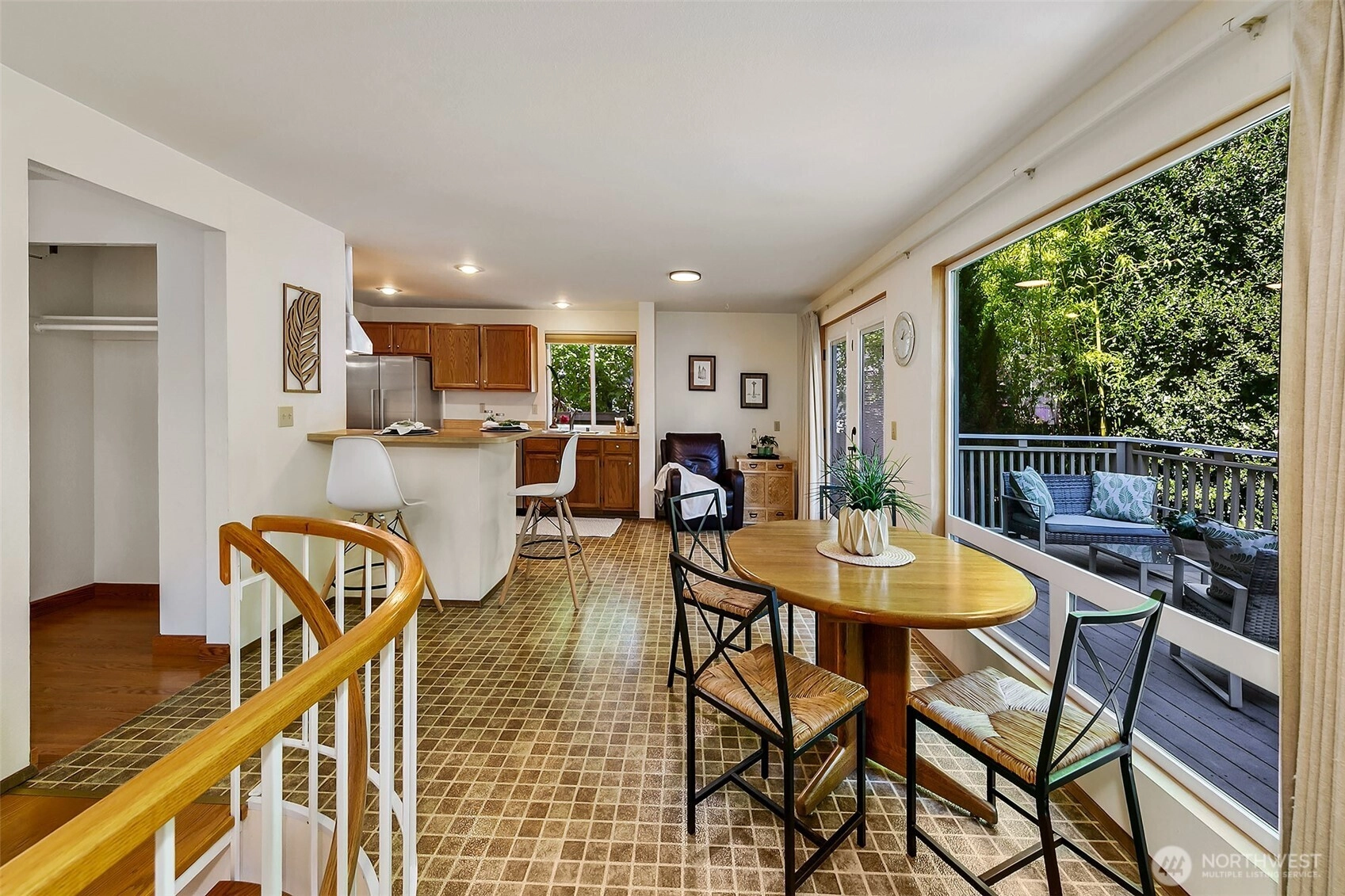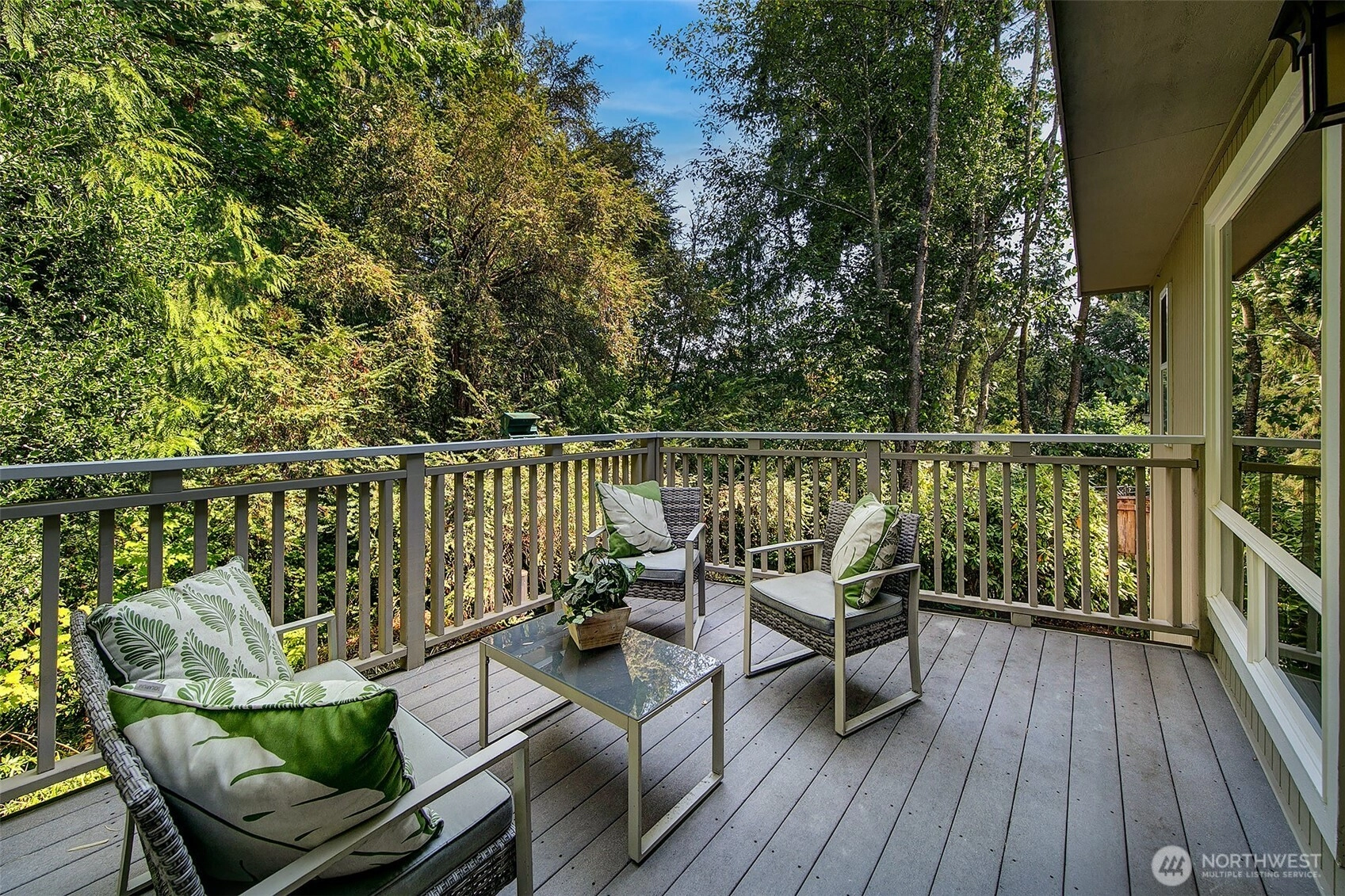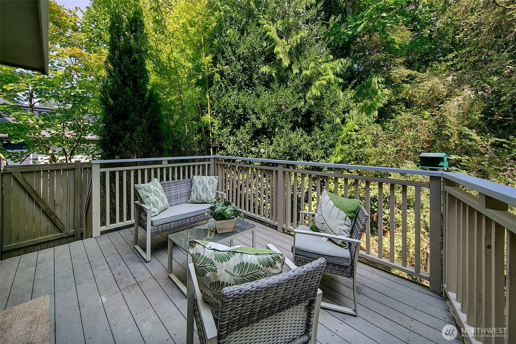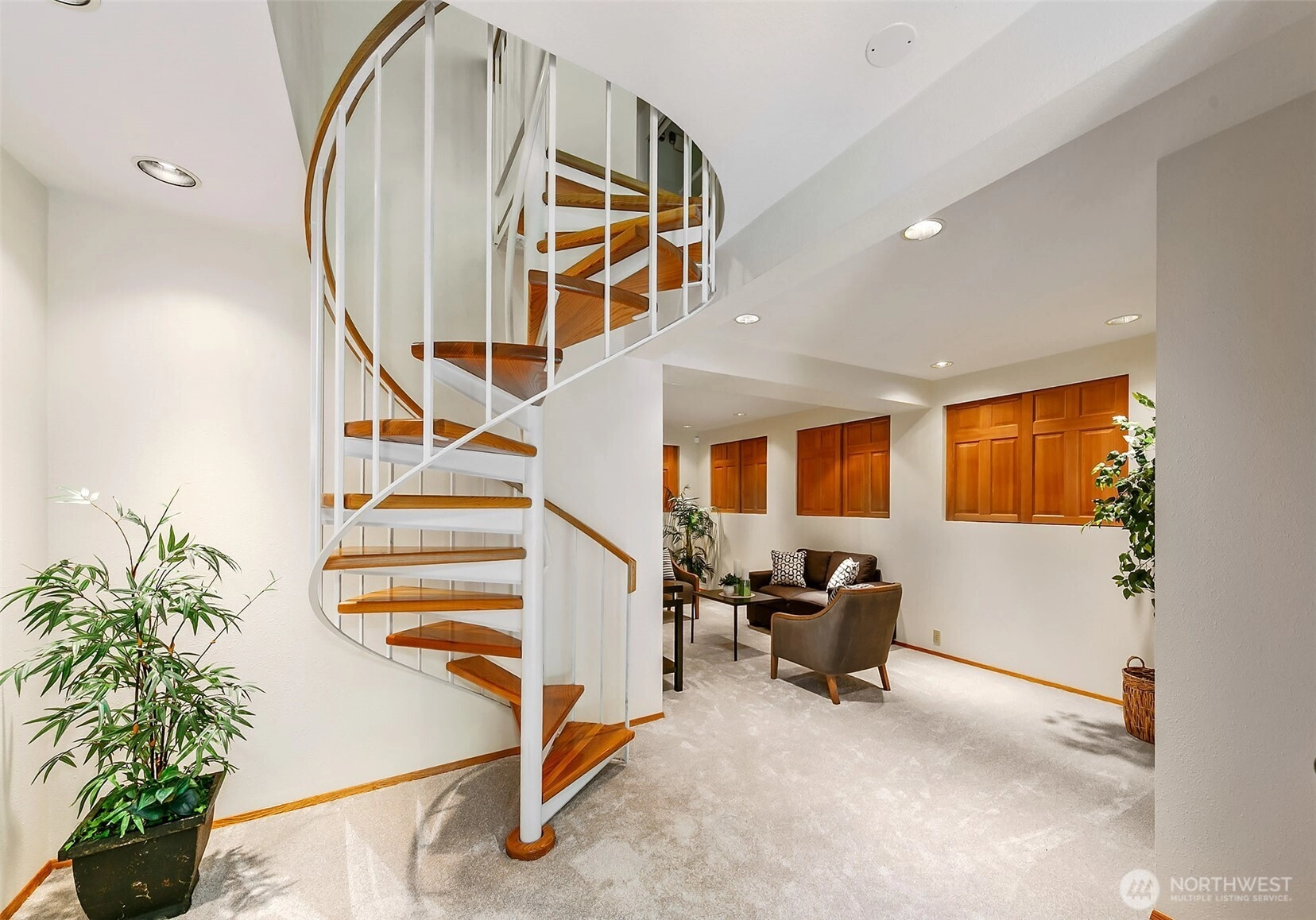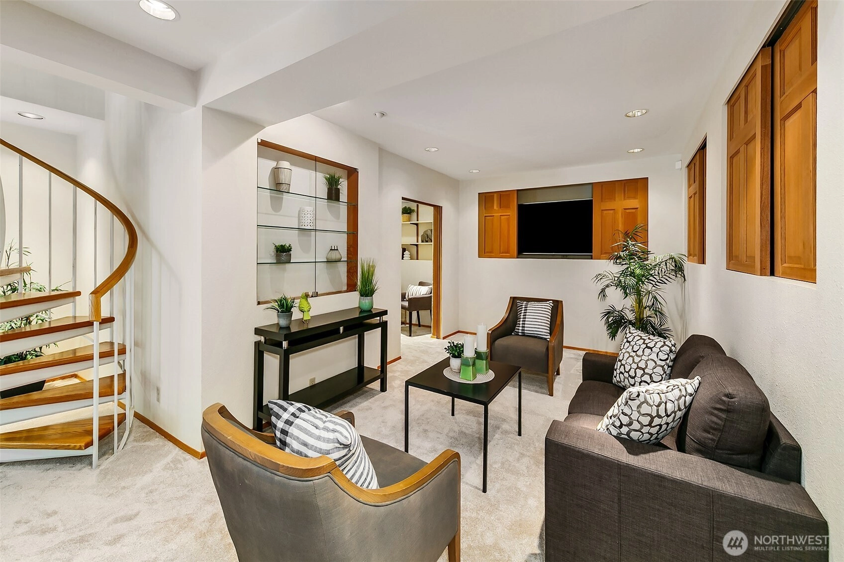 NW Contemporary Stunner is an in-city retreat! Sun drenched living room, cathedral ceilings, lovely gas fireplace, gleaming hardwoods & South facing deck. French doors lead to formal dining room. ½ bath with new vanity. Kitchen with Viking range, eating space adj. to huge deck in private sylvan setting. Upper: 3 spacious bedrooms, including Primary Suite with walk-in closet & custom tile shower. 2nd bath with jetted tub & both baths have heated floors & towel rack! Lower: new carpet, home office, tons of storage & lovely media room. Gas furnace, 2 car garage & solar panels. One-of-a-kind setting feels like country but is just minutes to North City, LFP shops & restaurants,185th Light Rail & easy commute Downtown. Excellent Shoreline Schools