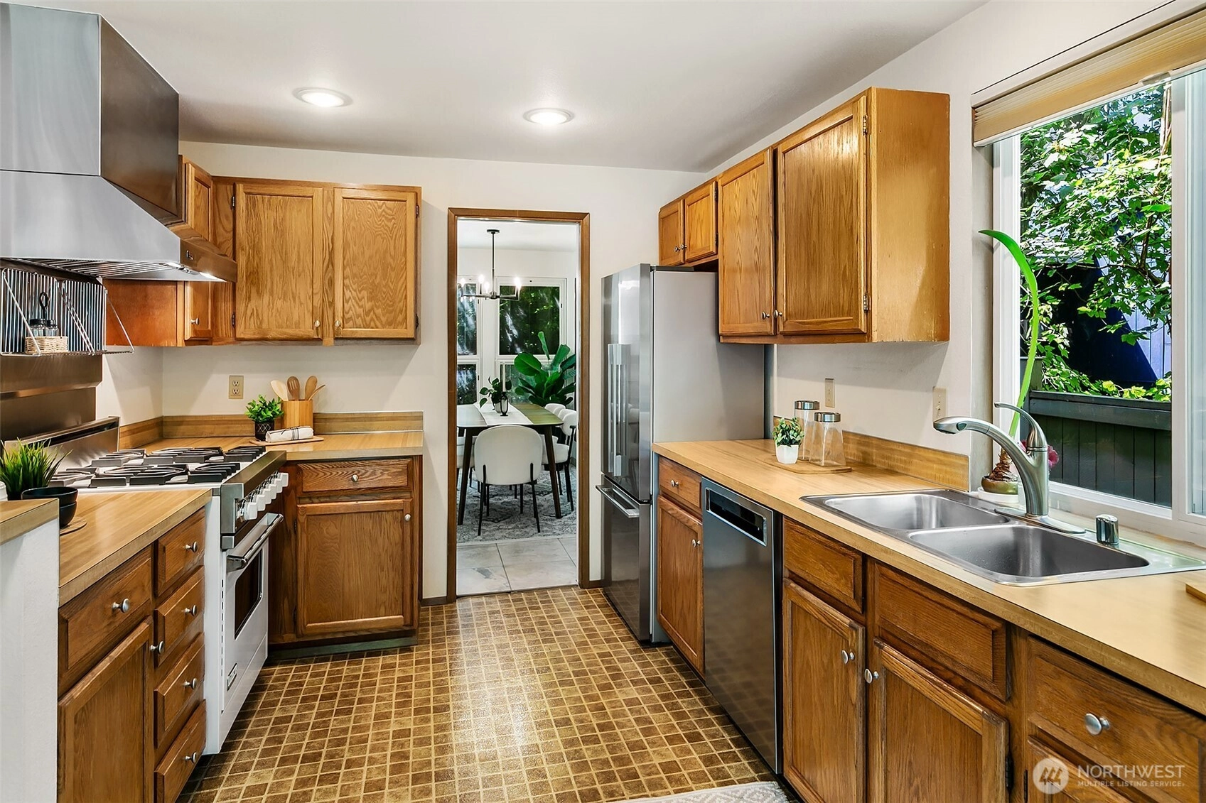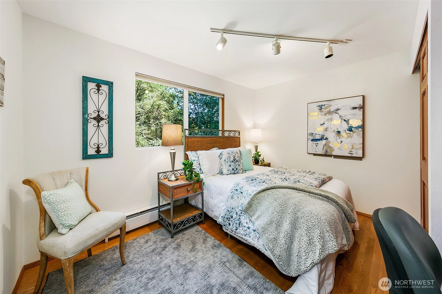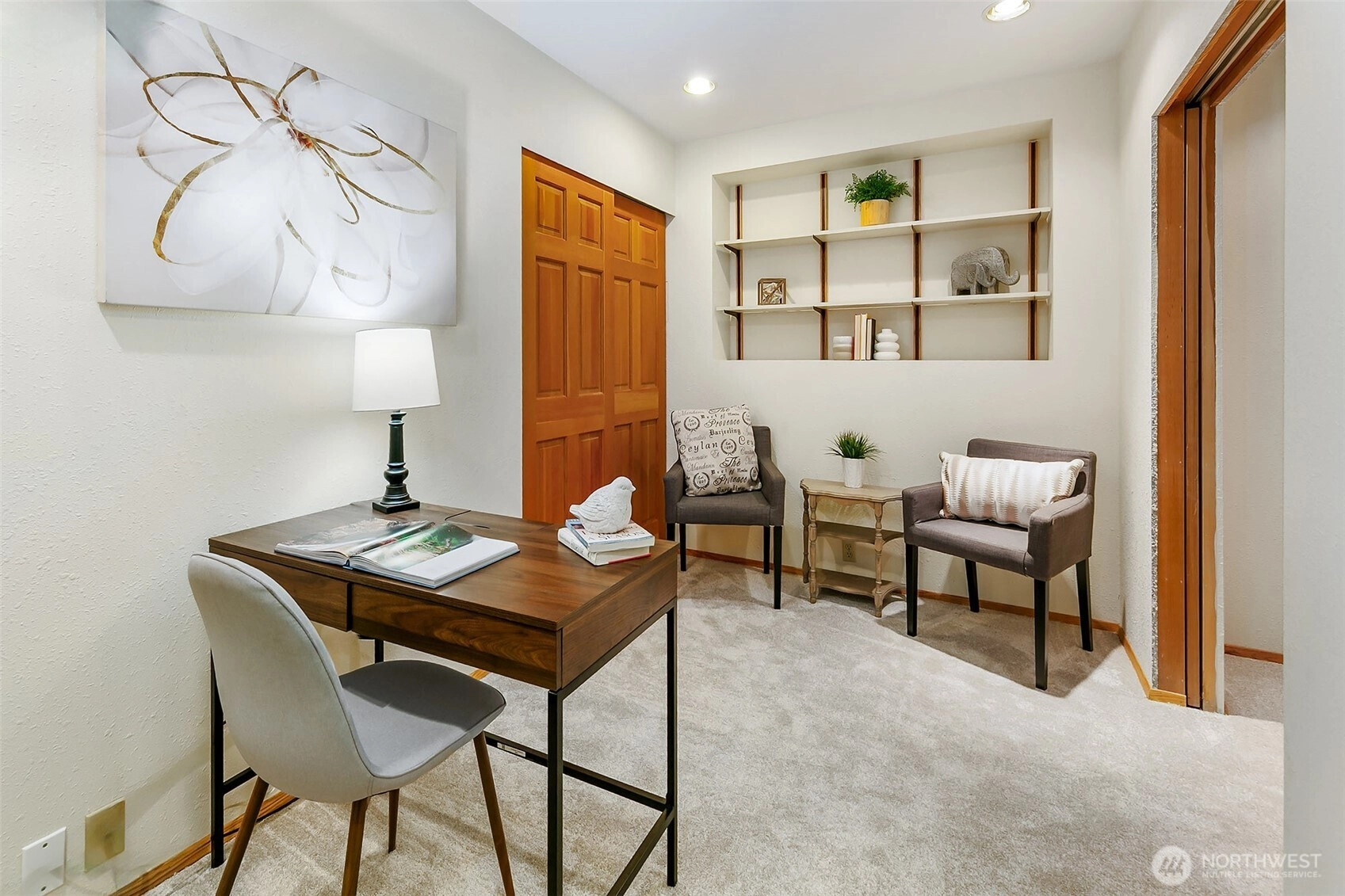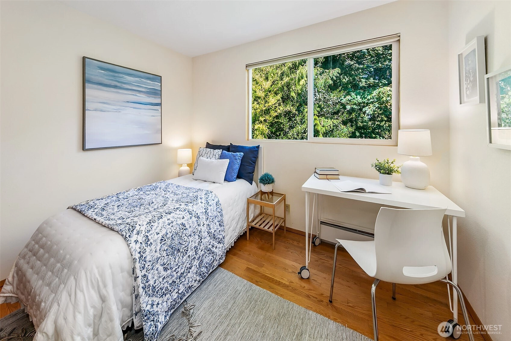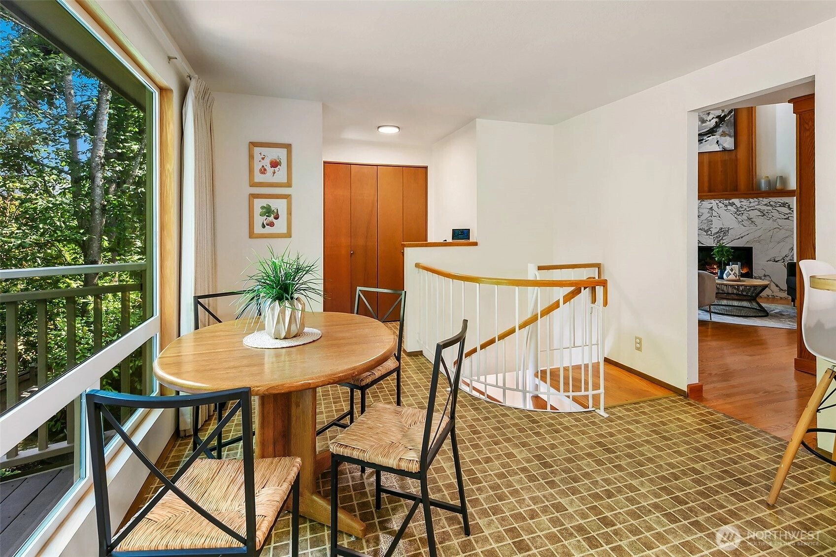 NW Contemporary Stunner is an in-city retreat! Sun drenched living room, cathedral ceilings, lovely gas fireplace, gleaming hardwoods & South facing deck. French doors lead to formal dining room. ½ bath with new vanity. Kitchen with Viking range, eating space adj. to huge deck in private sylvan setting. Upper: 3 spacious bedrooms, including Primary Suite with walk-in closet & custom tile shower. 2nd bath with jetted tub & both baths have heated floors & towel rack! Lower: new carpet, home office, tons of storage & lovely media room. Gas furnace, 2 car garage & solar panels. One-of-a-kind setting feels like country but is just minutes to North City, LFP shops & restaurants,185th Light Rail & easy commute Downtown. Excellent Shoreline Schools