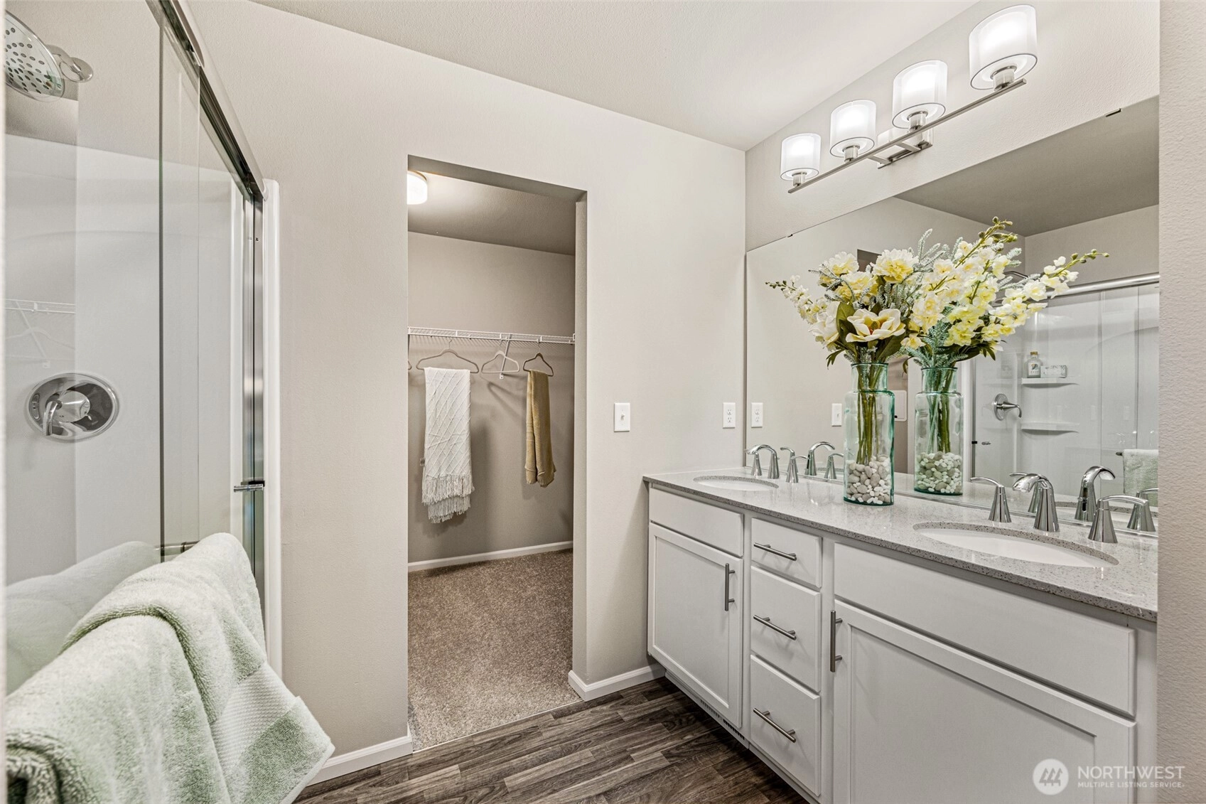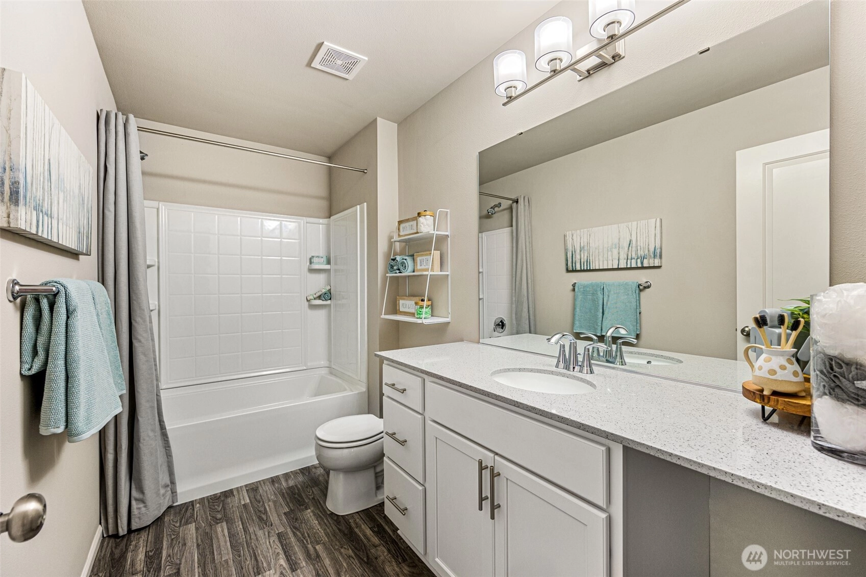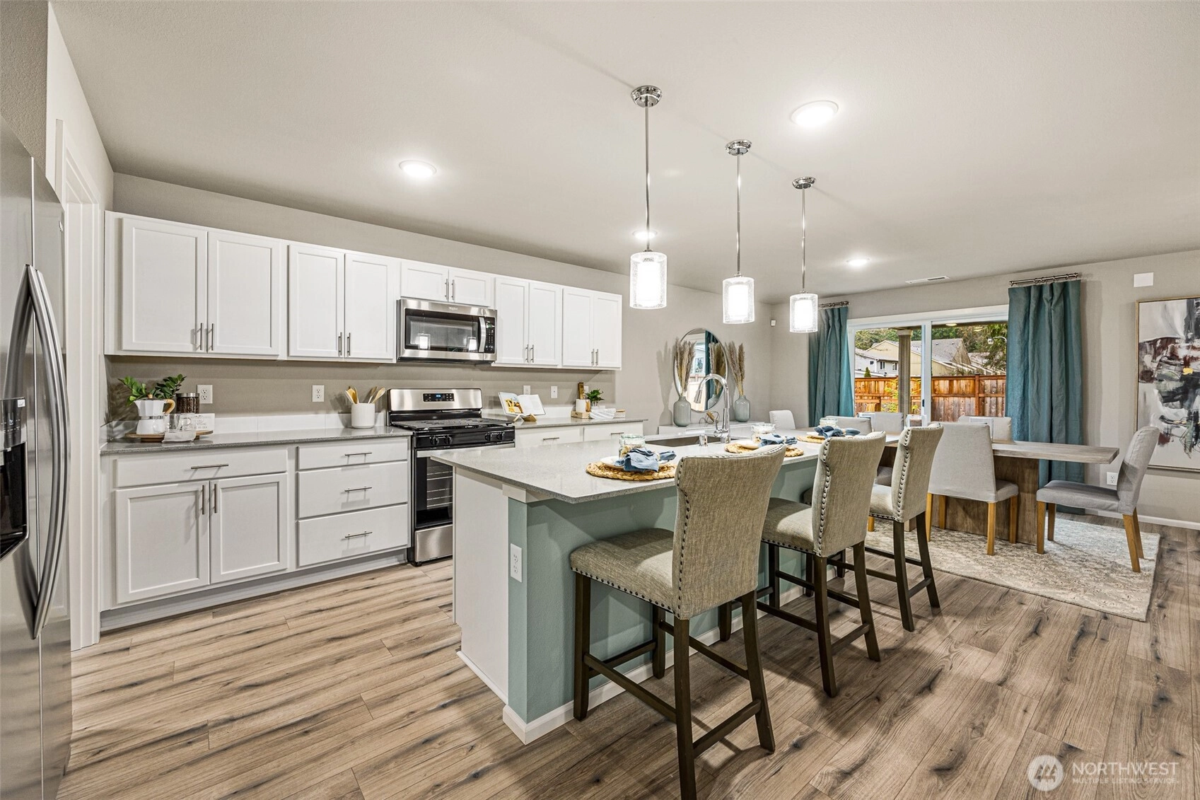 The HUGE OPEN CONCEPT great room sets the Finley plan apart! Beautiful white marble-look quartz countertops in kitchen, gas range for your inner chef, deep farm style stainless steel kitchen sink, large island w/seating for 4+, LVP throughout main living area, 8' Ceilings, cozy gas fireplace & quartz in all bathrooms, walk in pantry, mud room! Bright white cabinets w/soft close, modern style drawer pulls and Century Home Connect technology system (Ring video doorbell, eero mesh router & MORE). Enjoy fully landscaped front and backyard. Century Communities is known for our exceptional quality and our outstanding warranty. Buyers must register or bring Brokers at 1st visit to receive SOC.