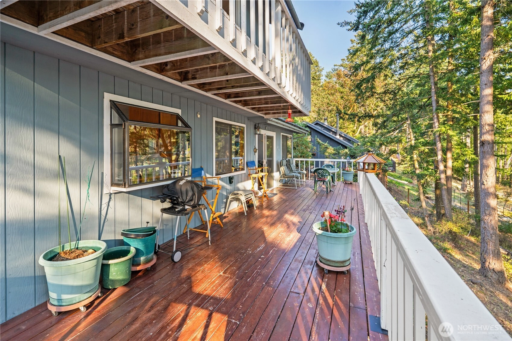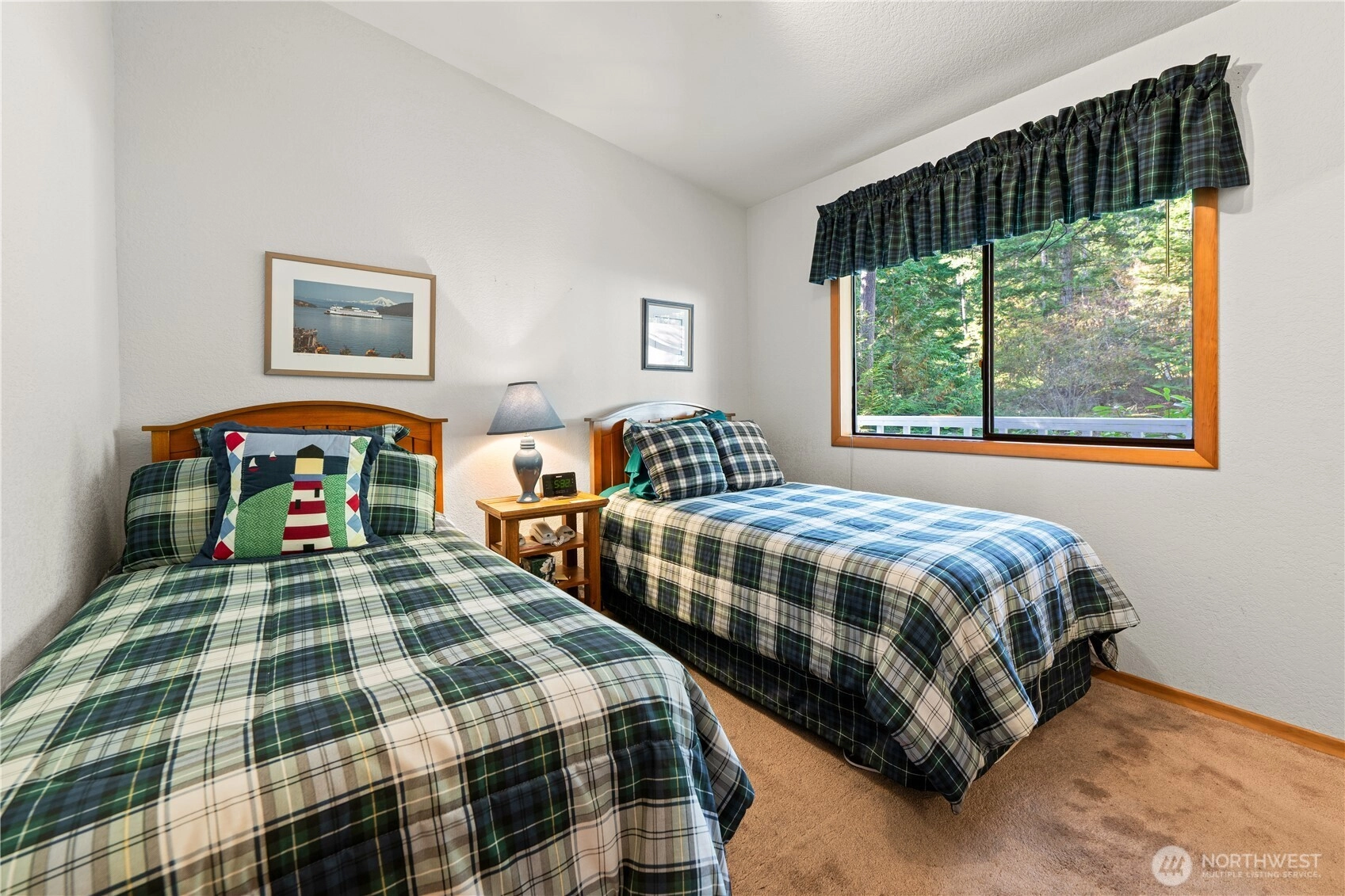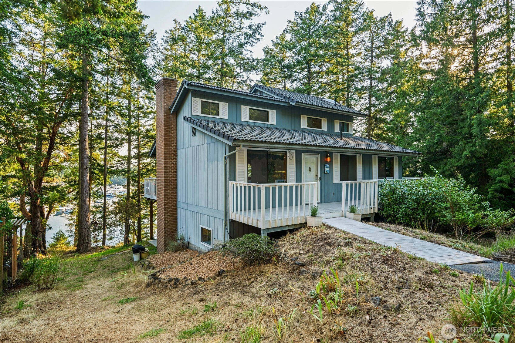 Roche Harbor Retreat. Nestled on a .57-acre bordering iconic Roche Harbor Resort, this inviting south-facing gem offers the perfect blend of privacy & proximity, with direct access to one of the San Juans most beloved destinations. The home welcomes you with a light-filled great room, main floor bedroom & bath, upper primary ensuite with balcony, cedar-lined closets. Daylight lower level with wood stove adds warmth & flexibility for guests, hobbies or entertainment. Step outside to a peaceful deck with filtered water views of the resort, relax and soak in the island atmosphere. Easy access to pool, pickleball, marina, dining & more. 2-car garage, deer-fenced garden. Fully furnished for your vacation home or full-time residence.
