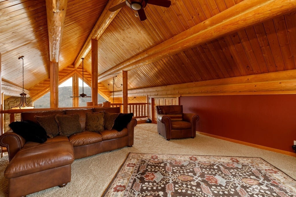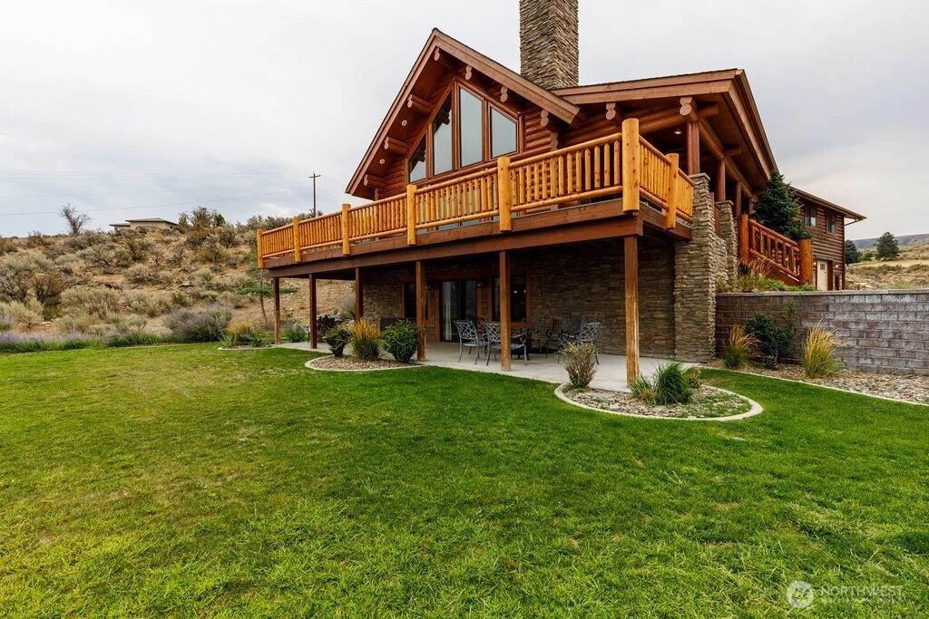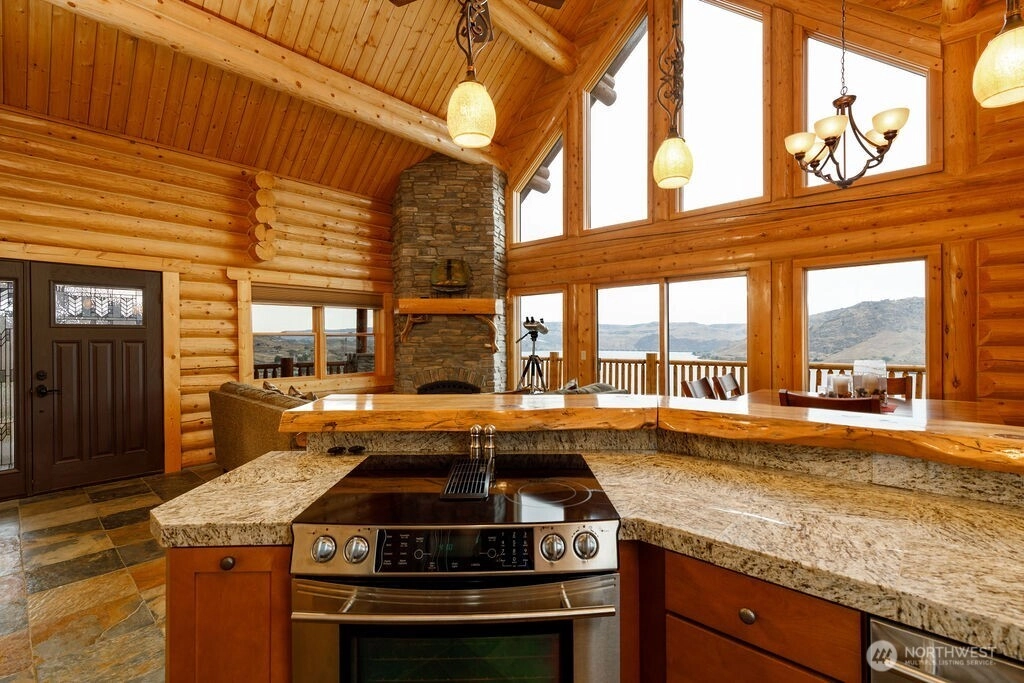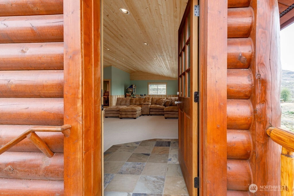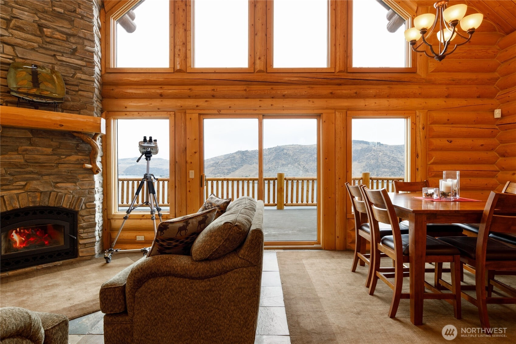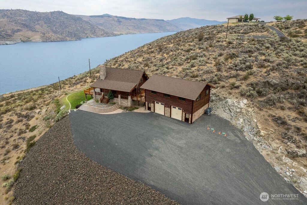 Breathtaking lodge style log home with sweeping Lake Roosevelt views! Built in 2009 from lodgepole pine and Engelmann spruce, this 3 bed, 2.5 bath in the main house and 2 bed 1 bath in the detached ADU - main house features 21’ vaulted ceilings, an open kitchen, main floor master, loft bedroom, and a daylight basement with another livingroom and wet bar. The 2011 detached shop includes the 2 bed, 1 bath ADU with its own HVAC perfect for guests, rentals or multi gen living. Whether full time, vacation, or investment, this property combines rustic beauty with modern comfort.