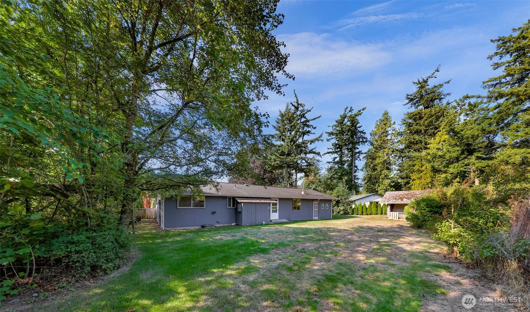 This 3-bedroom, 1-bath rambler sits on a large 10,000 sqft flat parcel located in a quiet cul-de-sac with plenty of sunshine—ideal for gardening, outdoor activities, and entertaining. The home includes a single-car garage and additional living space with a cozy wood-burning stove, offering flexible options for renovation and personalization. A small outbuilding in the backyard provides extra storage for garden equipment and more. Conveniently located just 10 minutes from Bellingham, 5 minutes from Ferndale, and close to I-5, this property offers both comfort and accessibility. Perfect for creating your ideal home and enjoying all the benefits of a central location.