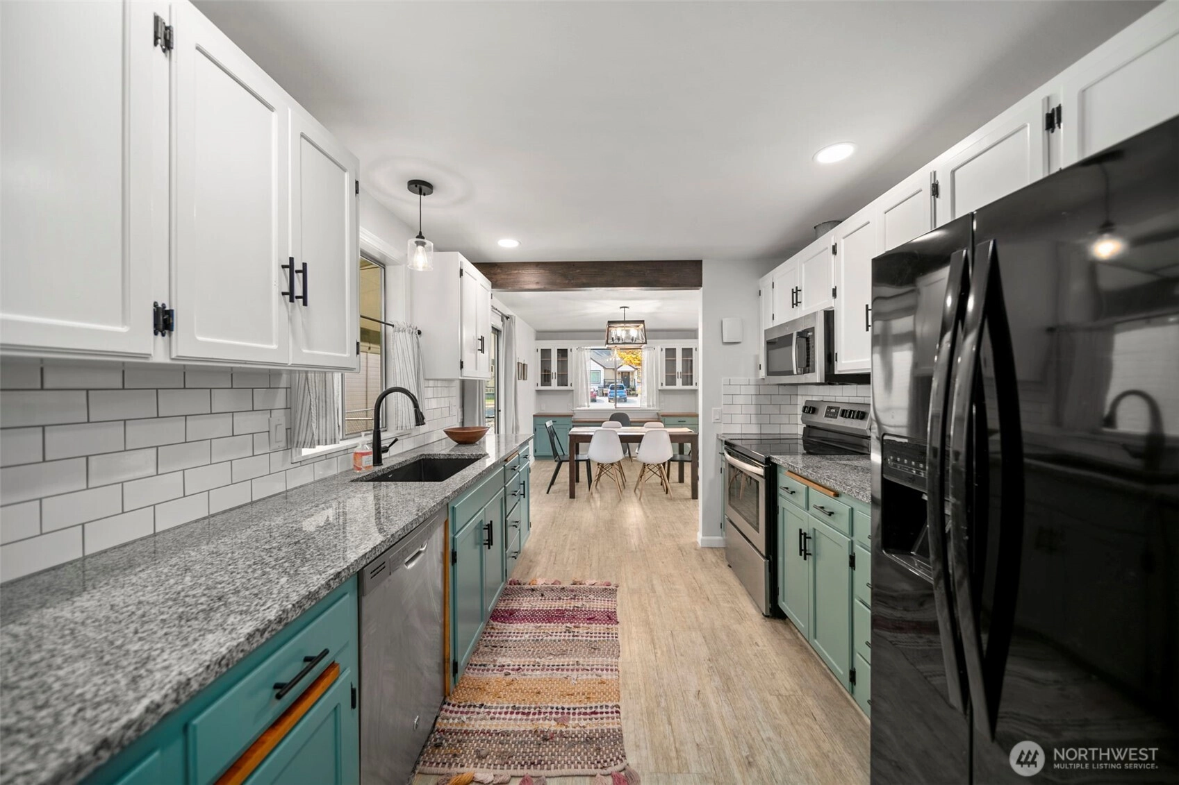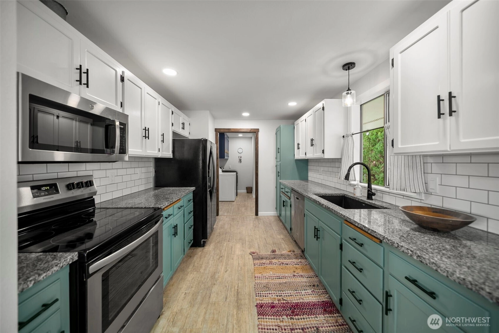 Remodeled 3 bedroom, 2 bath home with charming open concept living room and wood burning stove in the heart of Cashmere. Spacious kitchen, dining room, two bedrooms and a bathroom upstairs. Separate entrance for lower level with full kitchen, living space, full bathroom, sleeping area & lots of storage. Laundry room both upstairs and downstairs. Great home for multi-generational living, or rent out downstairs while living upstairs. Private backyard with shop and creek. The PERFECT location just around the corner from the city swimming pool, tennis courts and school play fields.
