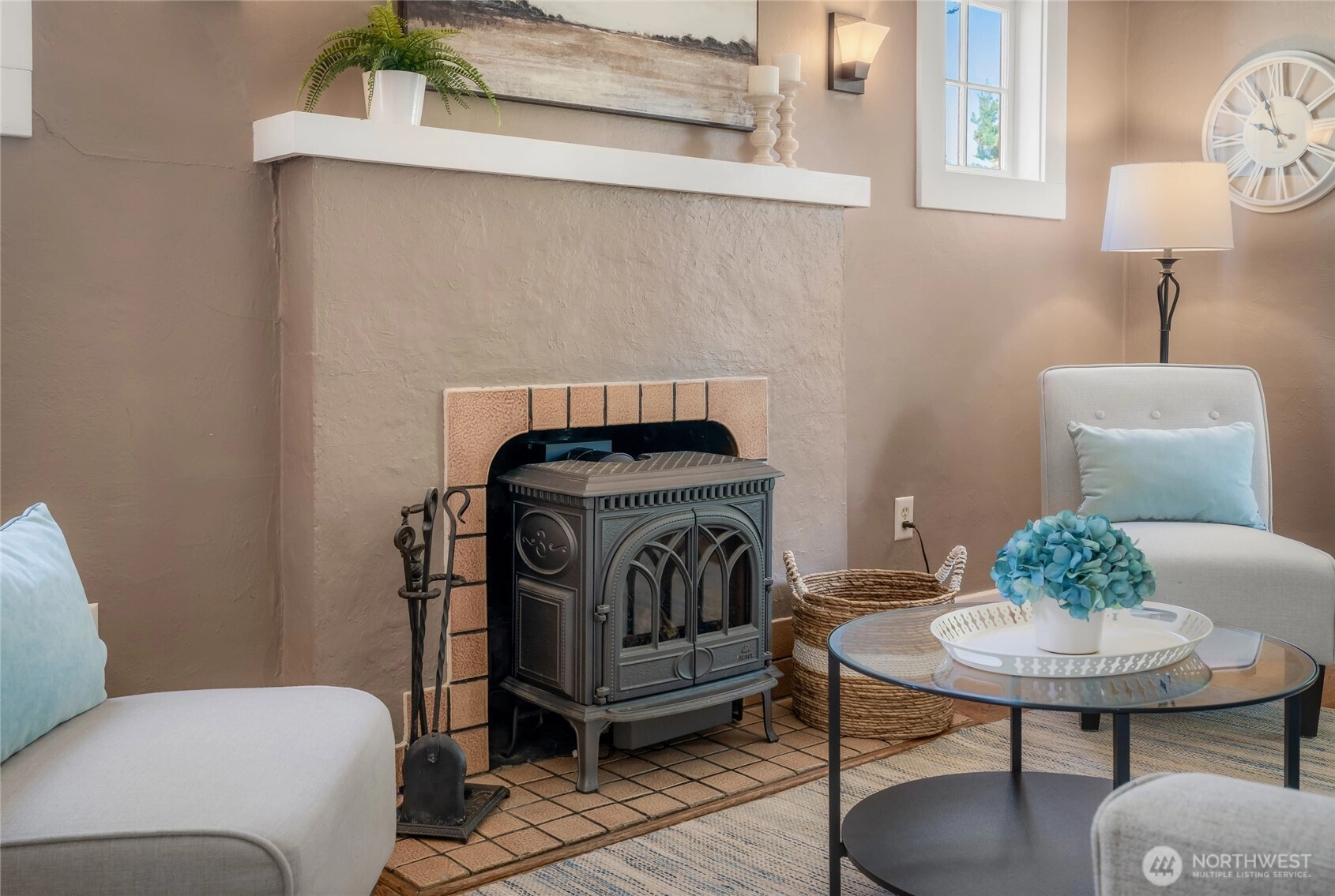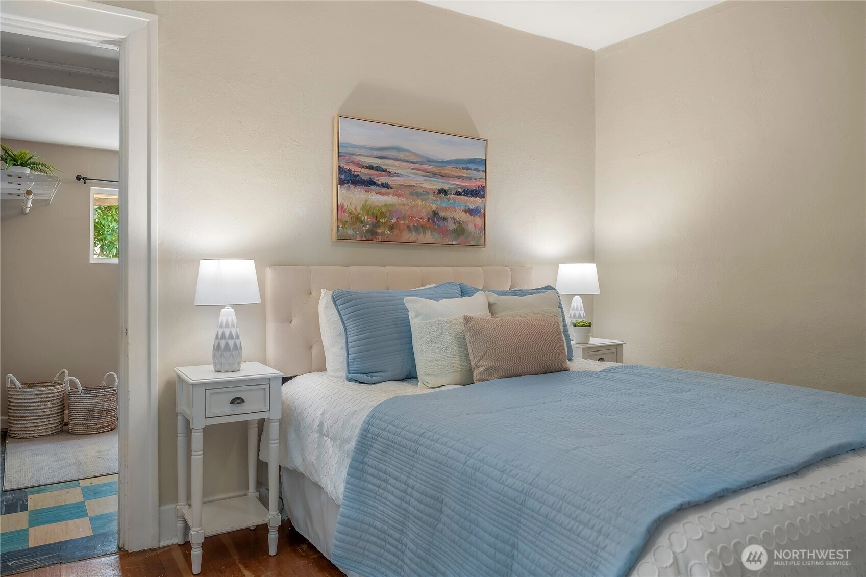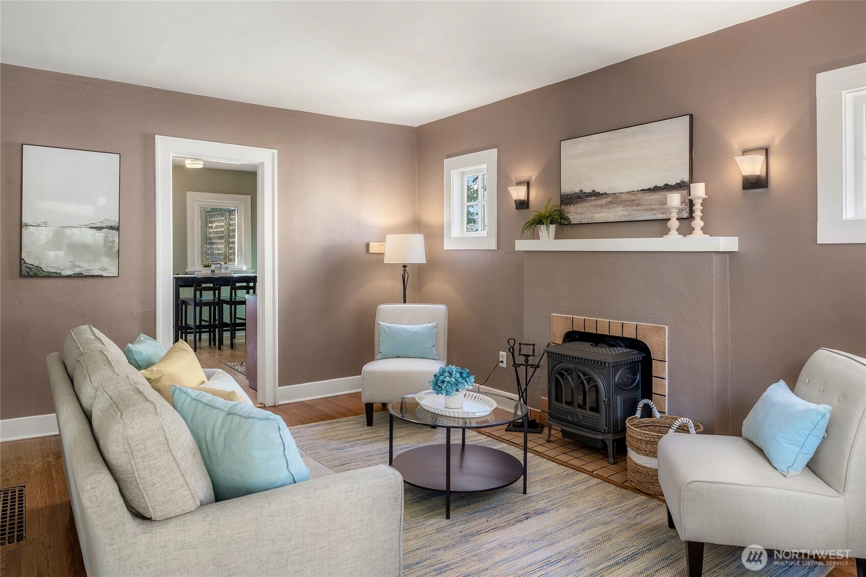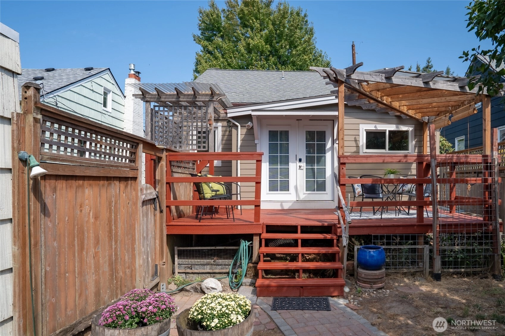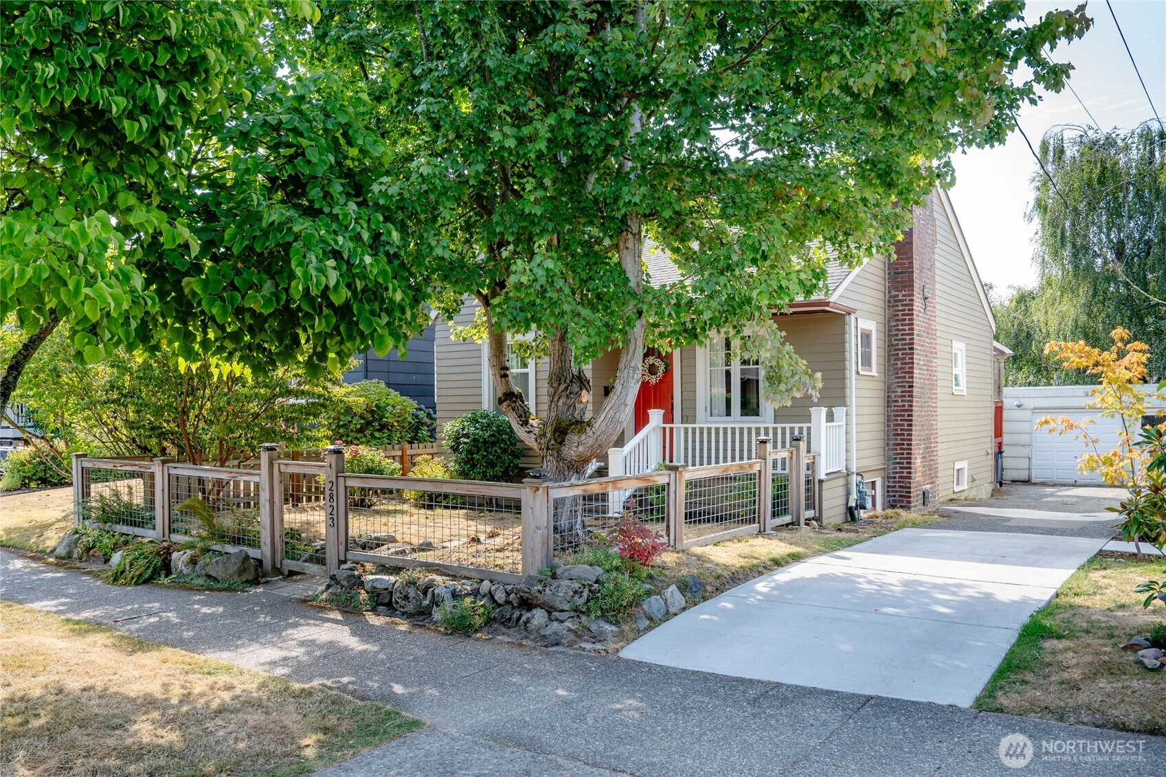 Charming 1928 Ballard Craftsman Bungalow. Main level features 2 bedrooms—one with walk-in closet, the other with French doors opening to the living room with cozy Jøtul gas fireplace. Full bath on main. Kitchen with Beko range/DF stove, glass tile backsplash, and stainless appliances connects to mud room and opens to a large deck for entertaining. Basement offers 3rd bedroom, ¾ bath, utility room, and abundant storage. Landscaped backyard oasis with garden shed and 1-car detached garage. Enjoy a friendly walking neighborhood near Golden Gardens, Shilshole Marina, UW, Seattle, and transit. Cute as a button and move-in ready!