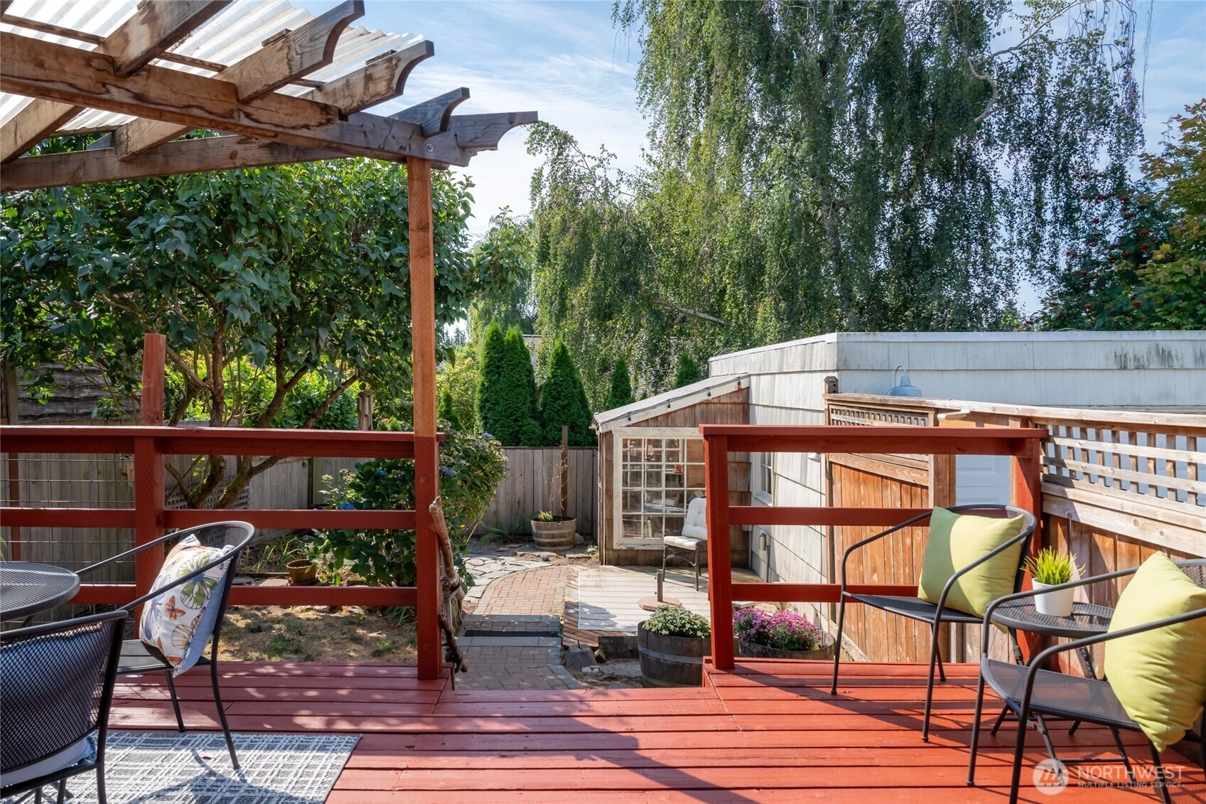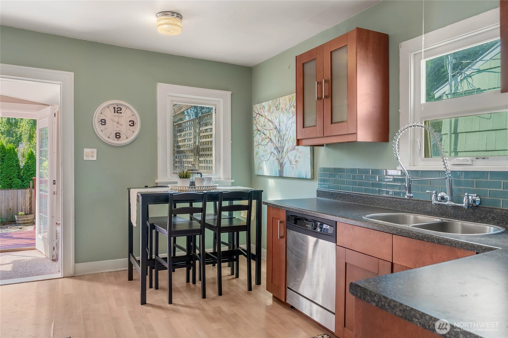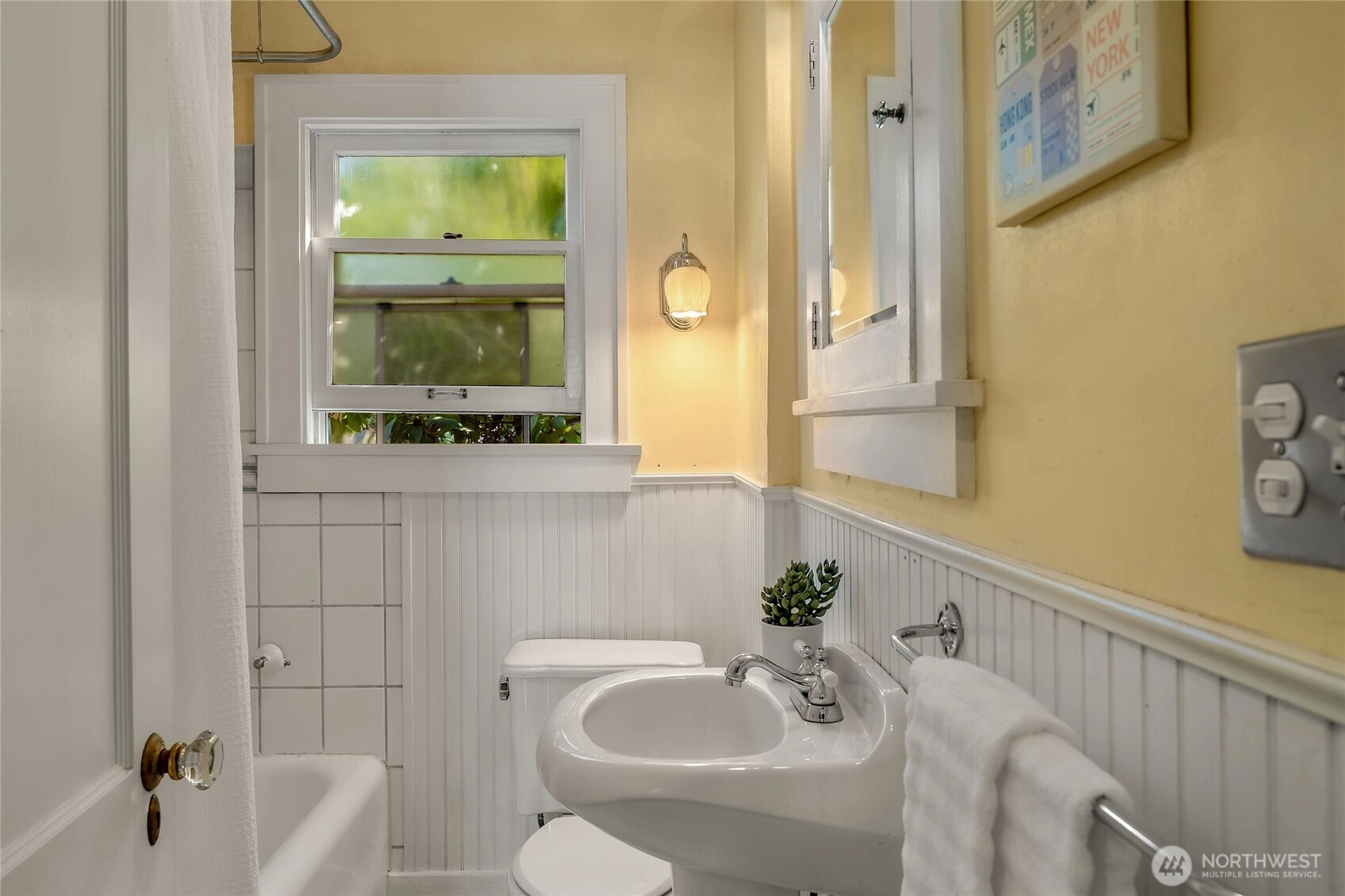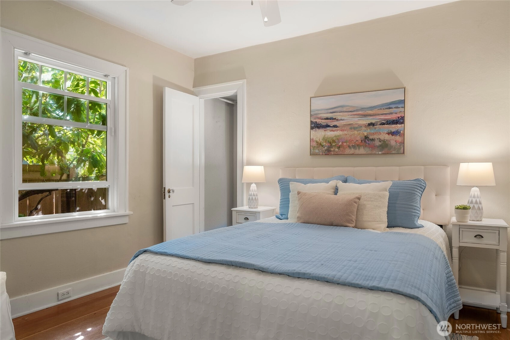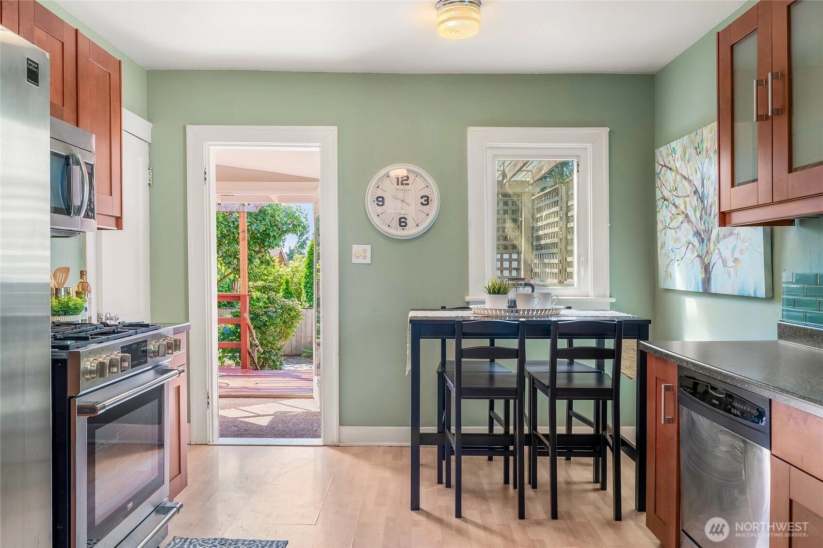 Charming 1928 Ballard Craftsman Bungalow. Main level features 2 bedrooms—one with walk-in closet, the other with French doors opening to the living room with cozy Jøtul gas fireplace. Full bath on main. Kitchen with Beko range/DF stove, glass tile backsplash, and stainless appliances connects to mud room and opens to a large deck for entertaining. Basement offers 3rd bedroom, ¾ bath, utility room, and abundant storage. Landscaped backyard oasis with garden shed and 1-car detached garage. Enjoy a friendly walking neighborhood near Golden Gardens, Shilshole Marina, UW, Seattle, and transit. Cute as a button and move-in ready!