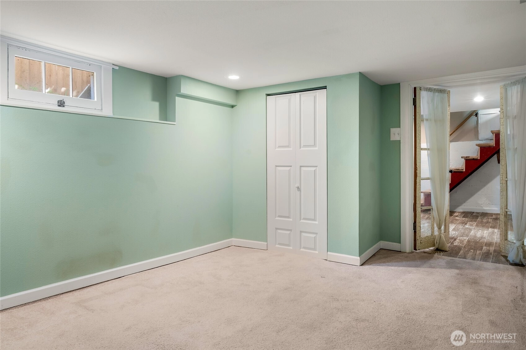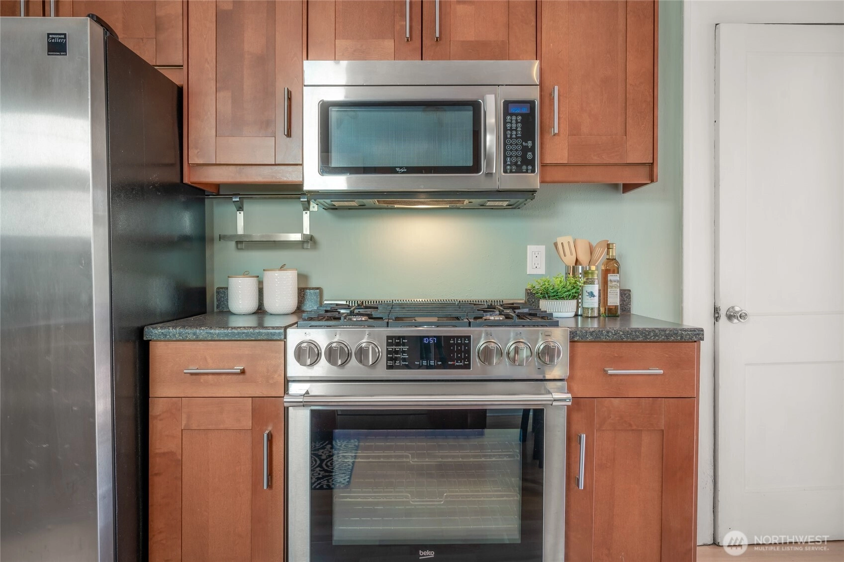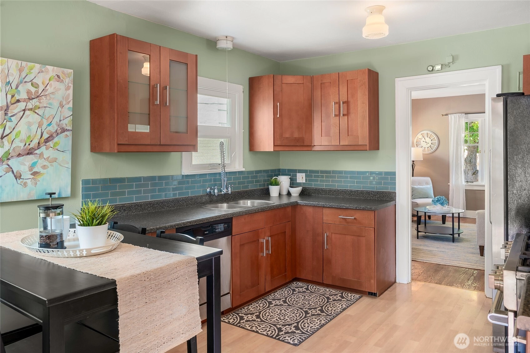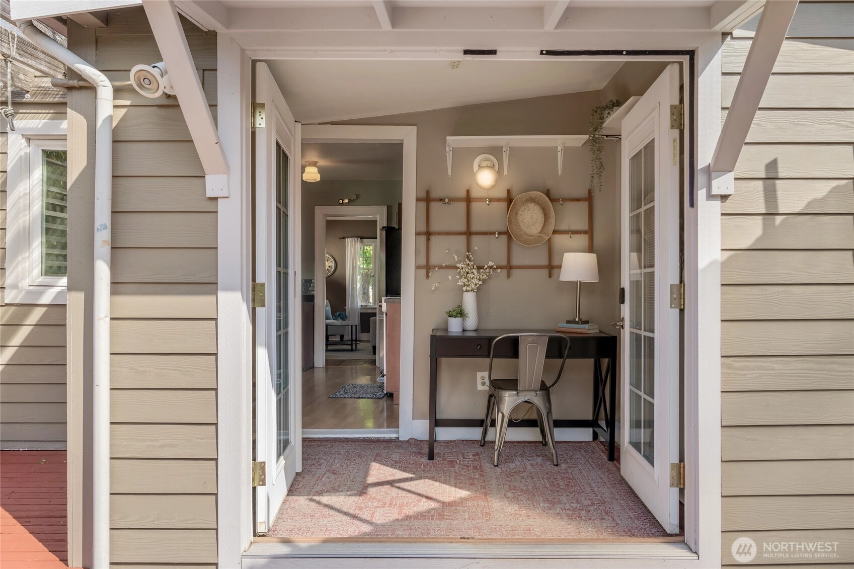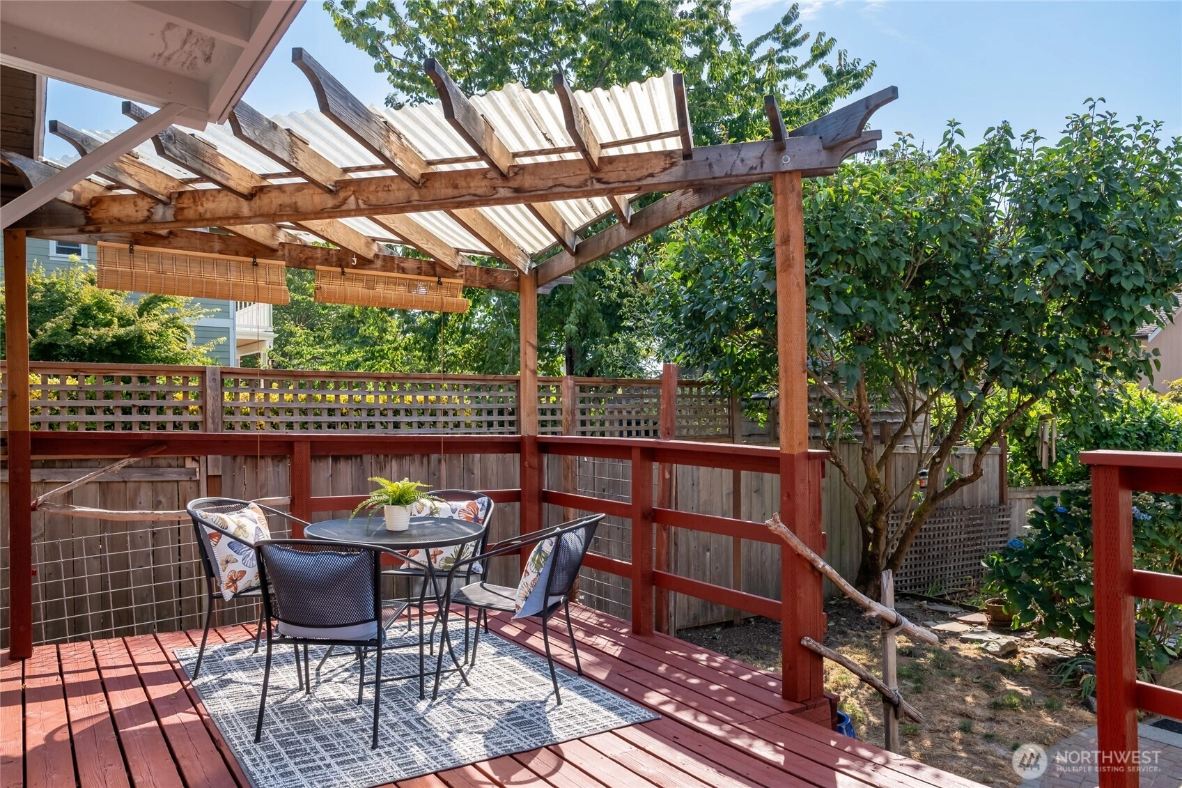 Charming 1928 Ballard Craftsman Bungalow. Main level features 2 bedrooms—one with walk-in closet, the other with French doors opening to the living room with cozy Jøtul gas fireplace. Full bath on main. Kitchen with Beko range/DF stove, glass tile backsplash, and stainless appliances connects to mud room and opens to a large deck for entertaining. Basement offers 3rd bedroom, ¾ bath, utility room, and abundant storage. Landscaped backyard oasis with garden shed and 1-car detached garage. Enjoy a friendly walking neighborhood near Golden Gardens, Shilshole Marina, UW, Seattle, and transit. Cute as a button and move-in ready!