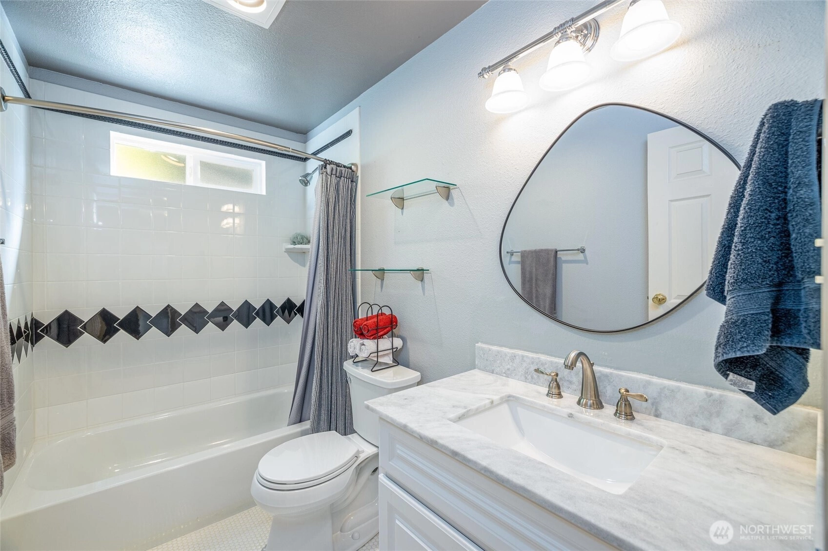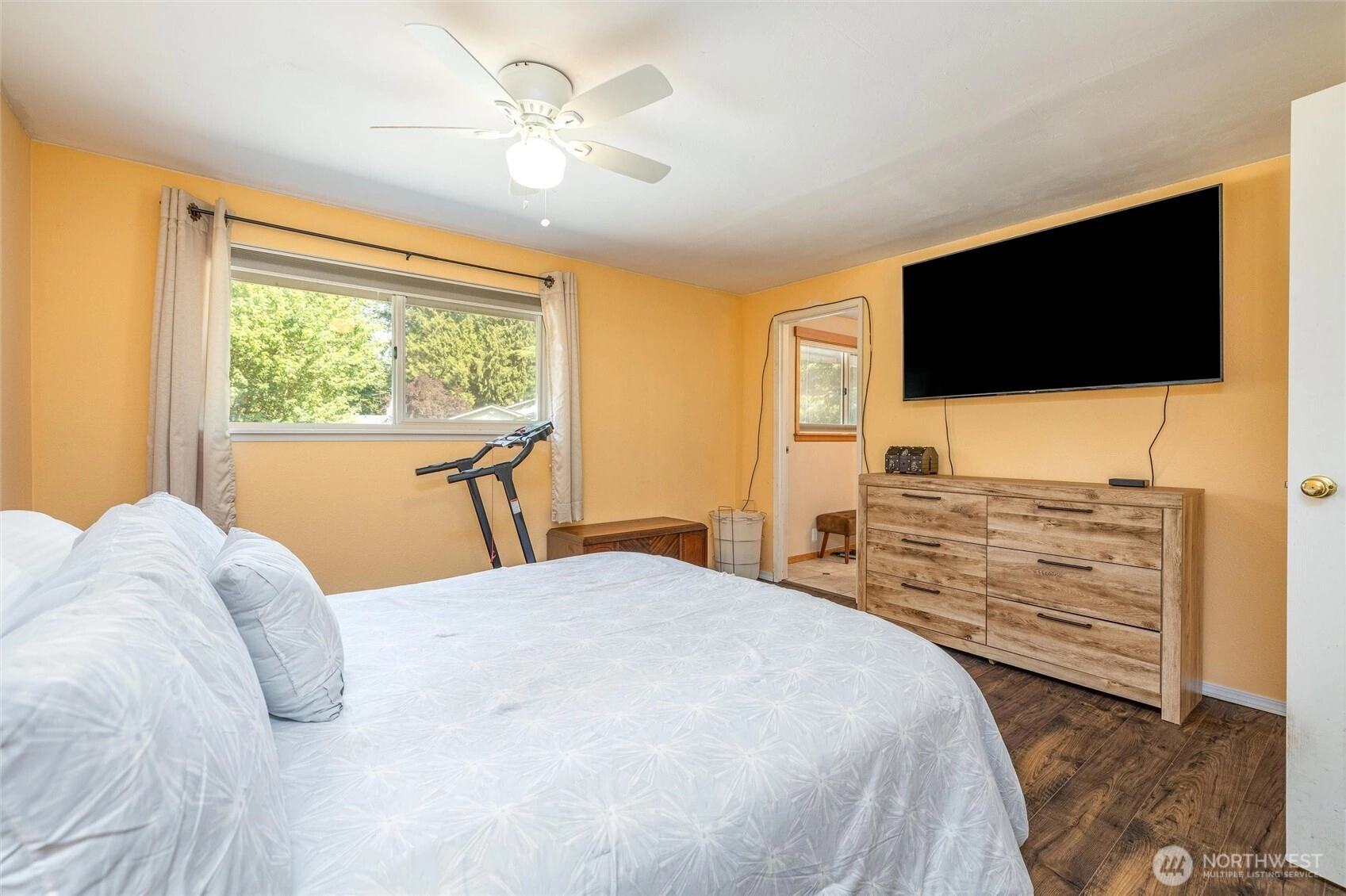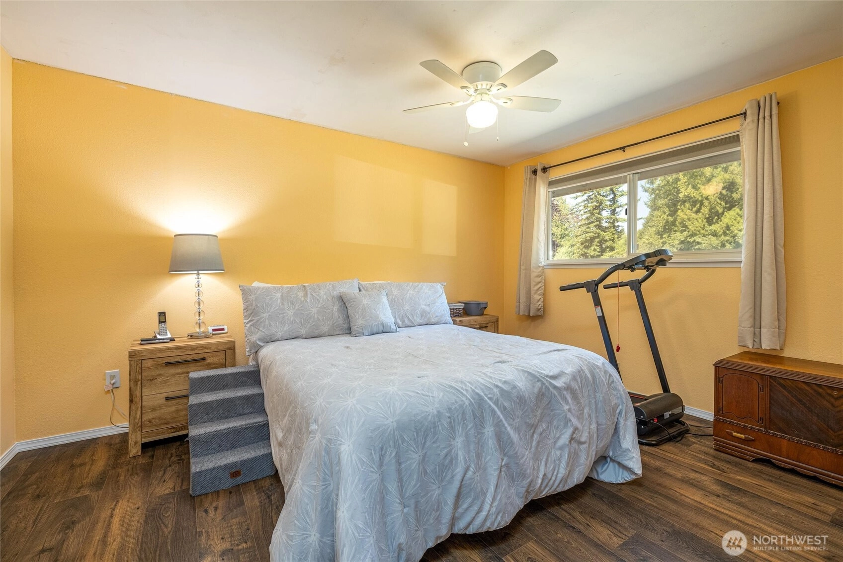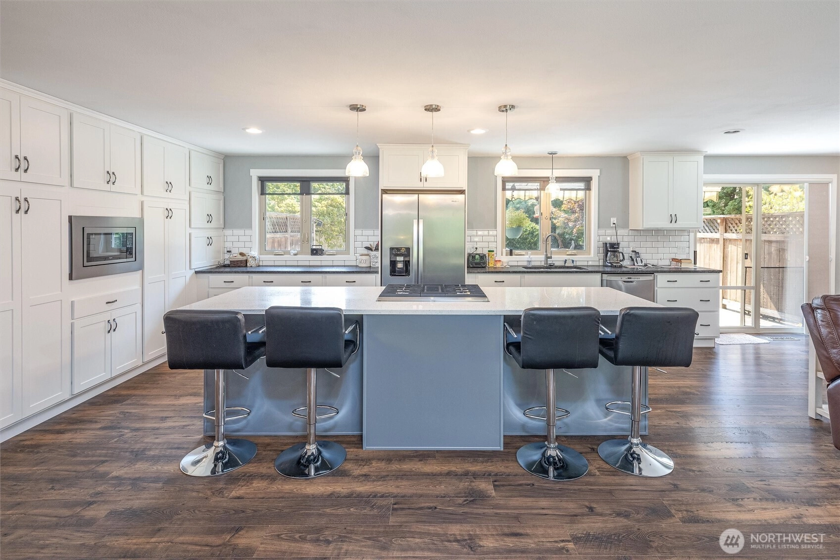 Wonderful home in a quiet, established neighborhood. This newly remodeled 3-bed,1.75-bath home has a flowing open floor plan. The kitchen has been fully updated w/ quartz counters, new SS appliances, plenty of cabinet storage w/ soft close doors. Eating space off the kitchen's large breakfast bar & spacious family room making this home perfect for entertaining. The primary bathroom has been fully remodeled with a large shower & vanities. Fully sheet-rocked garage with W/D hookups. Gas Heat Pump furnace & A/C. Extra space for 2nd Car Garage/Shop if needed. Located on a fenced, well-kept, 15,246 sf lot and a dead end street and cul-de-sac. Fruit trees too. Close to schools, parks, shopping, restaurants & less than 15 min to Bellingham.