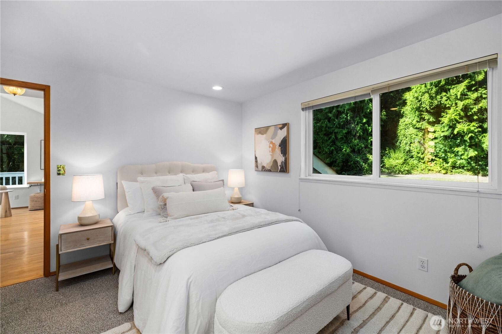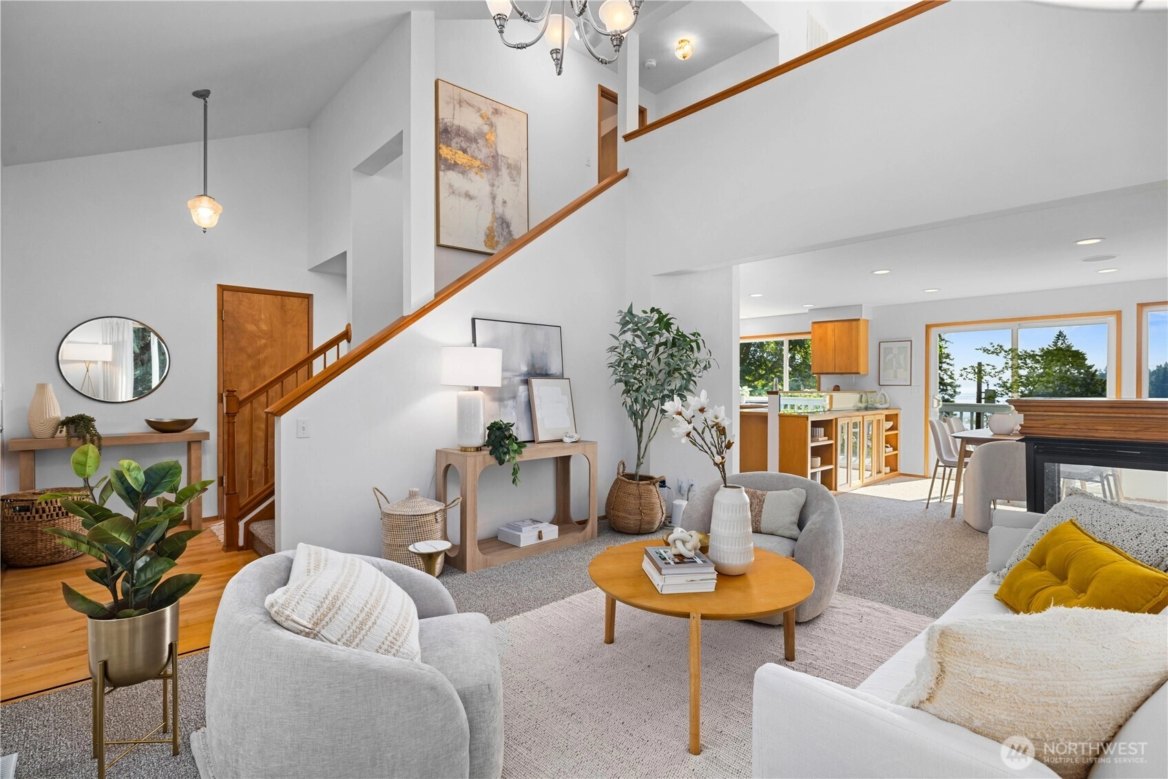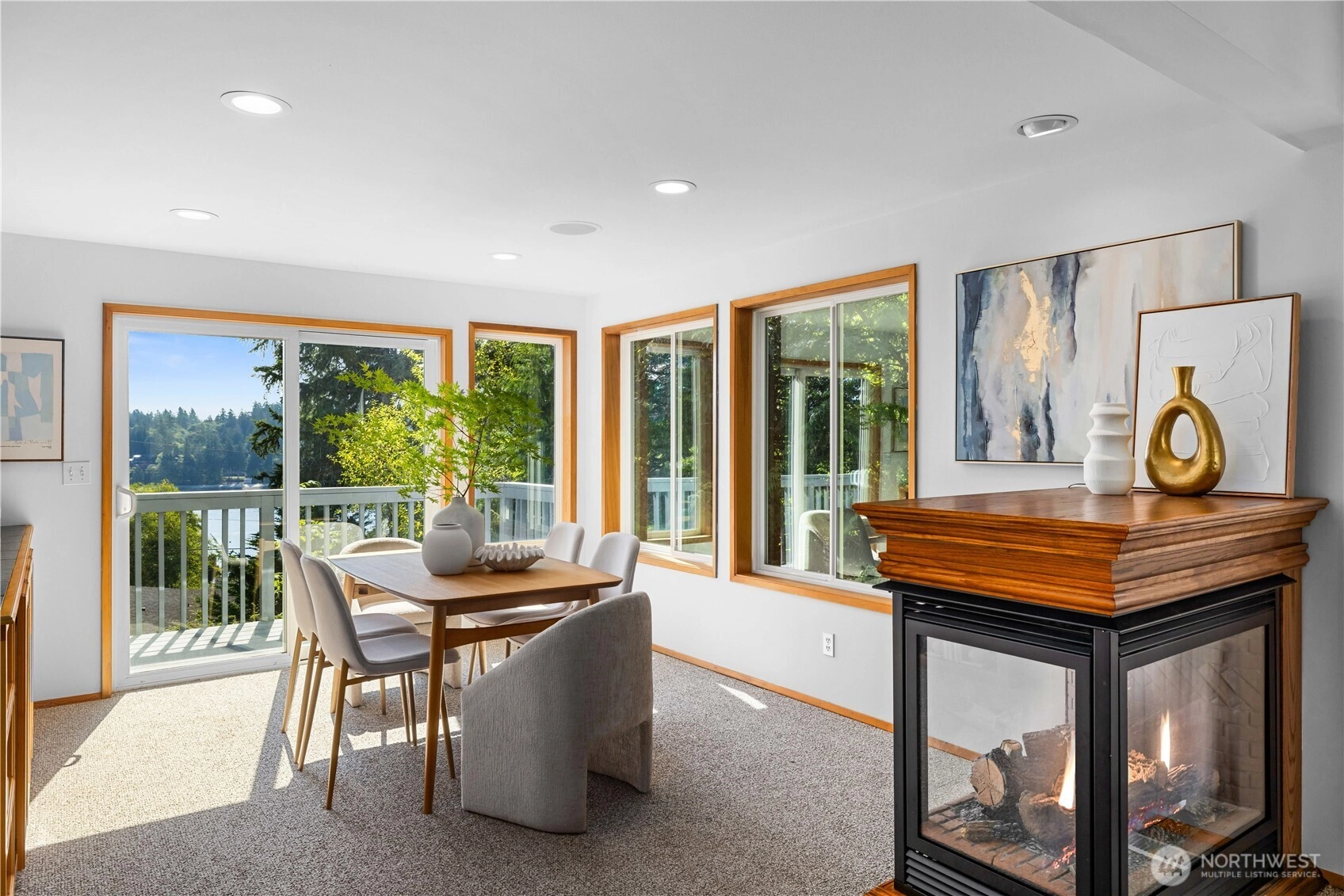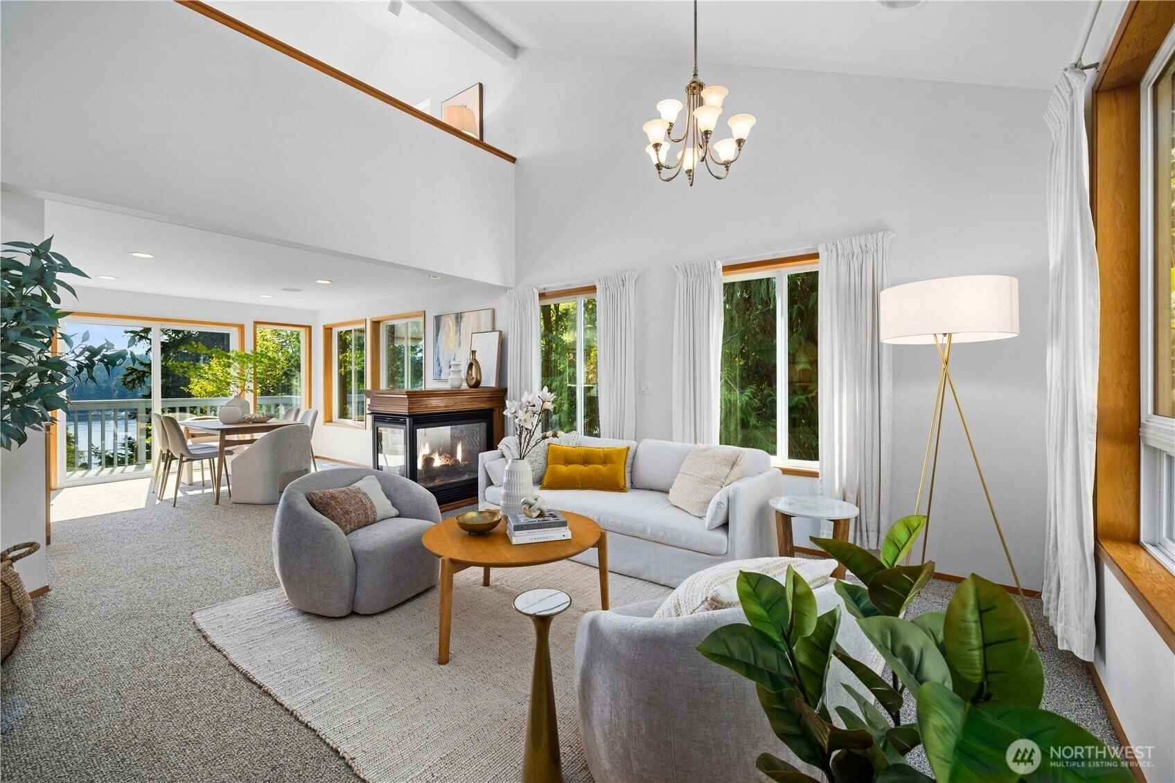 Soak in breathtaking views of Agate Pass, Puget Sound & mountains from nearly every room of this beautifully maintained home. Features & updates include vaulted ceilings, custom double-sided gas fireplace, hardwoods, new interior/exterior paint and new carpet. The kitchen & dining room w/ custom built cabinetry flow to deck overlooking garden & spectacular Sound view. The spacious, light & bright loft w/views and private deck leads to primary suite & ensuite bath & 2nd bedrm. Lower level w/ kitchenette, bedrm & separate entrance ideal as a guest suite. Property includes adjacent .08 acre parcel w/ trail to Division Ave. A short stroll leads to the community beach & sport court. This is Pacific Northwest living at it's finest - welcome home!