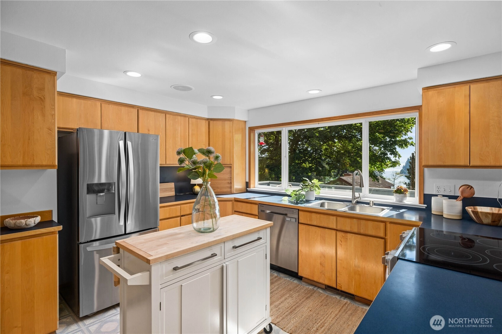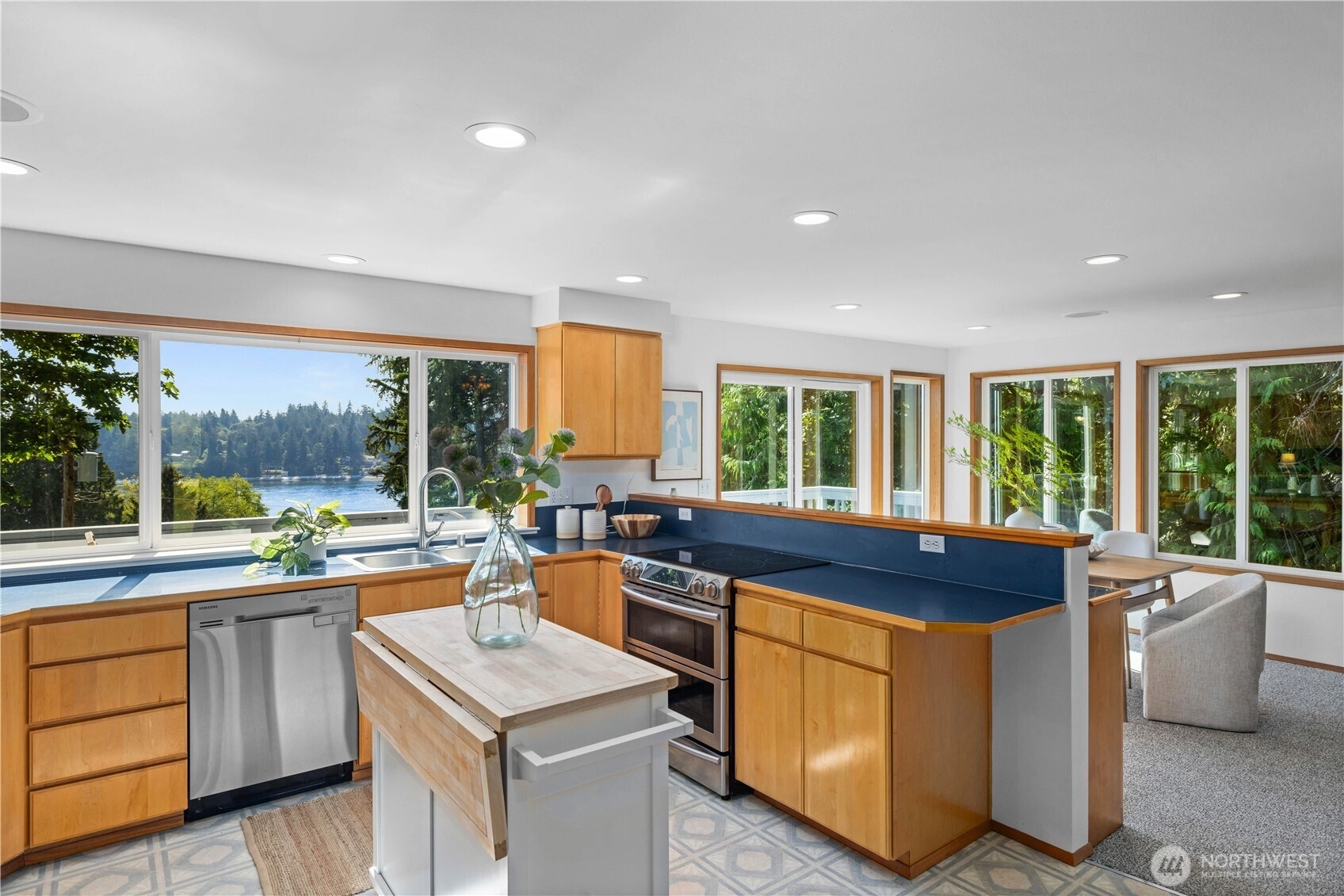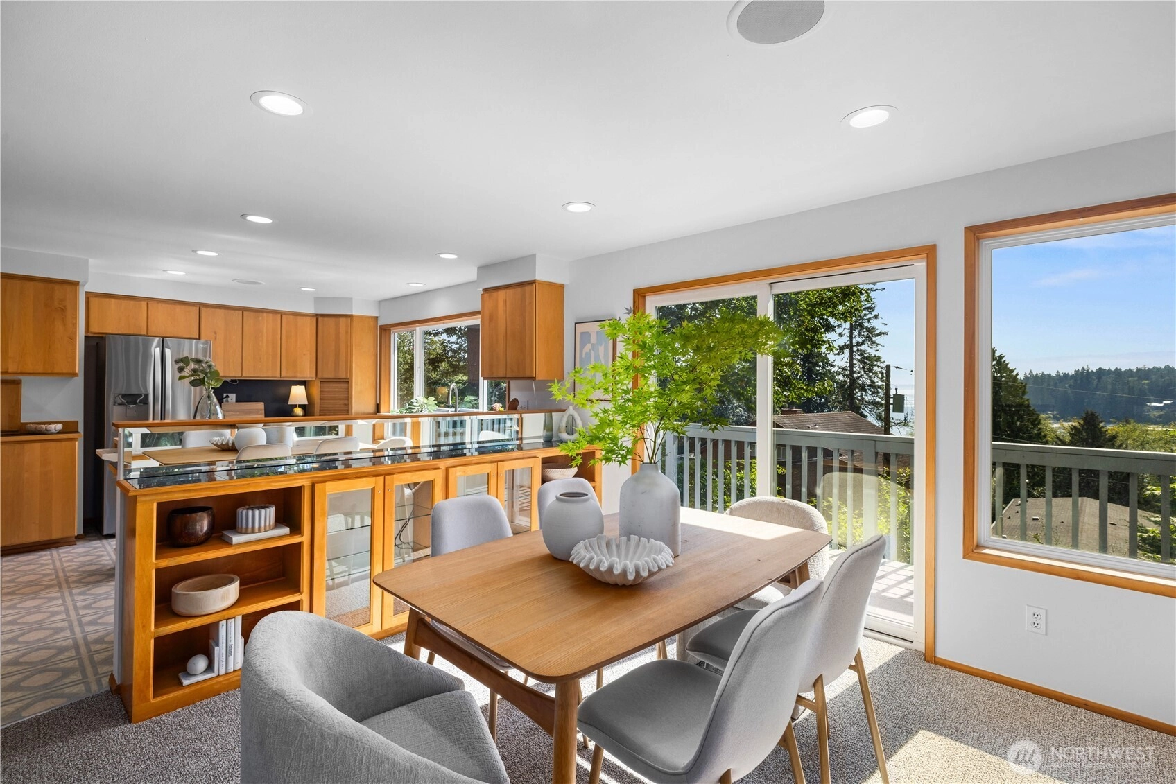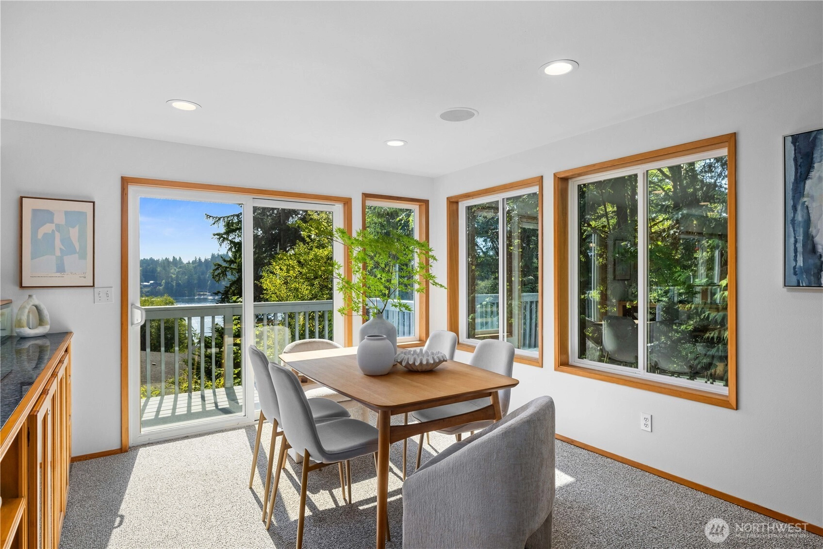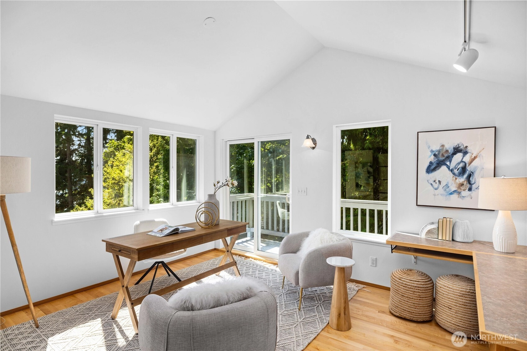 Soak in breathtaking views of Agate Pass, Puget Sound & mountains from nearly every room of this beautifully maintained home. Features & updates include vaulted ceilings, custom double-sided gas fireplace, hardwoods, new interior/exterior paint and new carpet. The kitchen & dining room w/ custom built cabinetry flow to deck overlooking garden & spectacular Sound view. The spacious, light & bright loft w/views and private deck leads to primary suite & ensuite bath & 2nd bedrm. Lower level w/ kitchenette, bedrm & separate entrance ideal as a guest suite. Property includes adjacent .08 acre parcel w/ trail to Division Ave. A short stroll leads to the community beach & sport court. This is Pacific Northwest living at it's finest - welcome home!