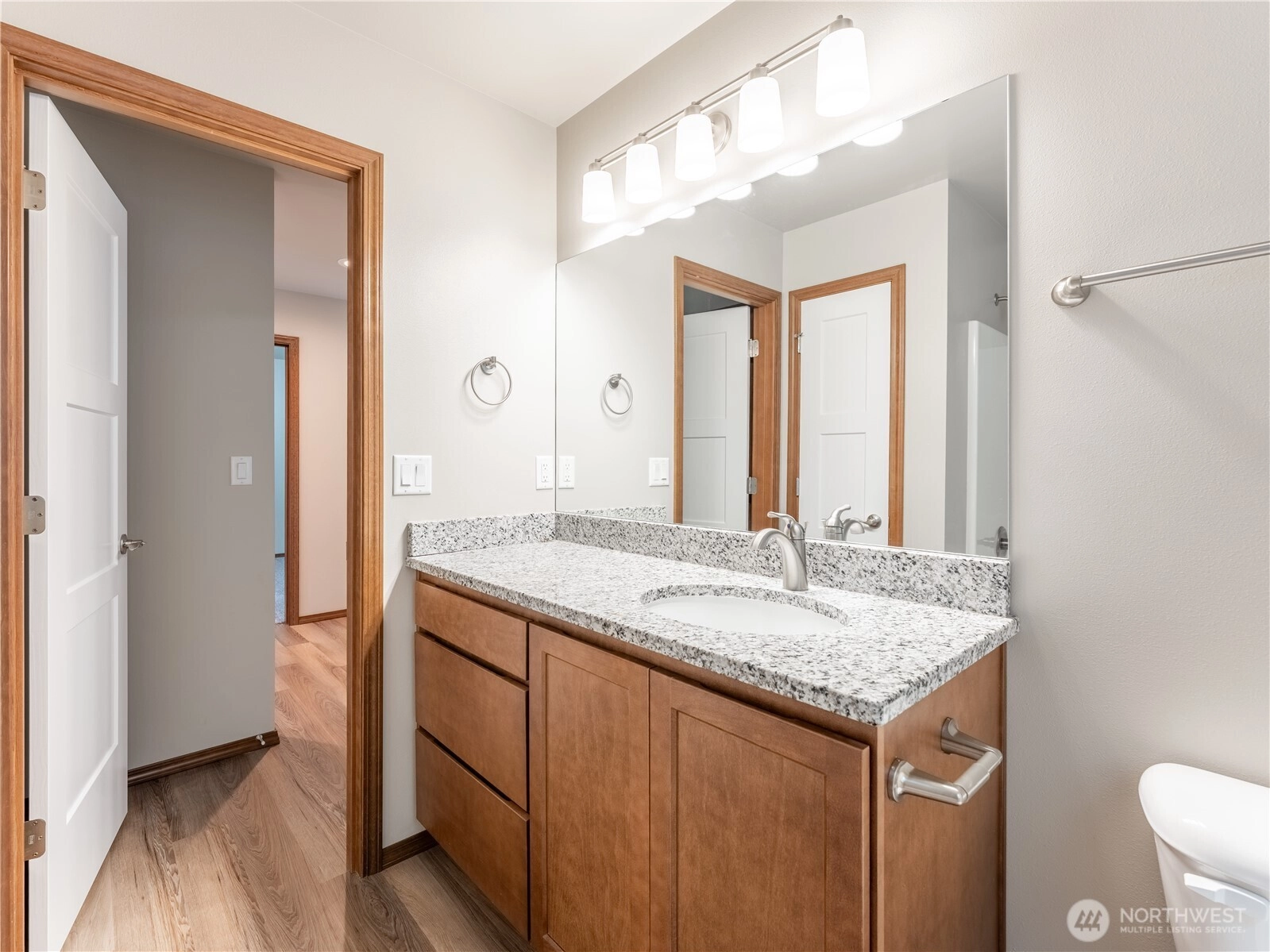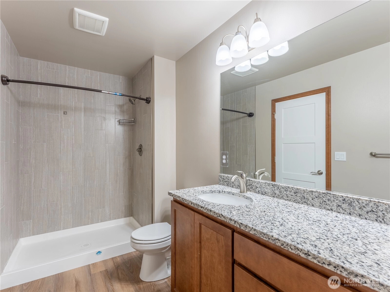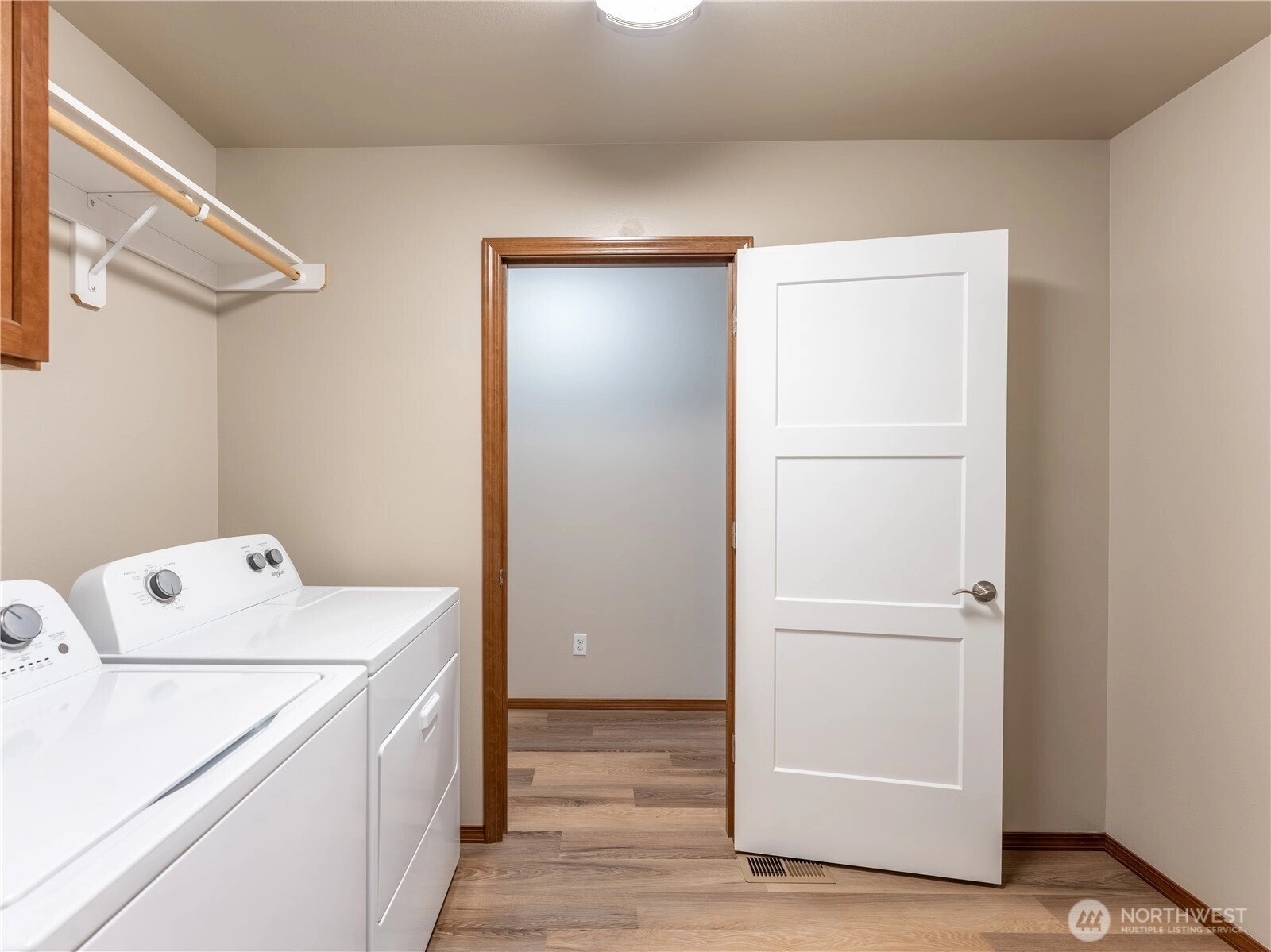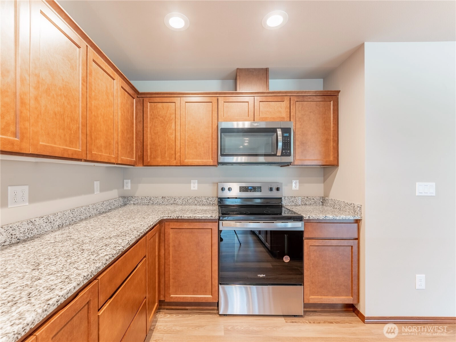 Wonderful one level home overlooking Hammond Lake with new carpet, lvp flooring and interior paint! This beautiful plan frames the views and is fully landscaped with fencing and RV Parking. The great room is spacious. The kitchen boasts granite counters, lvp flooring, an island and refrigerator and overlooks Great room and dining with slider to patio. The primary suite is oversized and boasts a tiled shower, walk in closet and granite counters. The 2nd and 3rd bedrooms share a full bath with granite counters. Laundry room offers cabinetry and hanging rod as well as a washer/dryer! Home comes with blinds too! This great location boasts a walking path to Hammond Lake and Rock Island Golf Course!