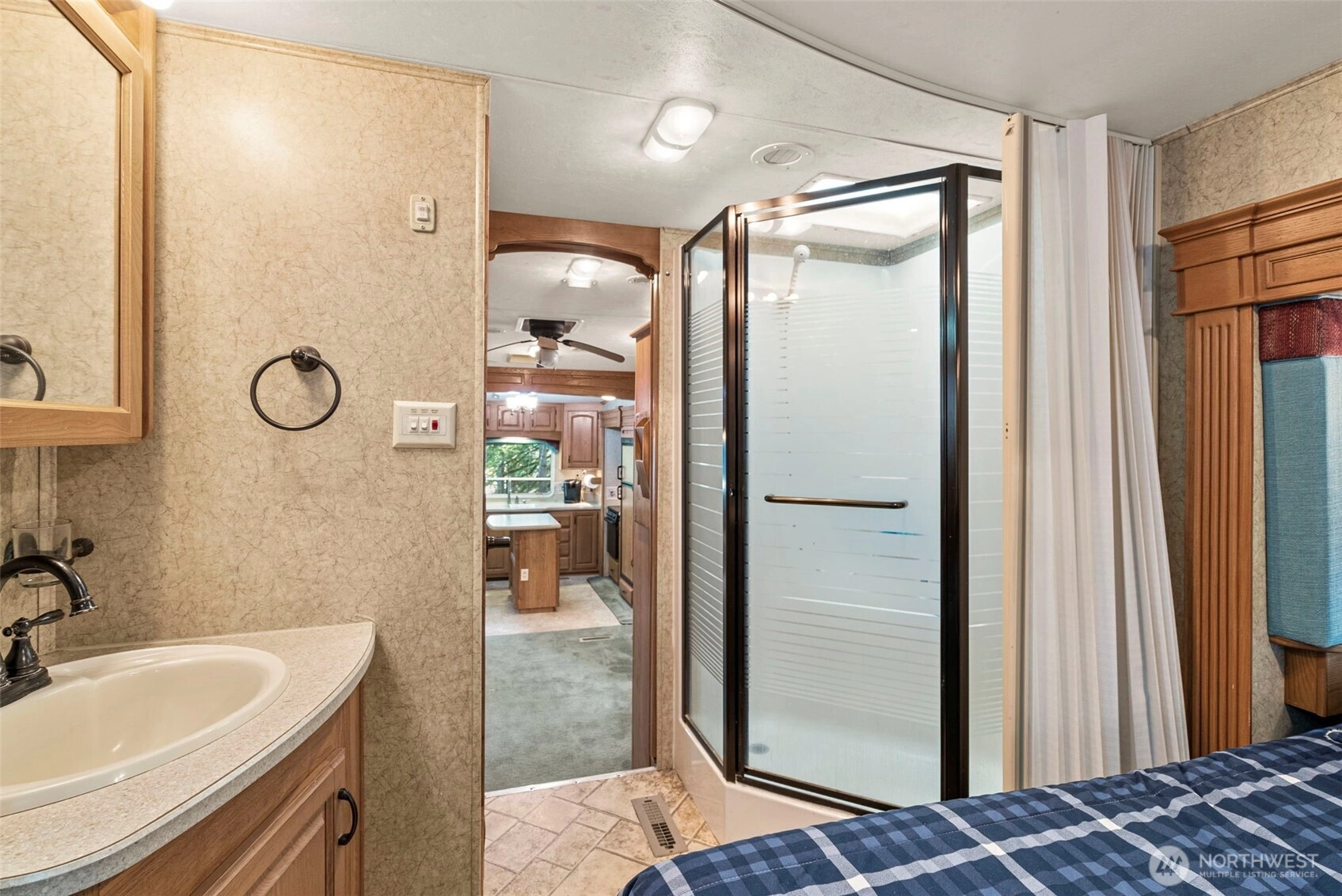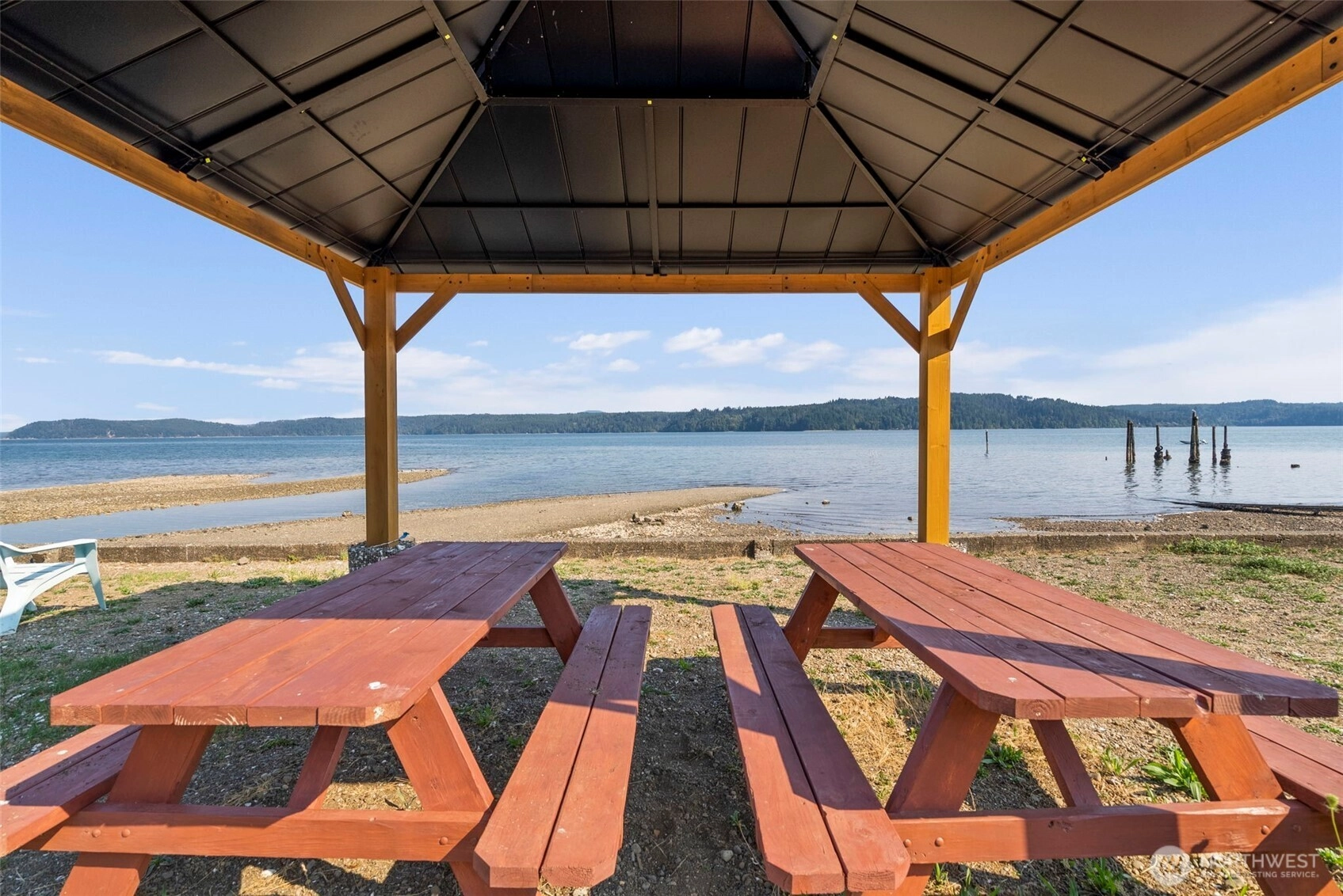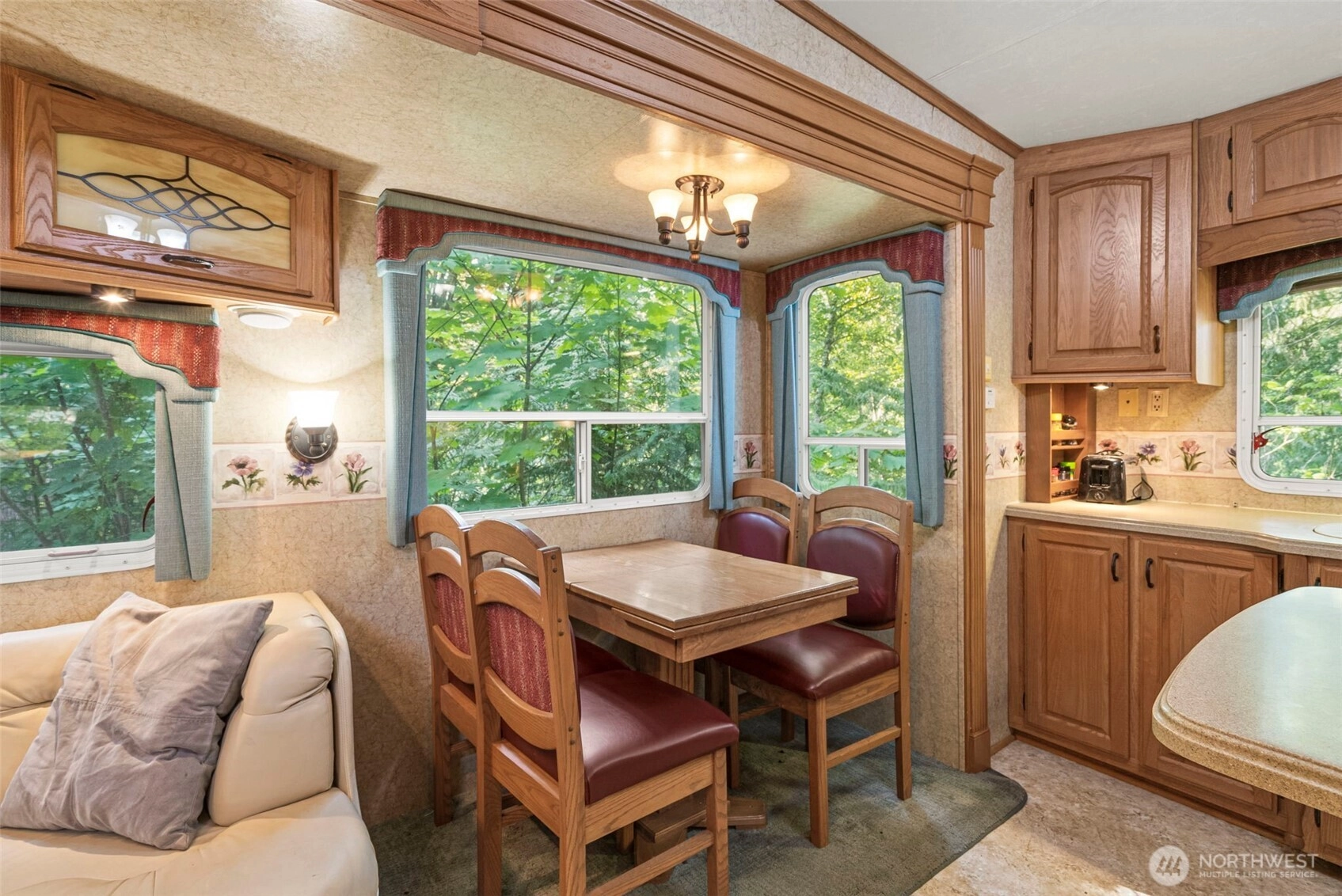Tucked away beneath the Evergreens, this private 1/4-acre retreat is the perfect blend of relaxation & recreation. The property includes a 2007 Jayco Designer camper trailer & studio outbuilding w/ new floors making it ideal for guests or a creative space. Enjoy outdoor living year-round w/ a covered hangout area & a cozy wood-burning stove + fire pit for gathering. The quiet setting offers the ultimate escape yet comes w/ community amenities including a private pool, private beach & boat launch for endless activities. This property is a unique opportunity for those seeking peace, adventure & a place to make memories. Both power, water & holding tank are on site, making this property perfect for the occasional camper or year-round resident.