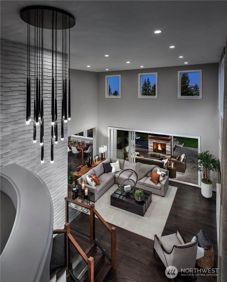 Upgrades abound in this spectacular Toll Brothers Model Home. The sophisticated tiled entry wall leads you to the open living space with commanding 19' ceilings & fireplace. The adjacent stunning chef’s kitchen has upgraded appliances & custom island w/waterfall quartz edge & light filled dining area. Multi-stacking slider doors open to outdoor covered heated patio, fireplace w/ fully fenced yard backing to private trees, a chef’s garden with vegetables ready to harvest & gate access to a trail leading to the elementary school & views of Mt. Si! A true sanctuary in a main floor guest bedroom w/fireplace & bath. An immense primary suite reminiscent of a lodge experience w/dual walk-in closets & spa like en suite. Simply beautiful.