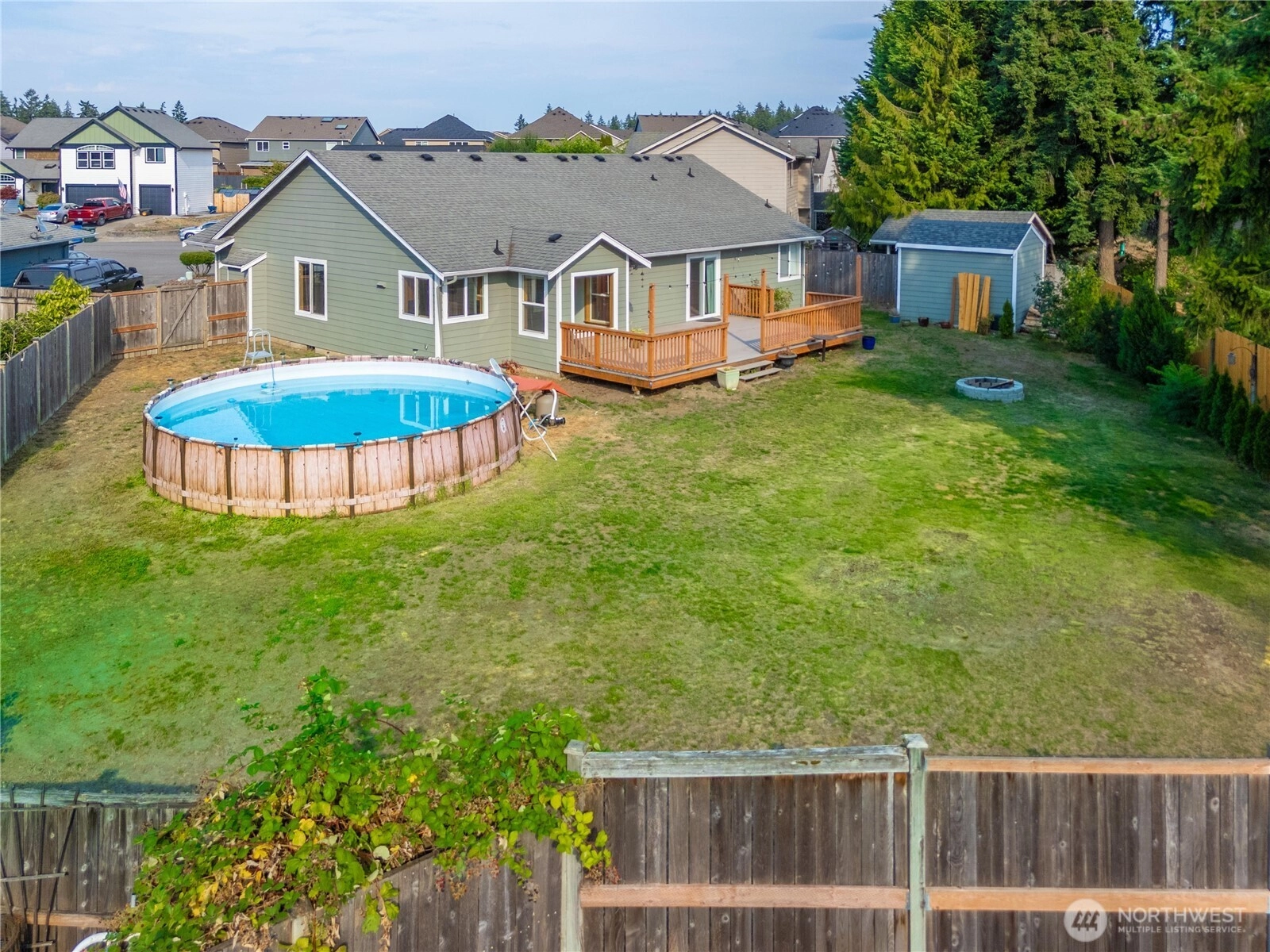 Well maintained Rambler on a quarter acre lot, at the end of a quiet cul-de-sac. This 3 bedroom home boasts vaulted ceilings, engineered hardwood flooring. Spacious light filled kitchen with all the appliances and plenty of counter space. AC and hot water installed in 2019. New siding and paint in 2021. Double doors leading to the large primary bedroom with 5 piece bath, walk in closet and sliding doors to the back yard. Newly updated hall bath offers a beautiful walk in shower. French doors off the kitchen leads to a large deck and huge fully fenced back yard with a new (built on the lot) shed and above ground pool for summer fun. Located close to schools, shopping and everything South Hill has to offer! You won't be disappointed!