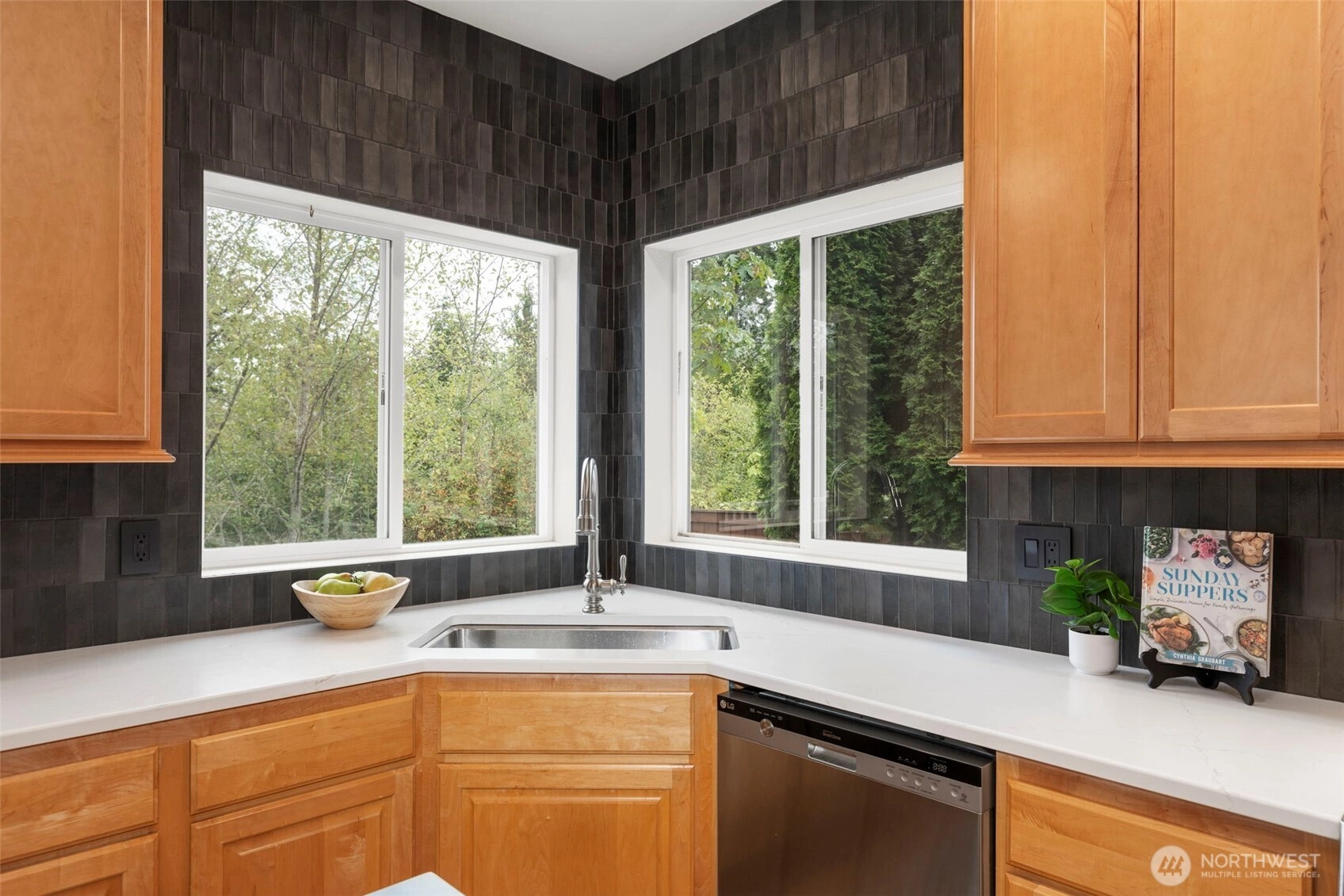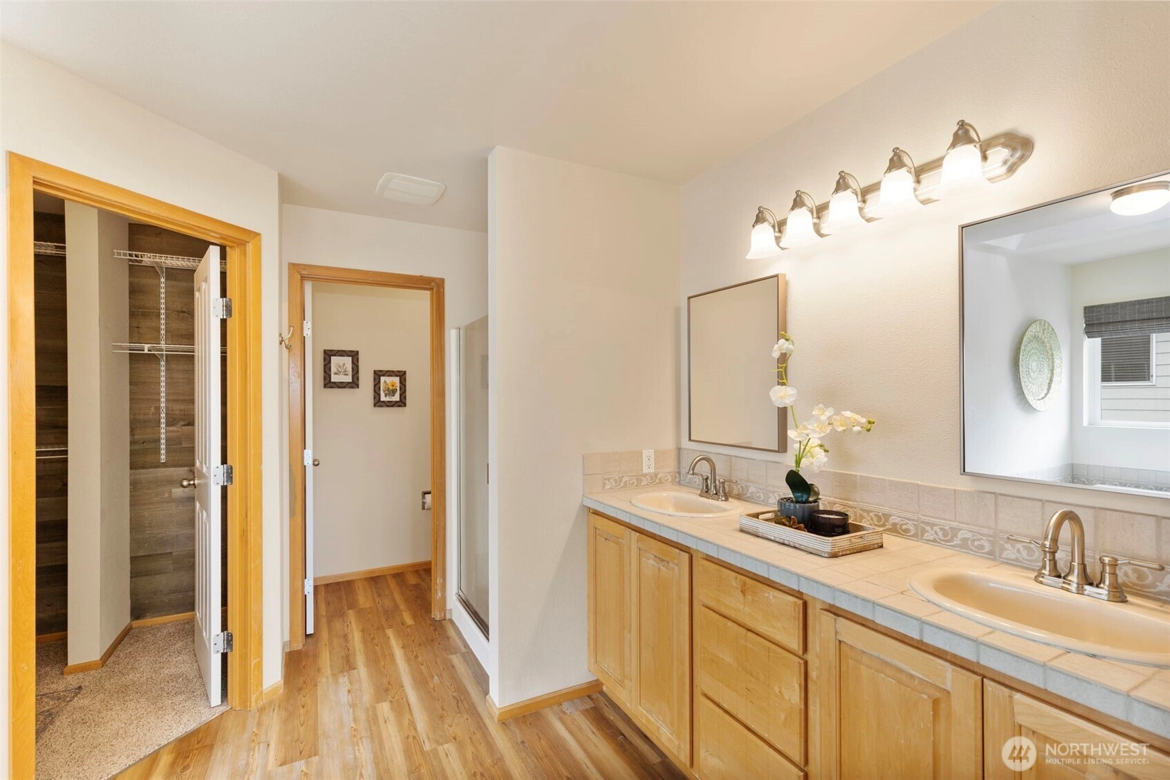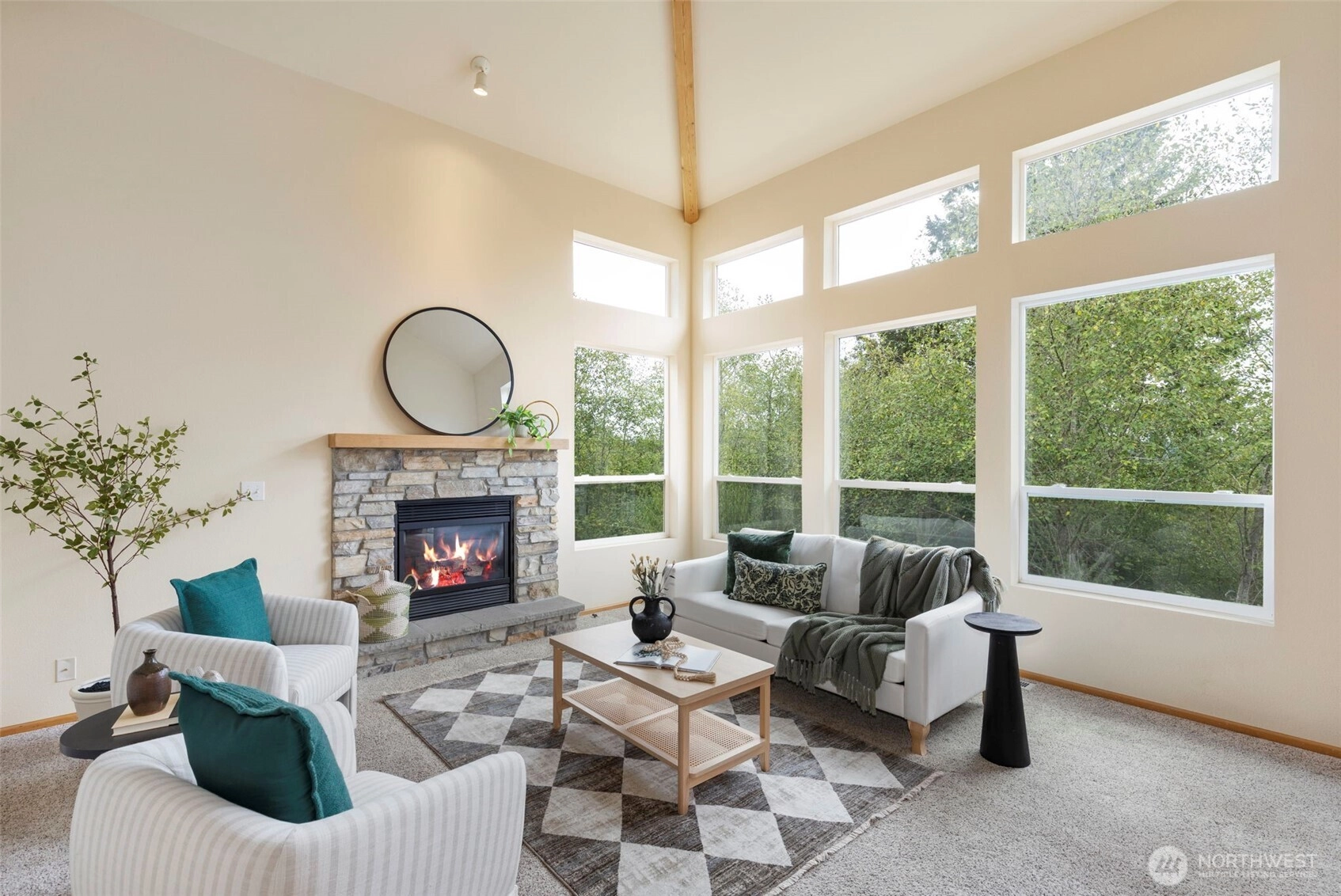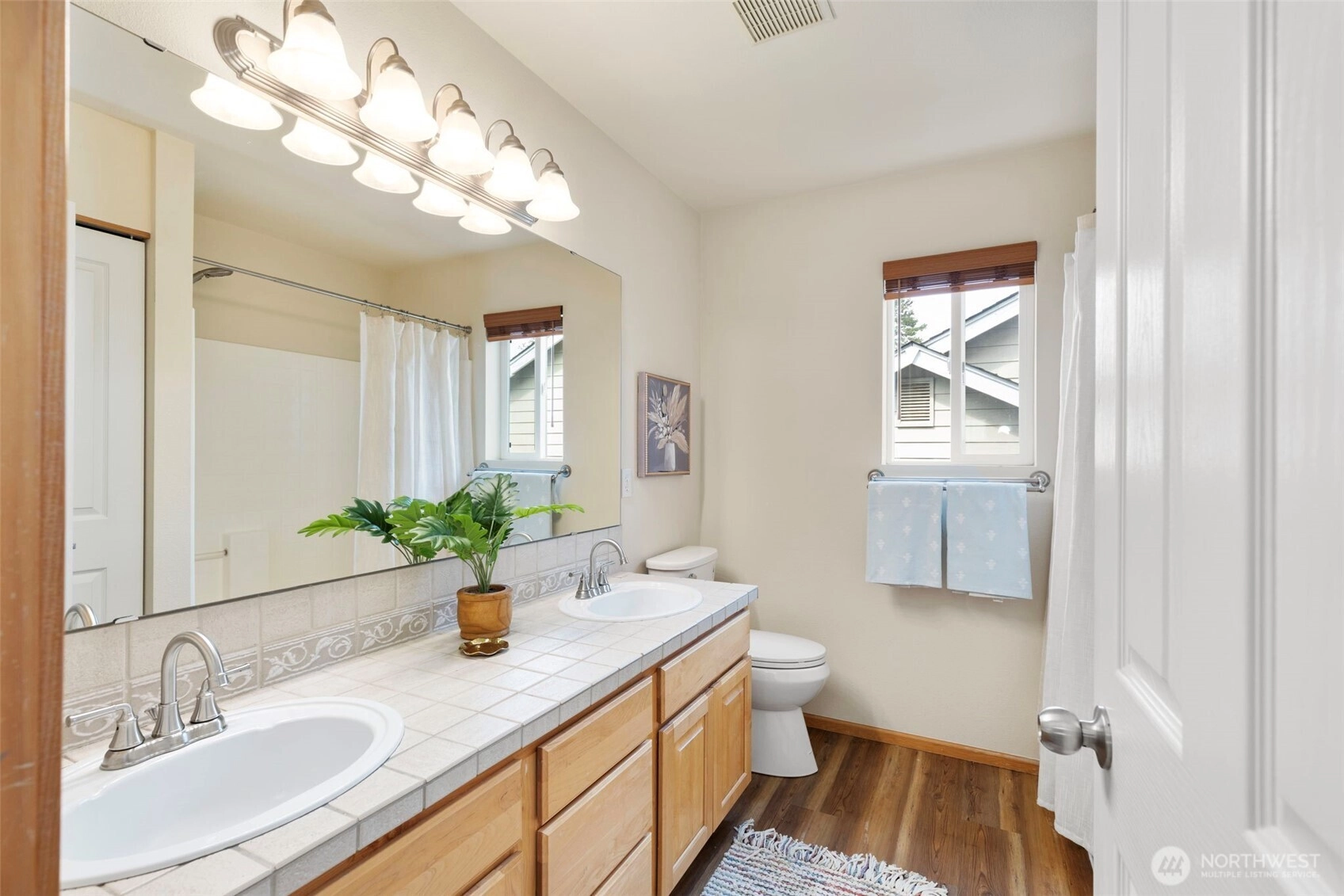 Beautifully maintained 4-bedroom home in quiet neighborhood of Meredith Heights in Poulsbo! Enter to vaulted ceilings and hardwood floors. Open and bright living room with gas fireplace. Recently updated kitchen with quartz counters, SS appliances, large island and slider to backyard with new Trex deck. Main floor bedroom, 3/4 bath and utility room. Spacious upstairs primary suite with 5pc bath and walk-in closet. Two additional bedrooms and full bathroom with double vanity, plus a huge family room! Fully fenced back yard, oversized two car garage, sprinkler system & wired for a generator! Perfectly located close to schools, downtown Poulsbo, shopping, dining and easy access to Highways, ferries & Navy Bases for an easy commute.