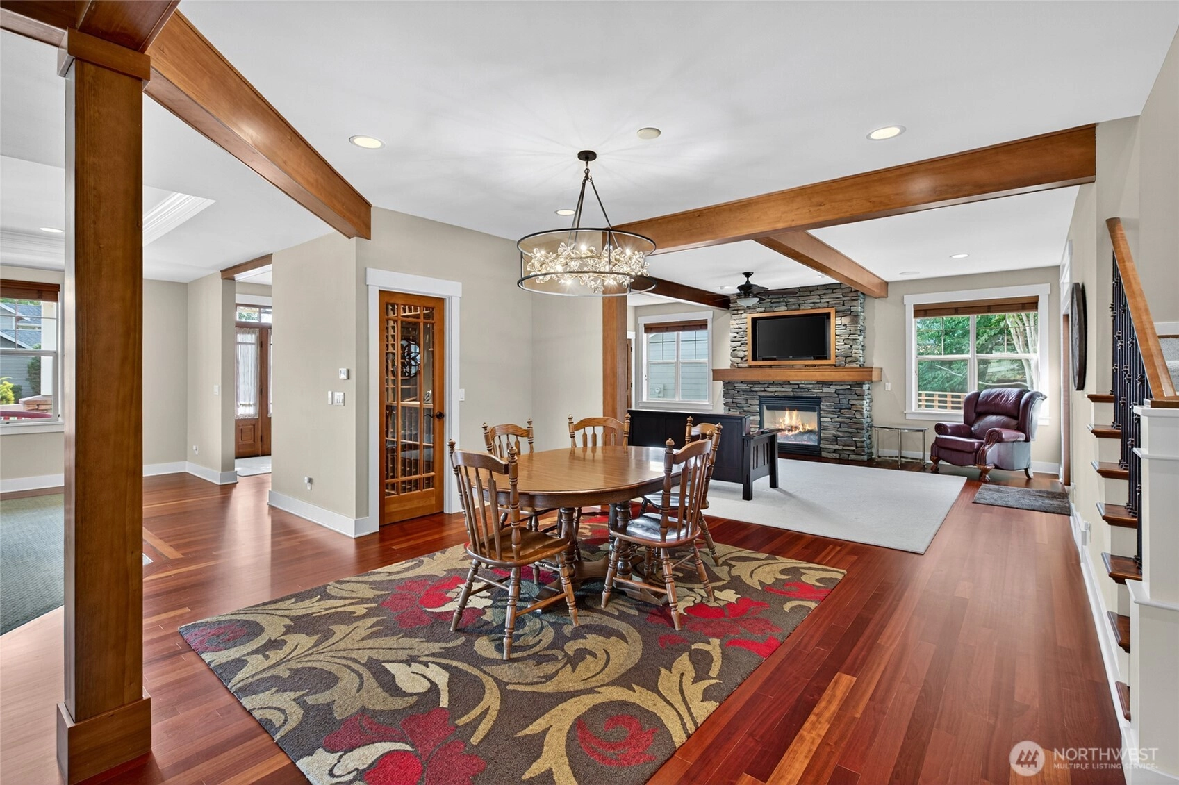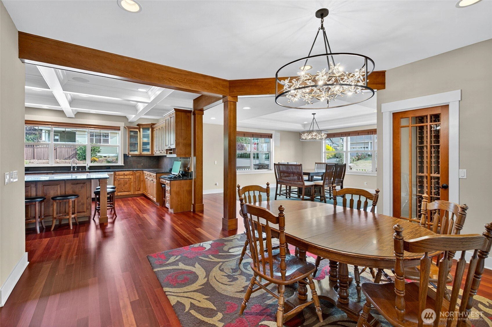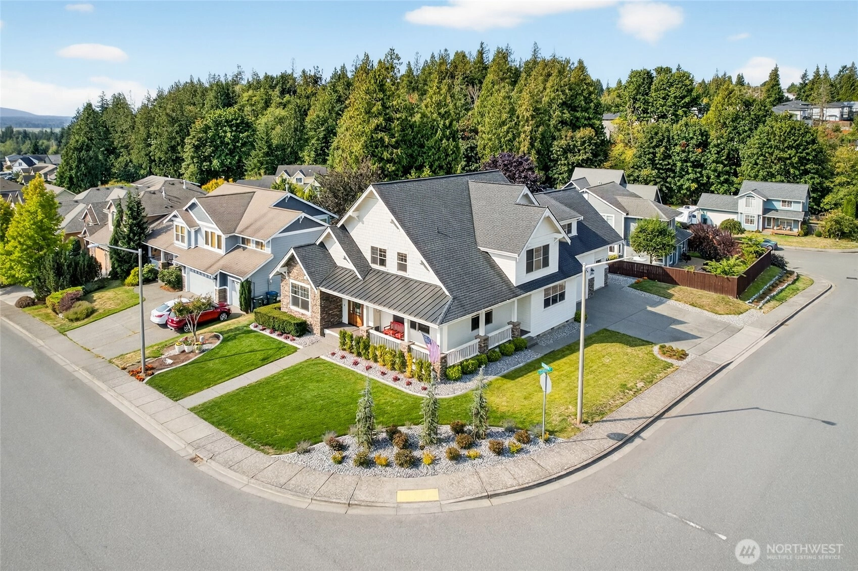 Poised proudly on a corner lot in the heart of Ferndale with a wraparound deck, this home welcomes you with timeless craftsmanship & luxury. A generous living & formal dining room, gourmet chef's kitchen with coffered ceilings, bespoke cabinetry, a large gathering island & 314-bottle wine cellar. The main floor is hugged by custom millwork, crown molding & Brazilian Cherry floors. An awe-inspiring primary suite is set off by a vaulted ceiling, skylights, & fireplace. Relax in the adjoining spa-like en suite. 4 bedrooms upstairs, including a huge bonus room with cozy dormers. This home leaves you wanting nothing with a 3-car garage, solar, A/C, lawn sprinklers, custom exterior lighting, 10x20 shed, & much more. Where luxury meets livability!