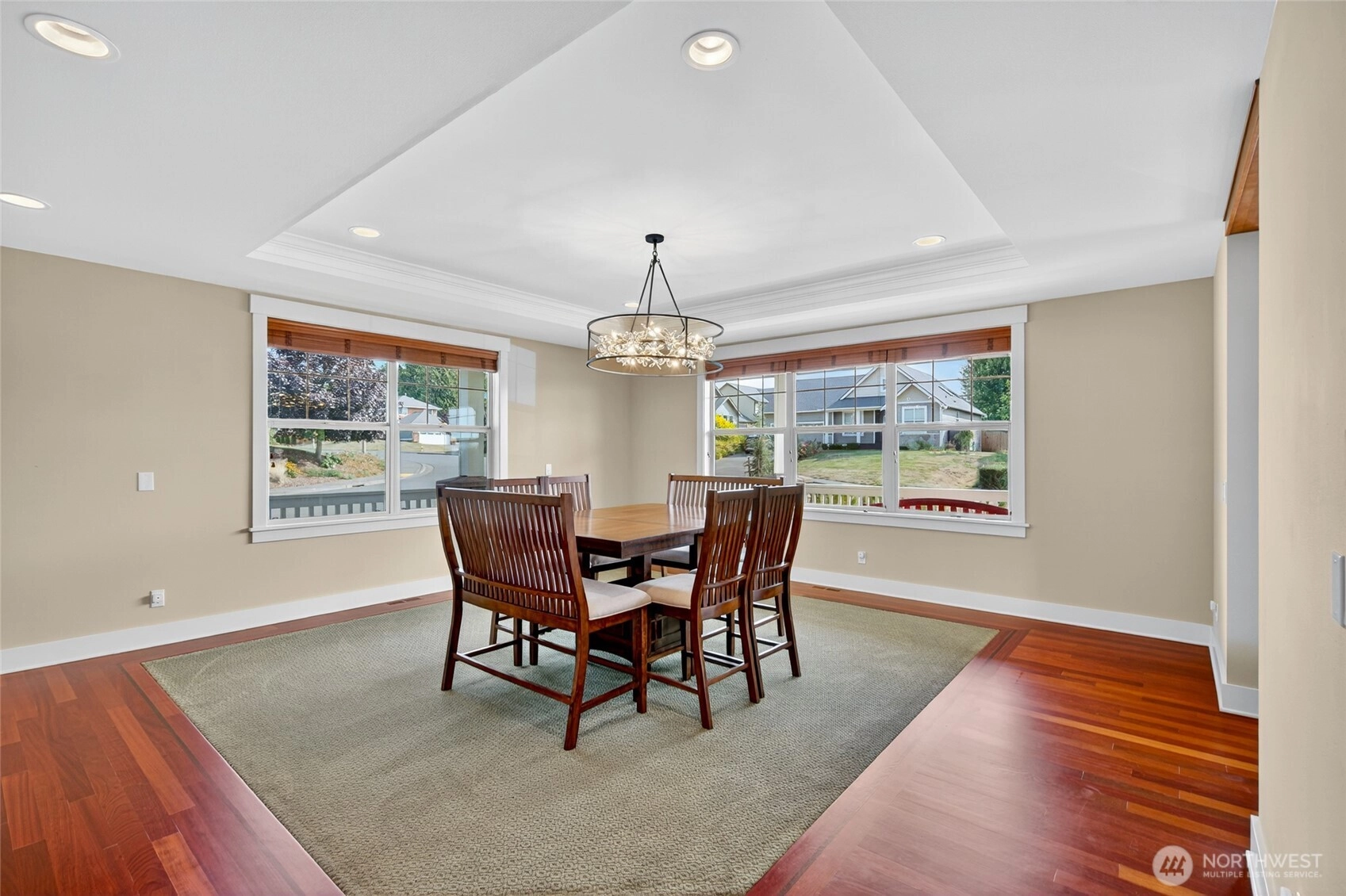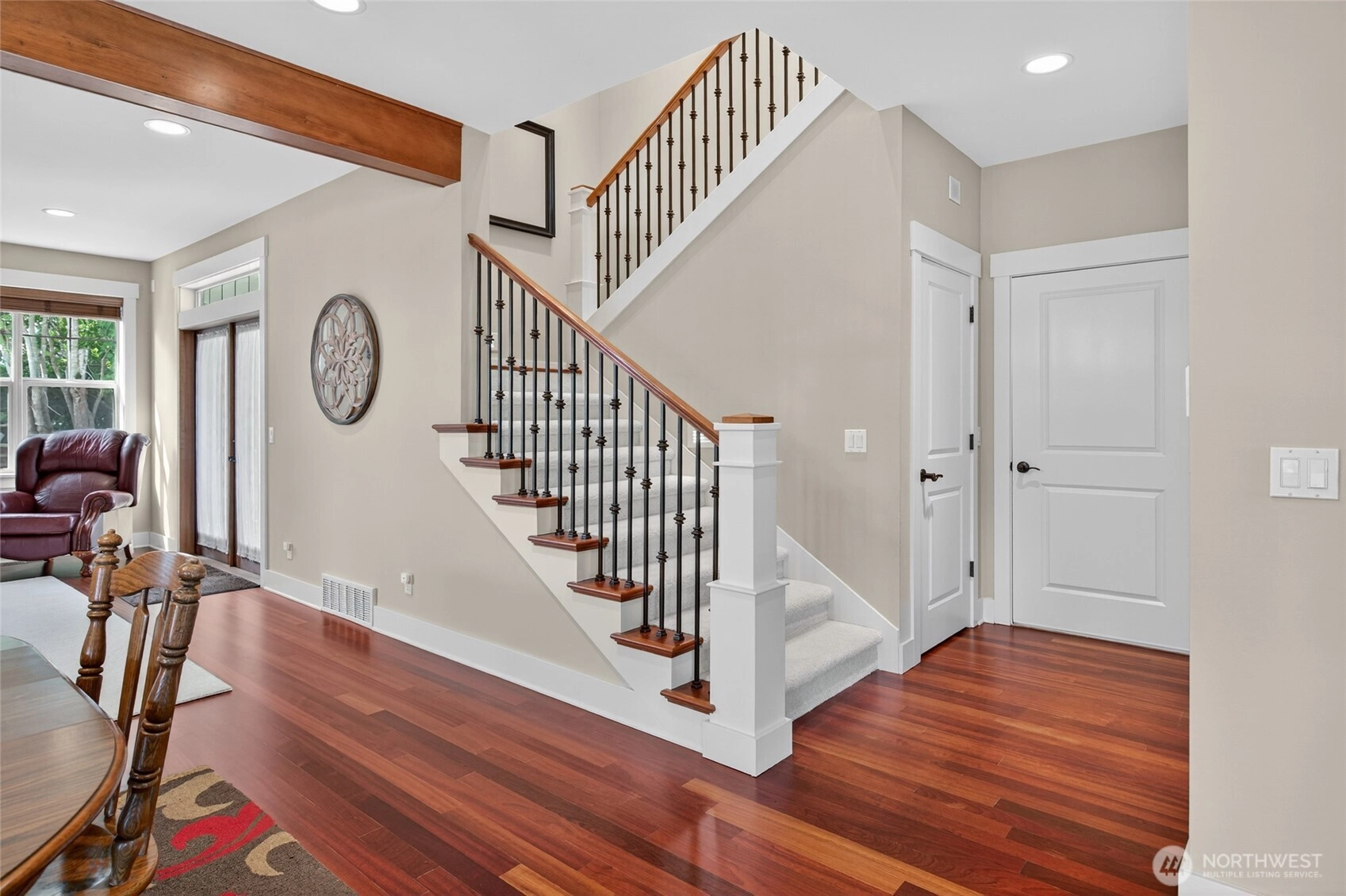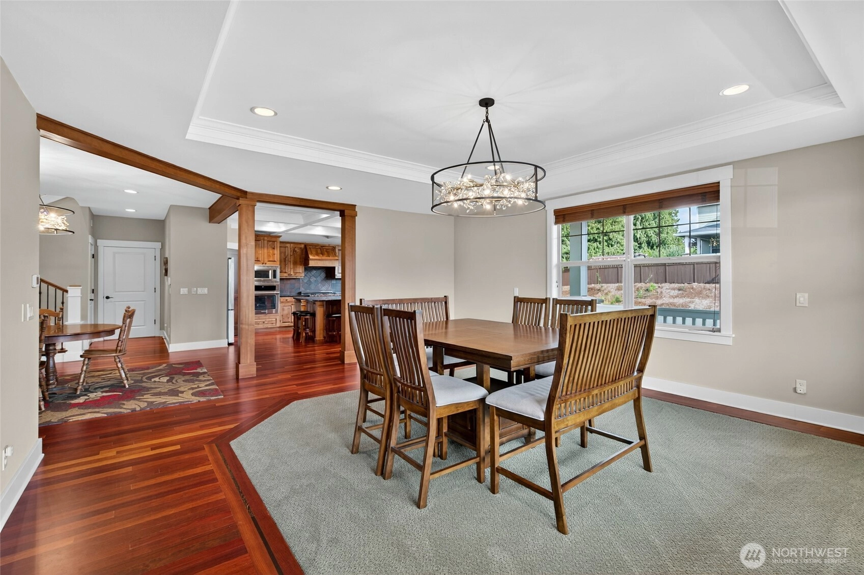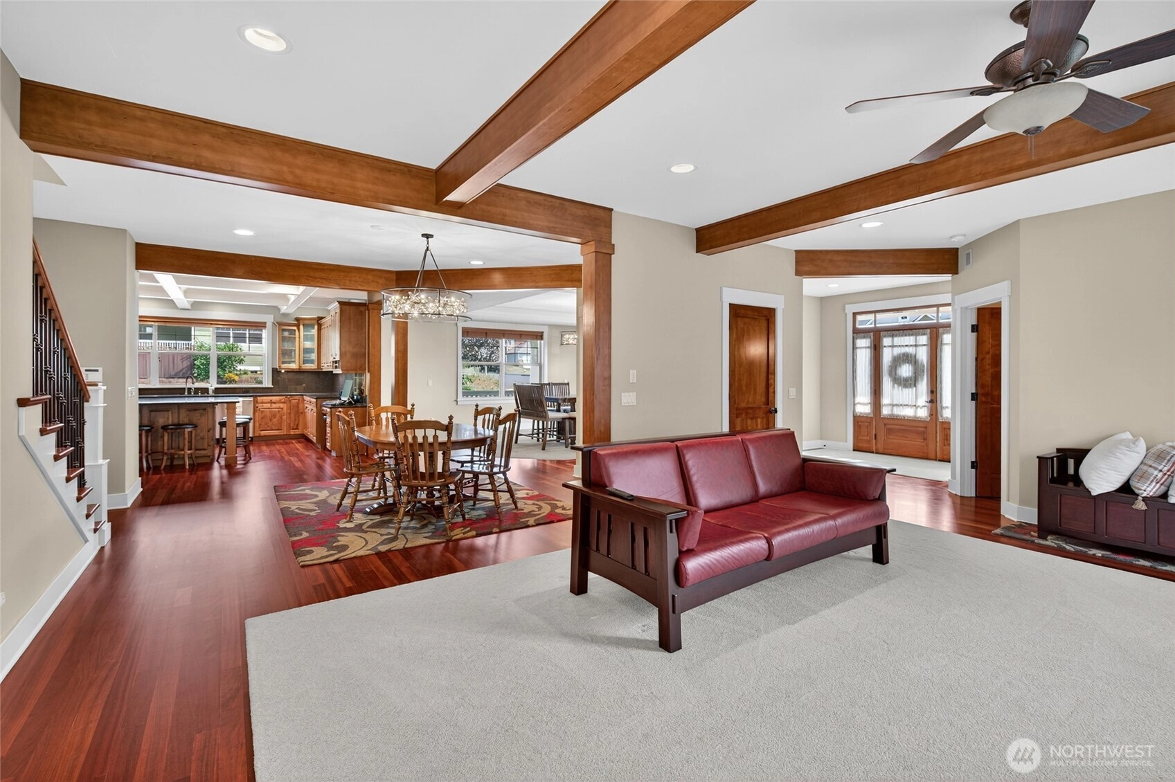 Poised proudly on a corner lot in the heart of Ferndale with a wraparound deck, this home welcomes you with timeless craftsmanship & luxury. A generous living & formal dining room, gourmet chef's kitchen with coffered ceilings, bespoke cabinetry, a large gathering island & 314-bottle wine cellar. The main floor is hugged by custom millwork, crown molding & Brazilian Cherry floors. An awe-inspiring primary suite is set off by a vaulted ceiling, skylights, & fireplace. Relax in the adjoining spa-like en suite. 4 bedrooms upstairs, including a huge bonus room with cozy dormers. This home leaves you wanting nothing with a 3-car garage, solar, A/C, lawn sprinklers, custom exterior lighting, 10x20 shed, & much more. Where luxury meets livability!