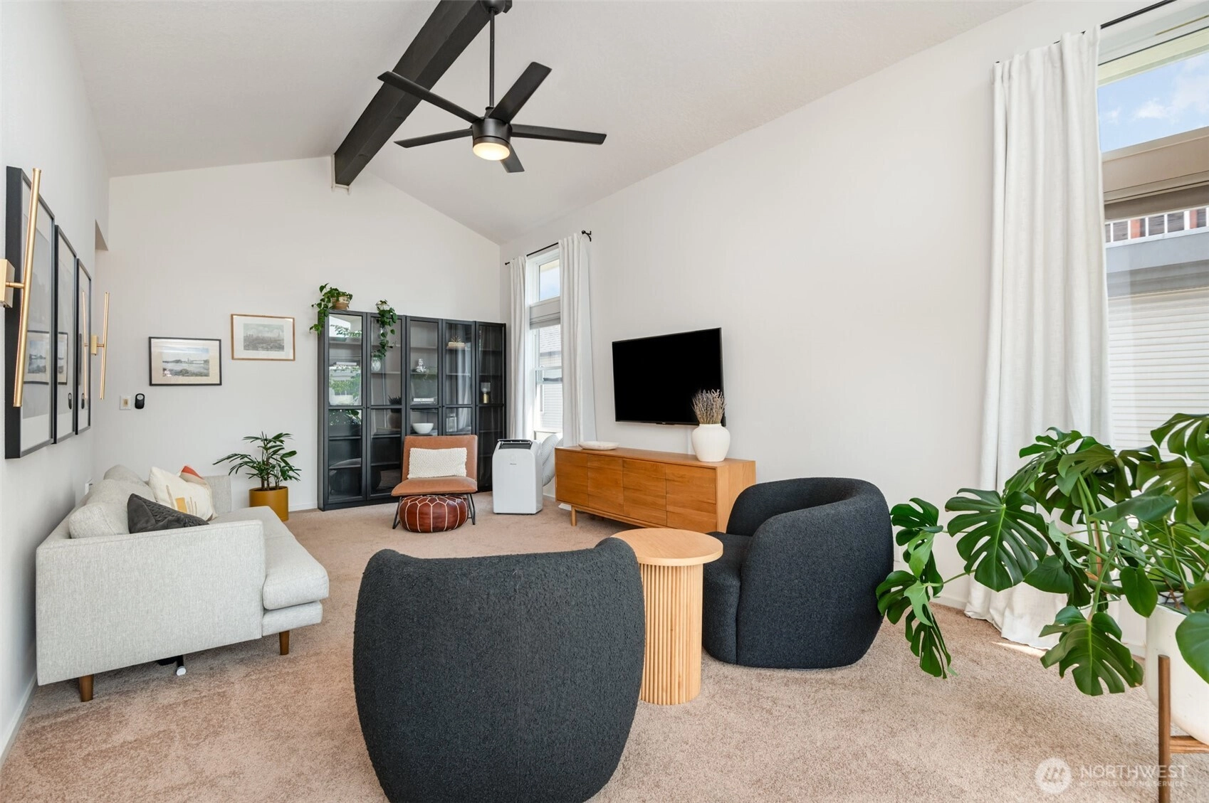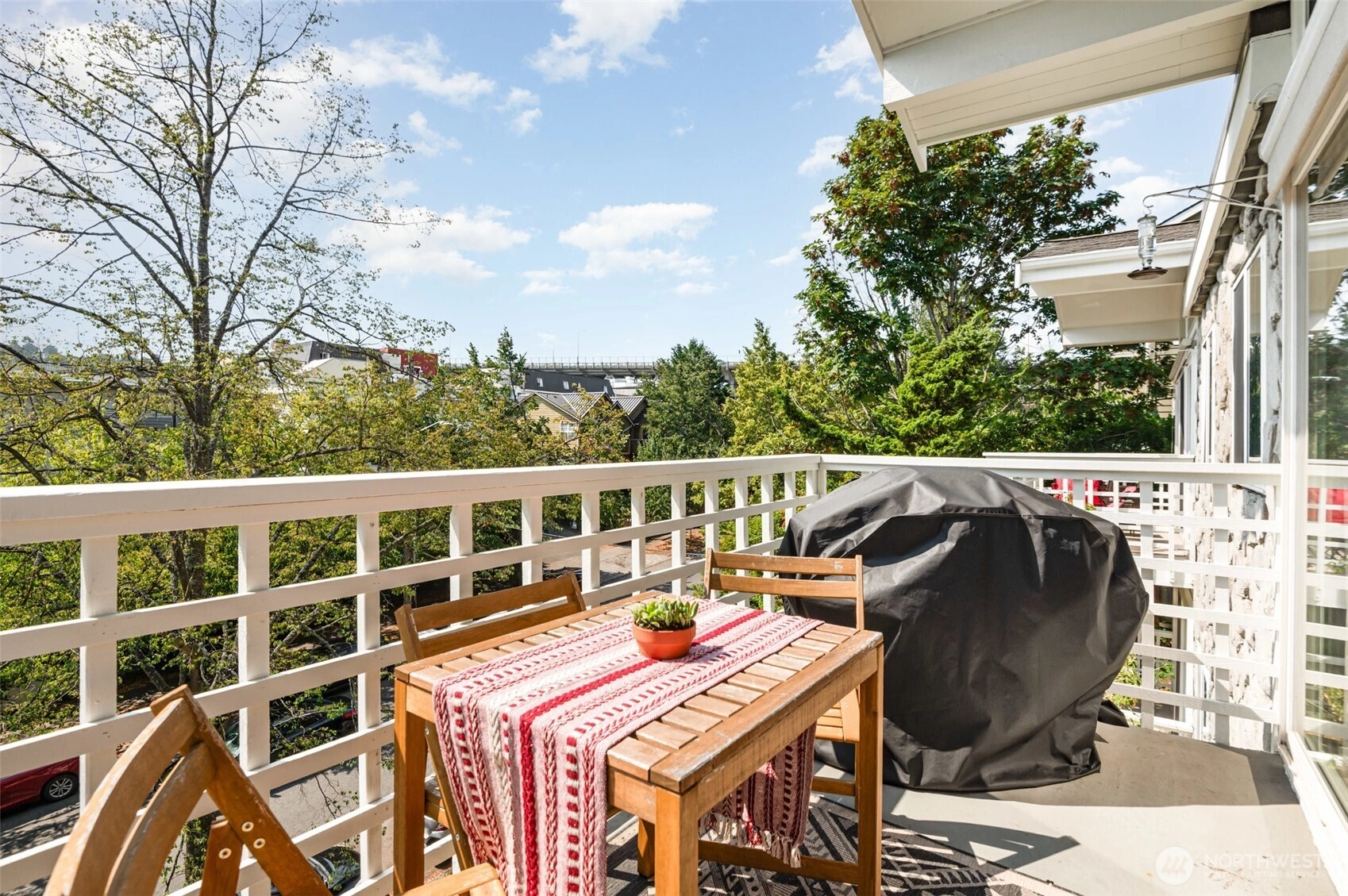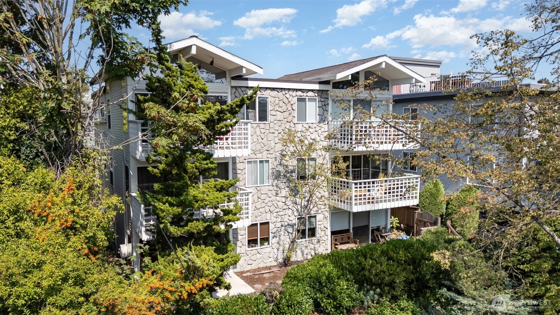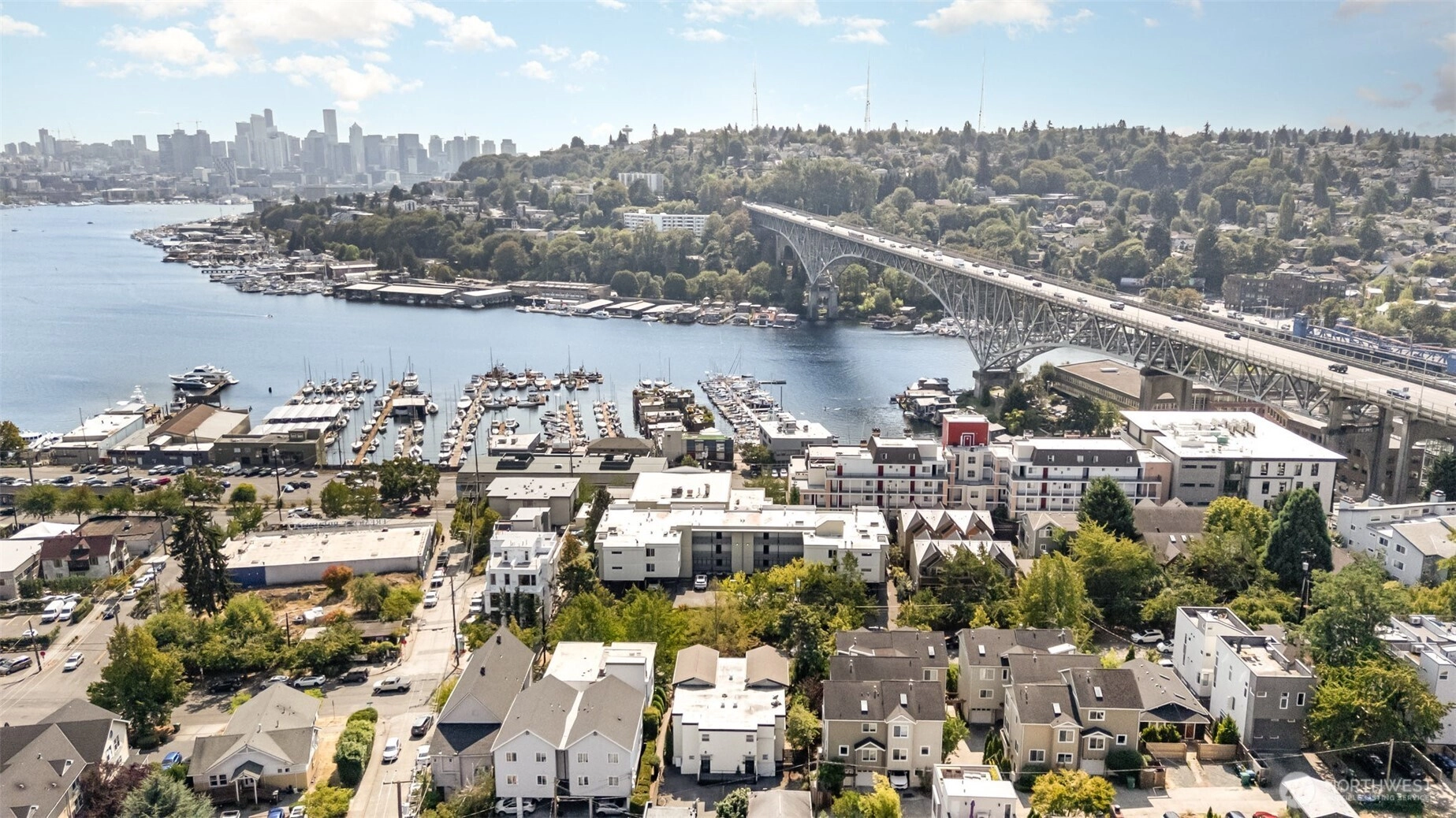 Welcome to Canal View! Rare opportunity in heart of Fremont. Penthouse unit with no shared walls & vaulted ceilings in Great room showcasing natural light & tree-lined views. Updated kitchen including quartz counters & tile backsplash. Cozy eating nook opens to living area & deck. Primary includes updated 3/4 bath & double closet w/built in organizer. Additional guest bedroom/office +Full bath! Excellent location, walking distance to shopping, coffee, restaurants, breweries, Sunday Street Market & Lake Union. Enjoy Summer BBQs on your deck while you take in all Fremont has to offer, serene peak-a-boo canal views & fireworks on 4th of July! Oversized parking spot/2-car Tandem. Well-run HOA, low dues & quiet friendly community. Move-in ready!