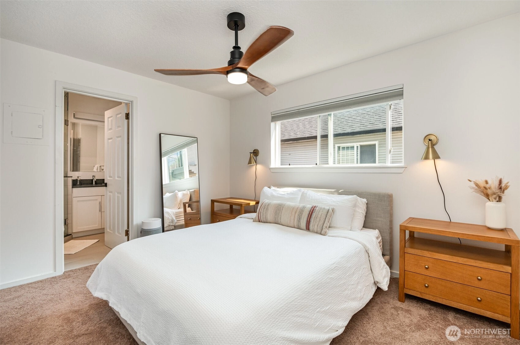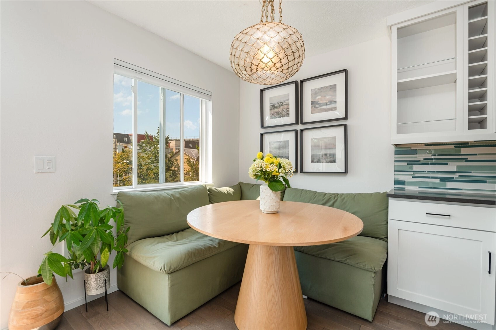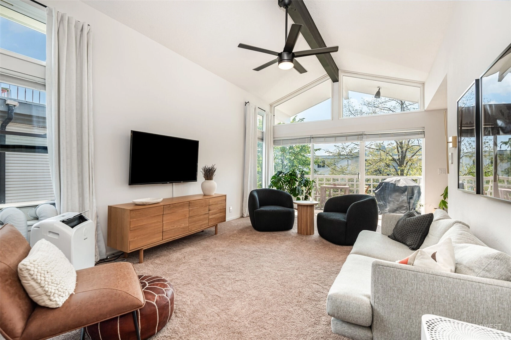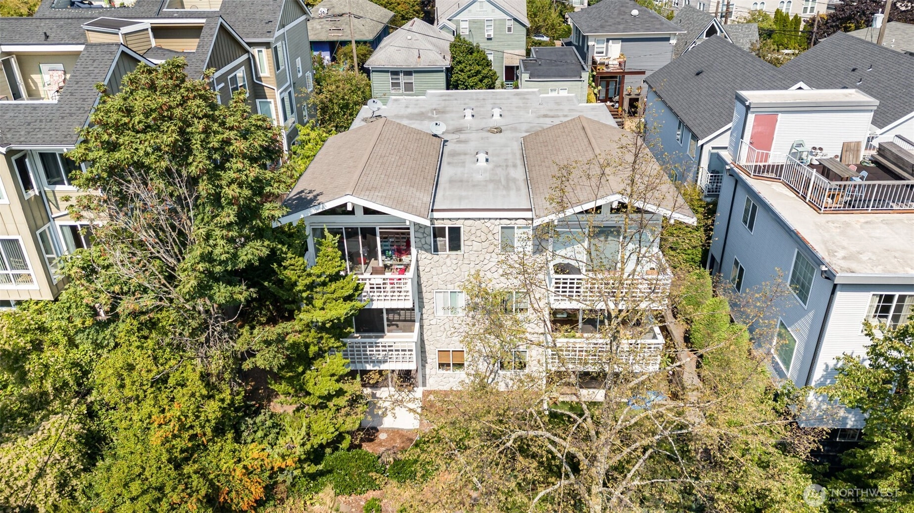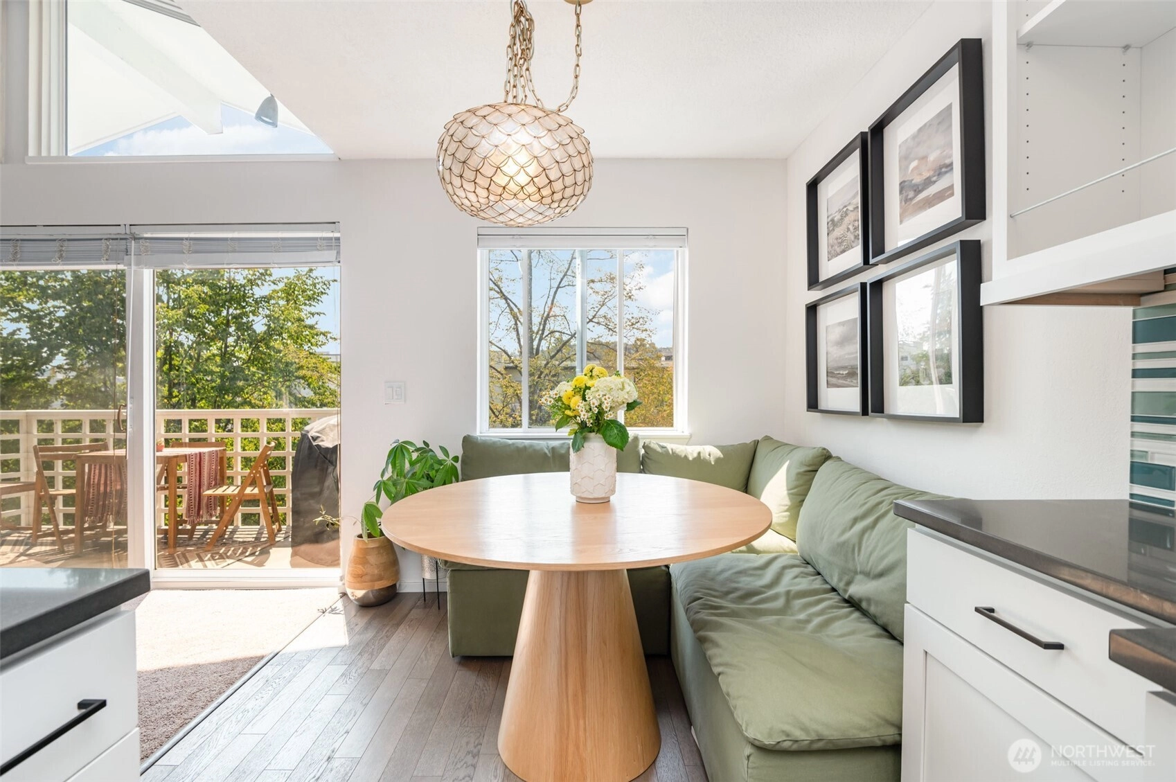 Welcome to Canal View! Rare opportunity in heart of Fremont. Penthouse unit with no shared walls & vaulted ceilings in Great room showcasing natural light & tree-lined views. Updated kitchen including quartz counters & tile backsplash. Cozy eating nook opens to living area & deck. Primary includes updated 3/4 bath & double closet w/built in organizer. Additional guest bedroom/office +Full bath! Excellent location, walking distance to shopping, coffee, restaurants, breweries, Sunday Street Market & Lake Union. Enjoy Summer BBQs on your deck while you take in all Fremont has to offer, serene peak-a-boo canal views & fireworks on 4th of July! Oversized parking spot/2-car Tandem. Well-run HOA, low dues & quiet friendly community. Move-in ready!