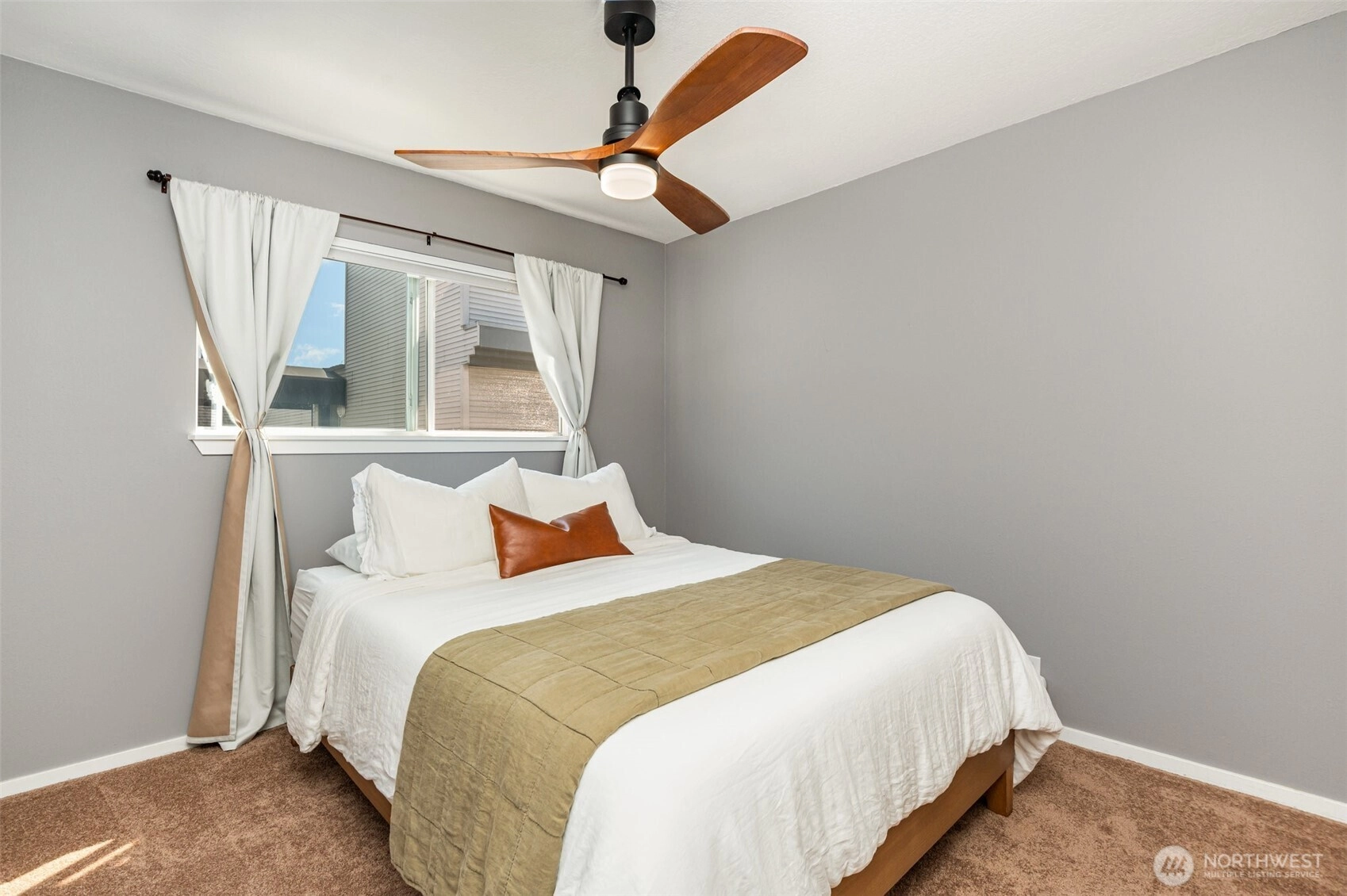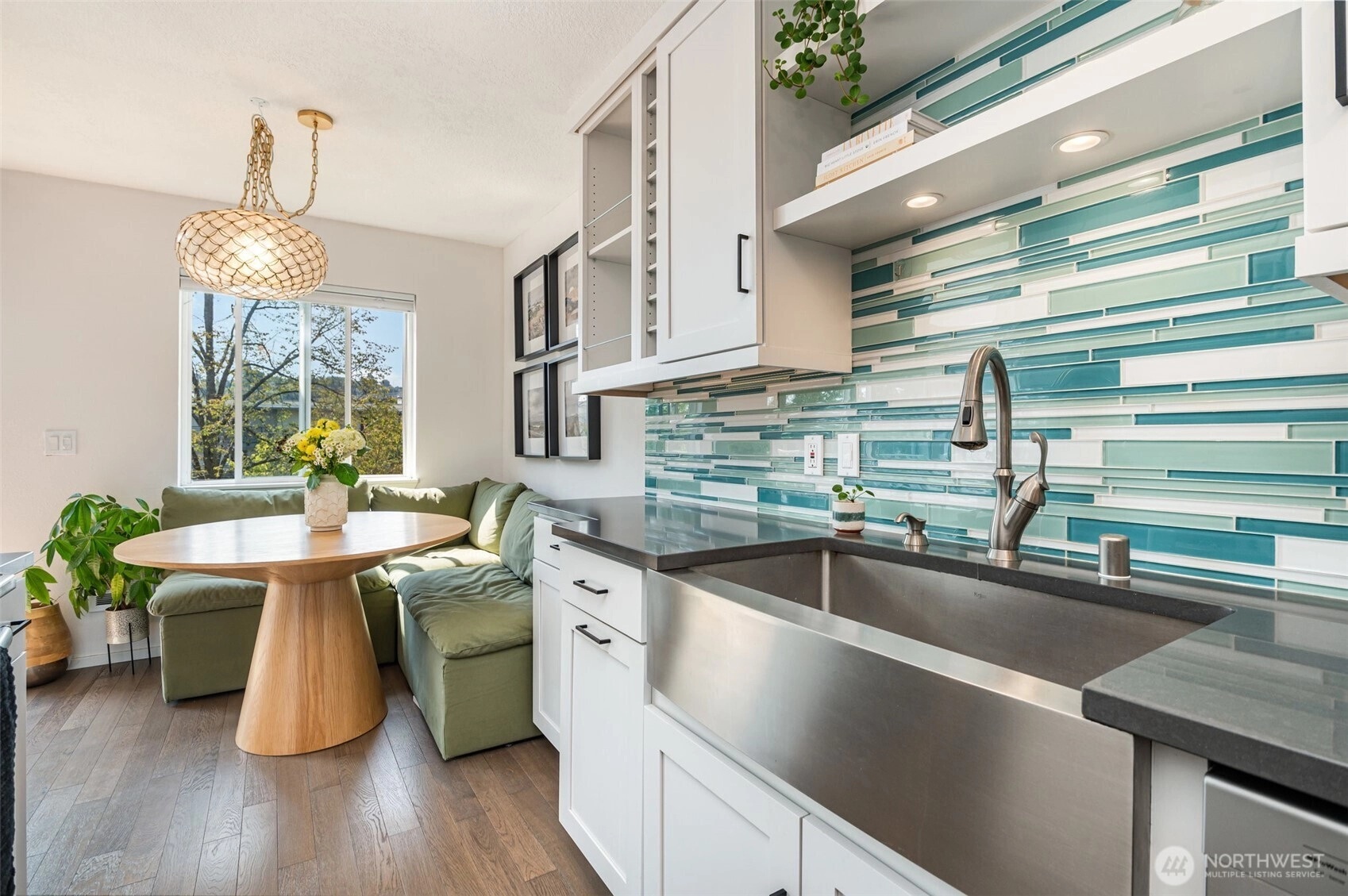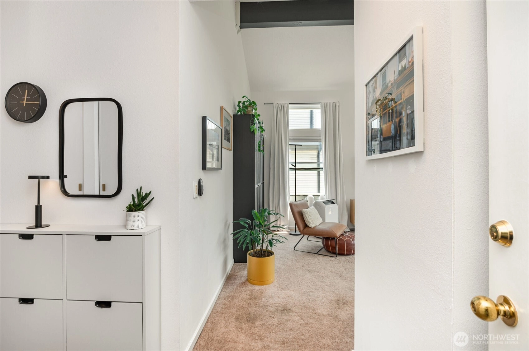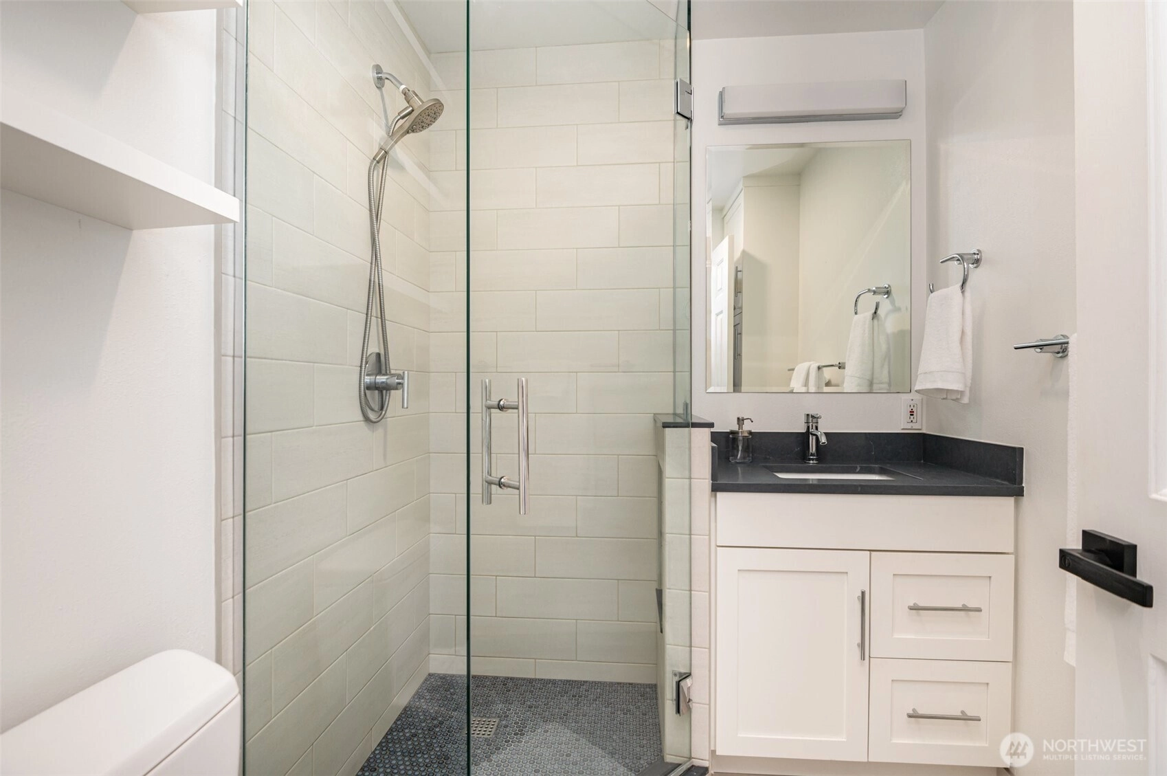 Welcome to Canal View! Rare opportunity in heart of Fremont. Penthouse unit with no shared walls & vaulted ceilings in Great room showcasing natural light & tree-lined views. Updated kitchen including quartz counters & tile backsplash. Cozy eating nook opens to living area & deck. Primary includes updated 3/4 bath & double closet w/built in organizer. Additional guest bedroom/office +Full bath! Excellent location, walking distance to shopping, coffee, restaurants, breweries, Sunday Street Market & Lake Union. Enjoy Summer BBQs on your deck while you take in all Fremont has to offer, serene peak-a-boo canal views & fireworks on 4th of July! Oversized parking spot/2-car Tandem. Well-run HOA, low dues & quiet friendly community. Move-in ready!