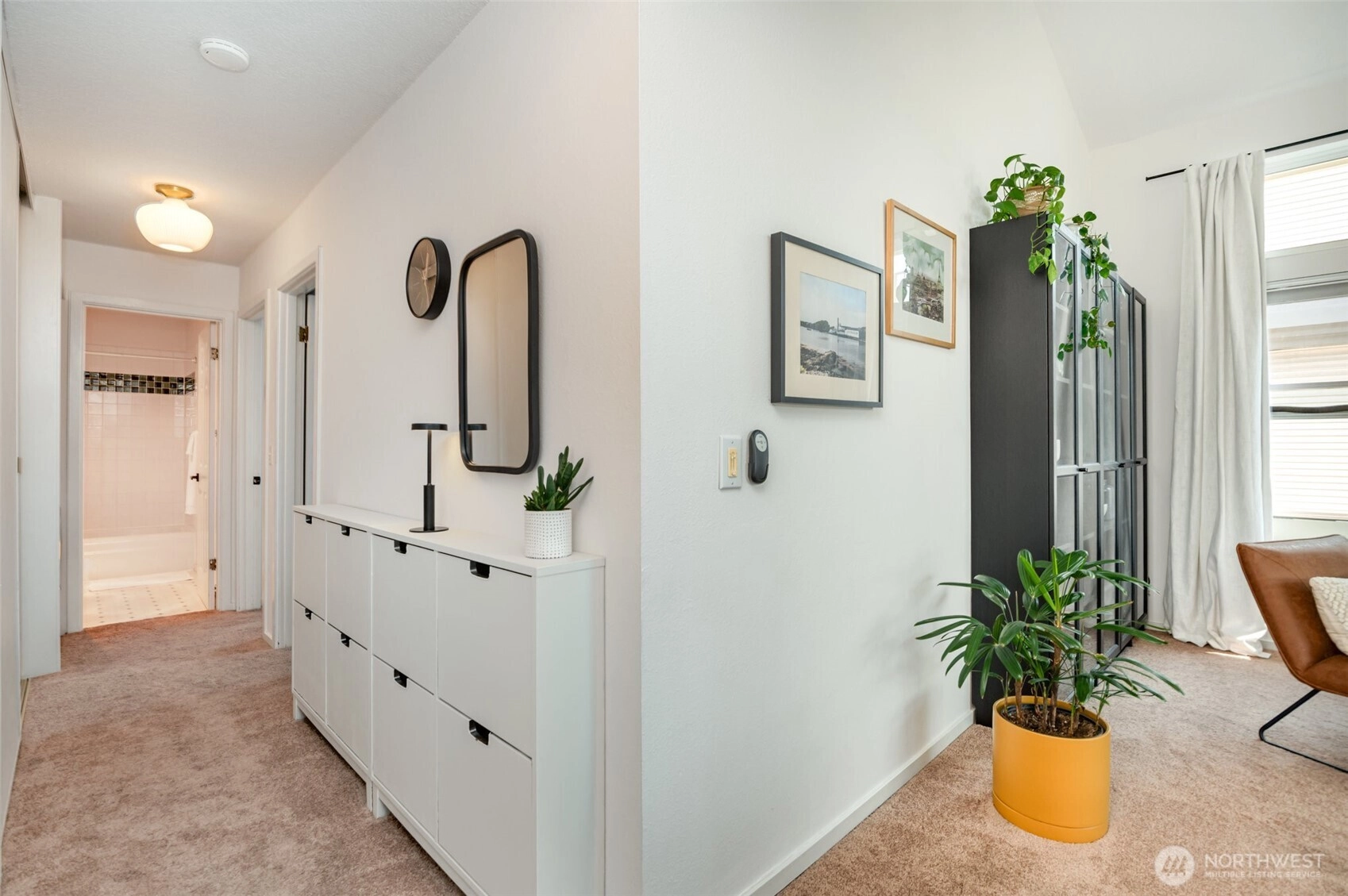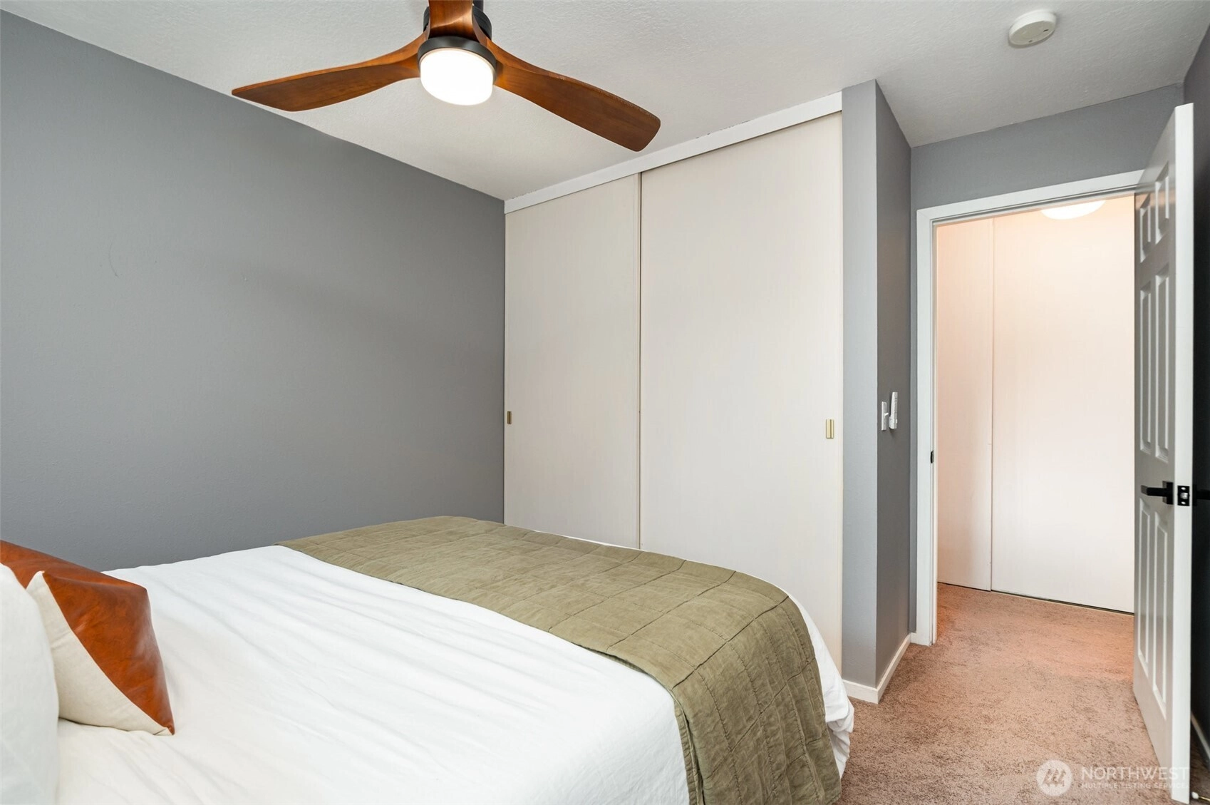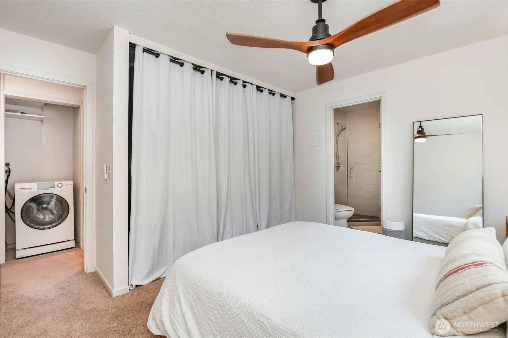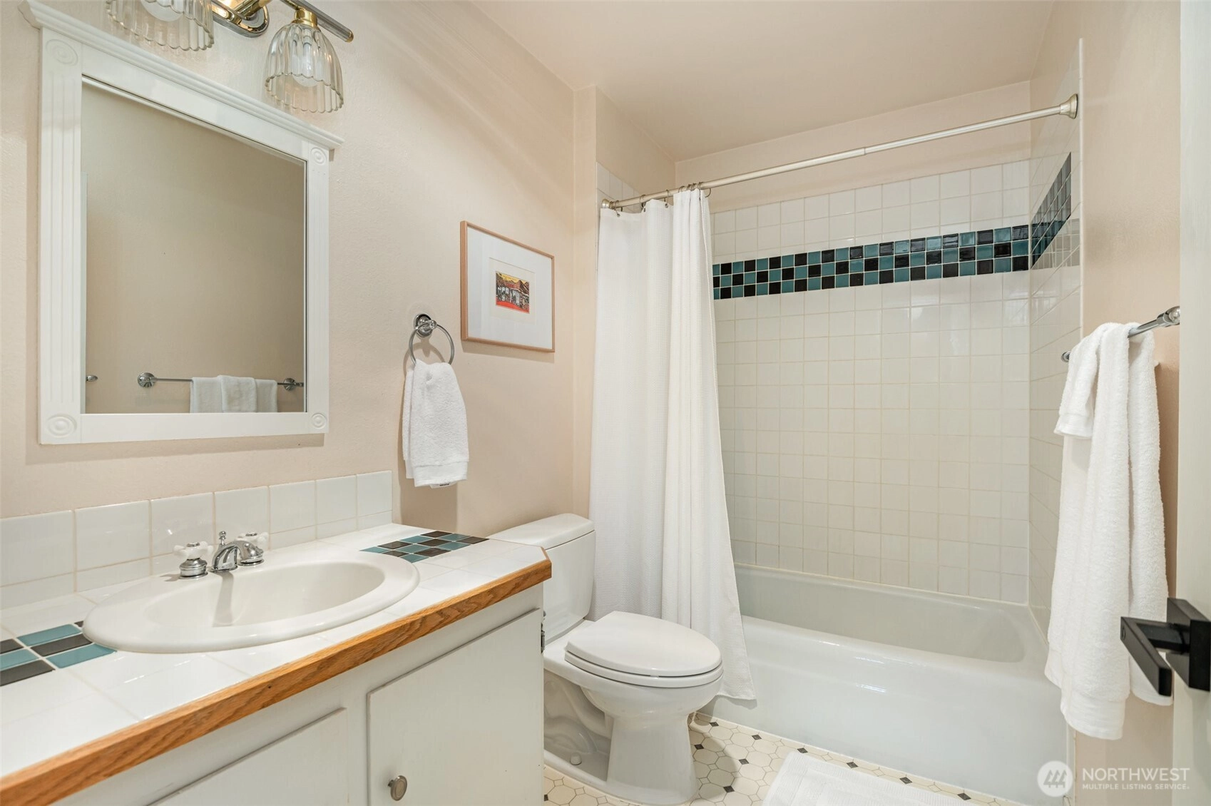 Welcome to Canal View! Rare opportunity in heart of Fremont. Penthouse unit with no shared walls & vaulted ceilings in Great room showcasing natural light & tree-lined views. Updated kitchen including quartz counters & tile backsplash. Cozy eating nook opens to living area & deck. Primary includes updated 3/4 bath & double closet w/built in organizer. Additional guest bedroom/office +Full bath! Excellent location, walking distance to shopping, coffee, restaurants, breweries, Sunday Street Market & Lake Union. Enjoy Summer BBQs on your deck while you take in all Fremont has to offer, serene peak-a-boo canal views & fireworks on 4th of July! Oversized parking spot/2-car Tandem. Well-run HOA, low dues & quiet friendly community. Move-in ready!